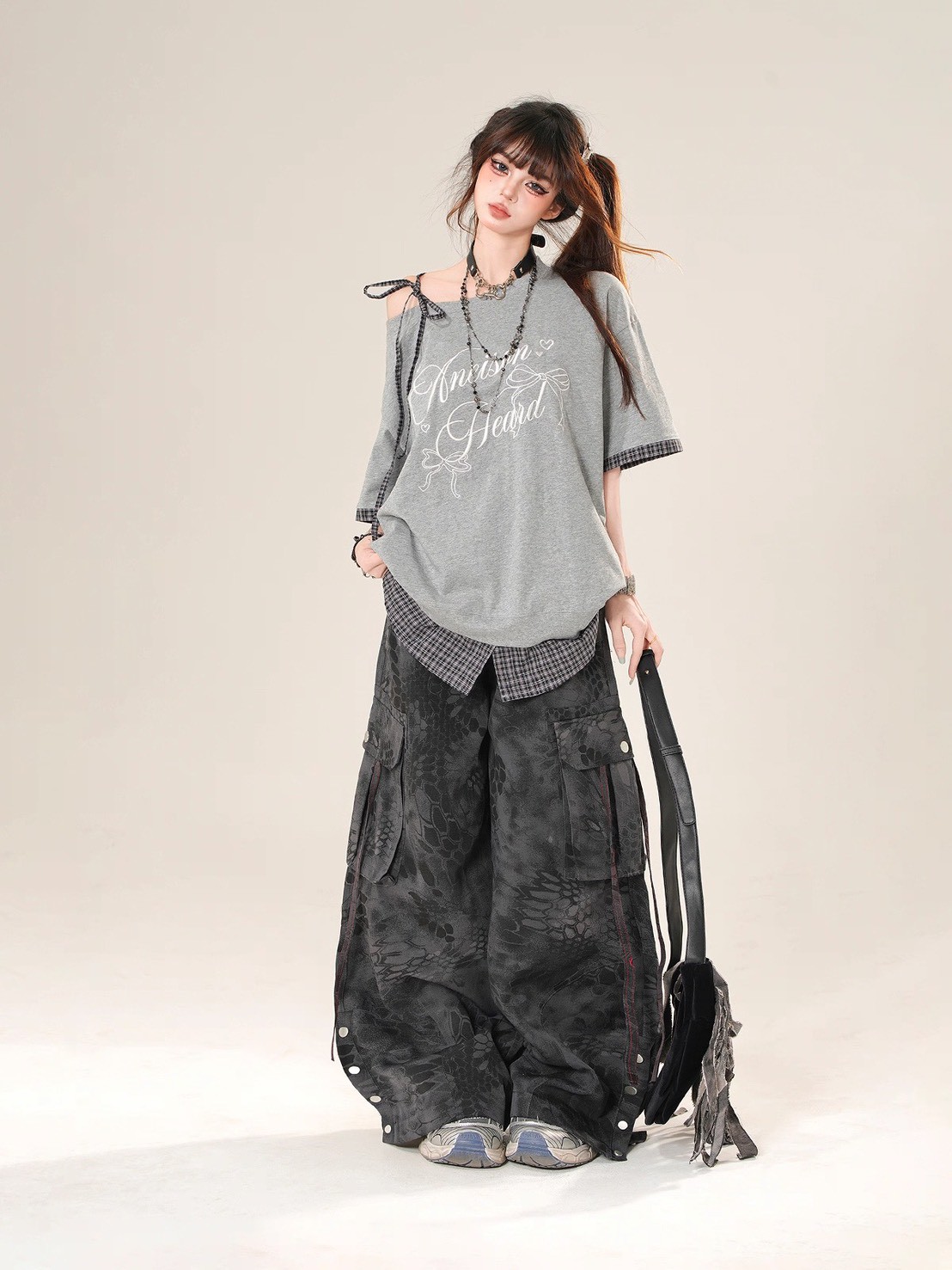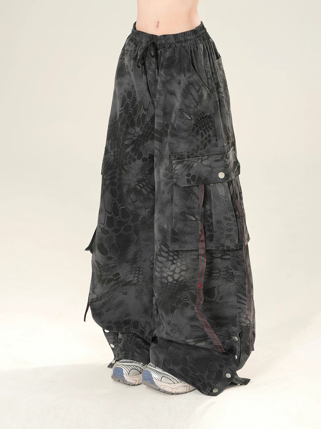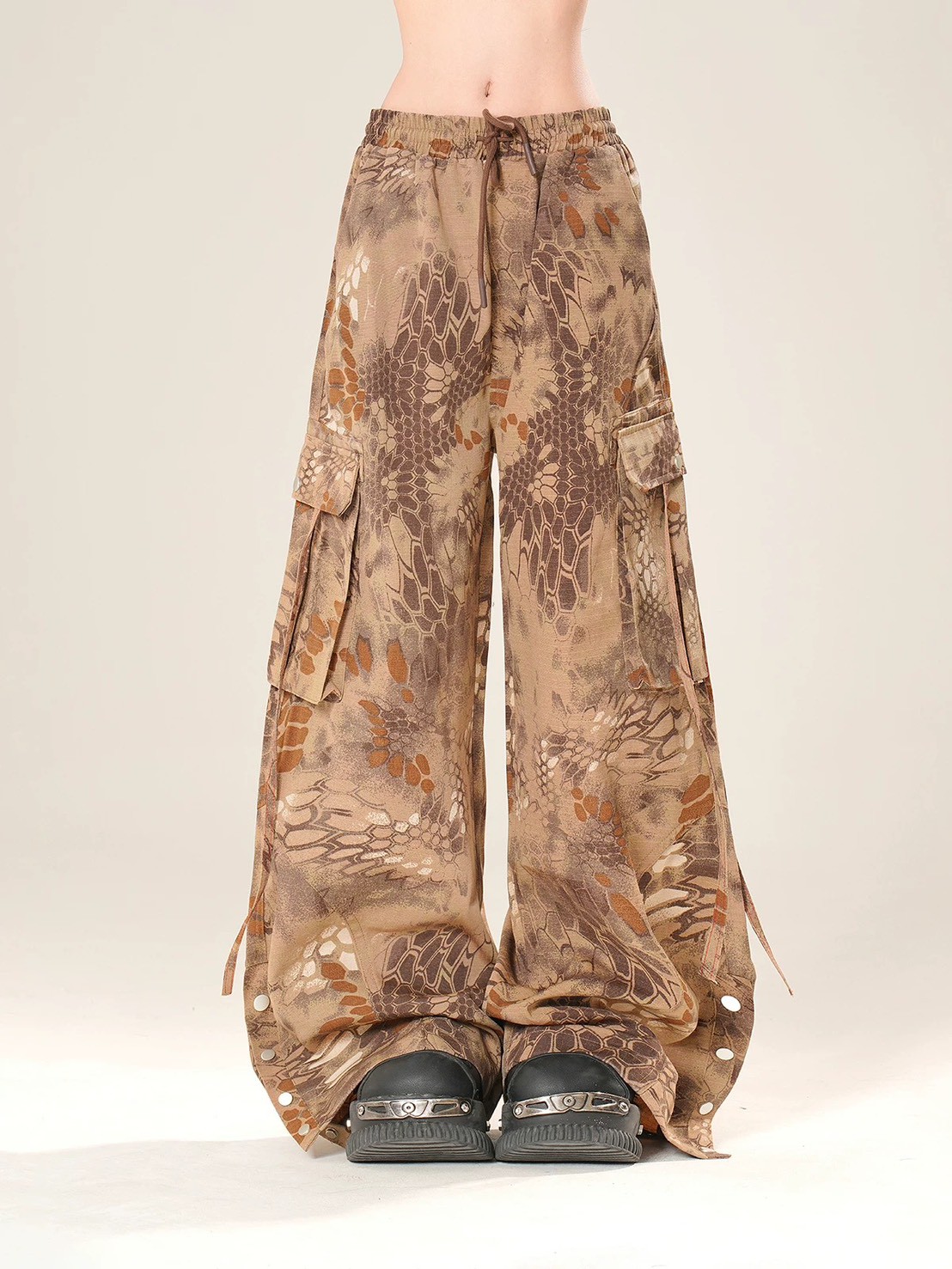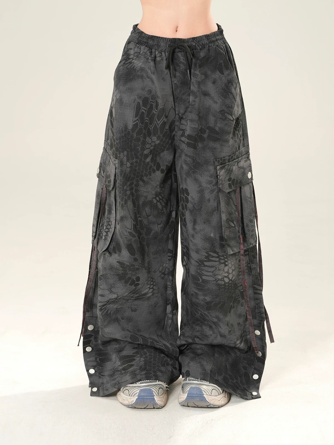 #下身 #長褲 #蛇紋 #休閒褲 #滿版 #寬鬆 #闊腿 #拖地褲