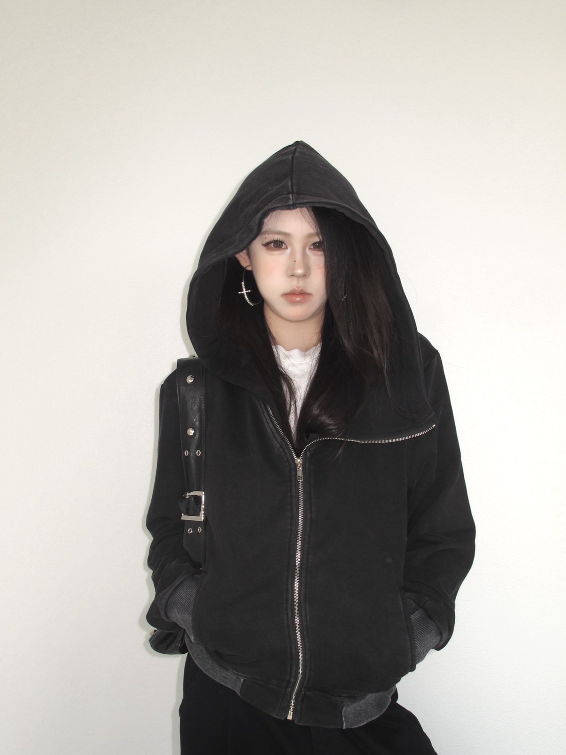 #上身 #寬鬆 #帽踢 #連帽外套 #水洗 #做舊 #高領 #寬鬆 #設計感
