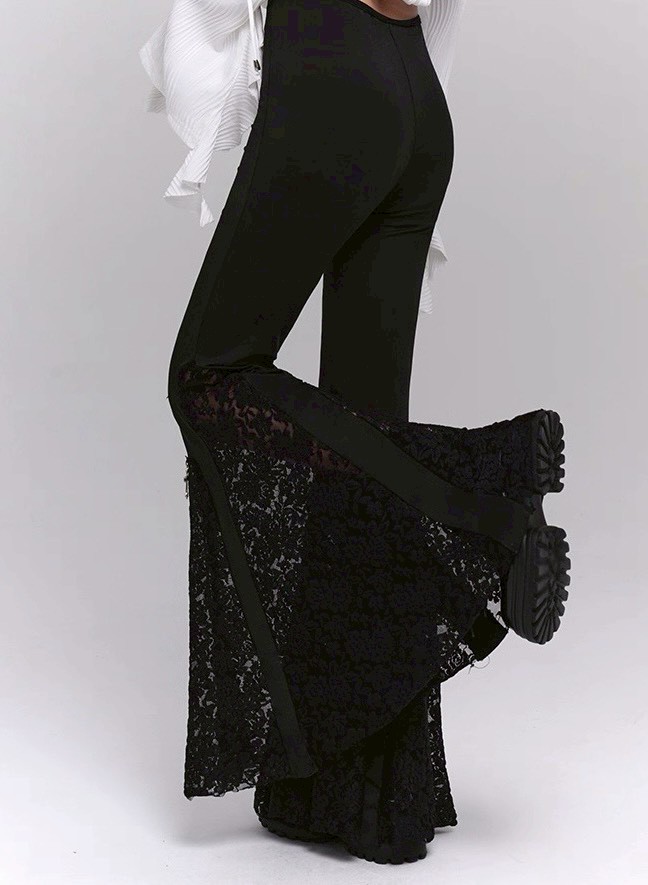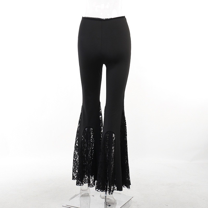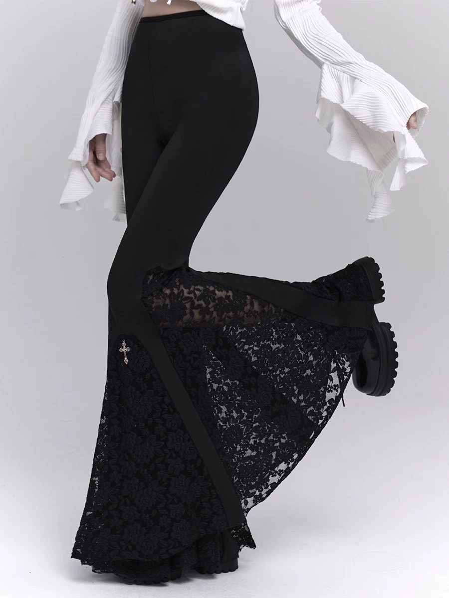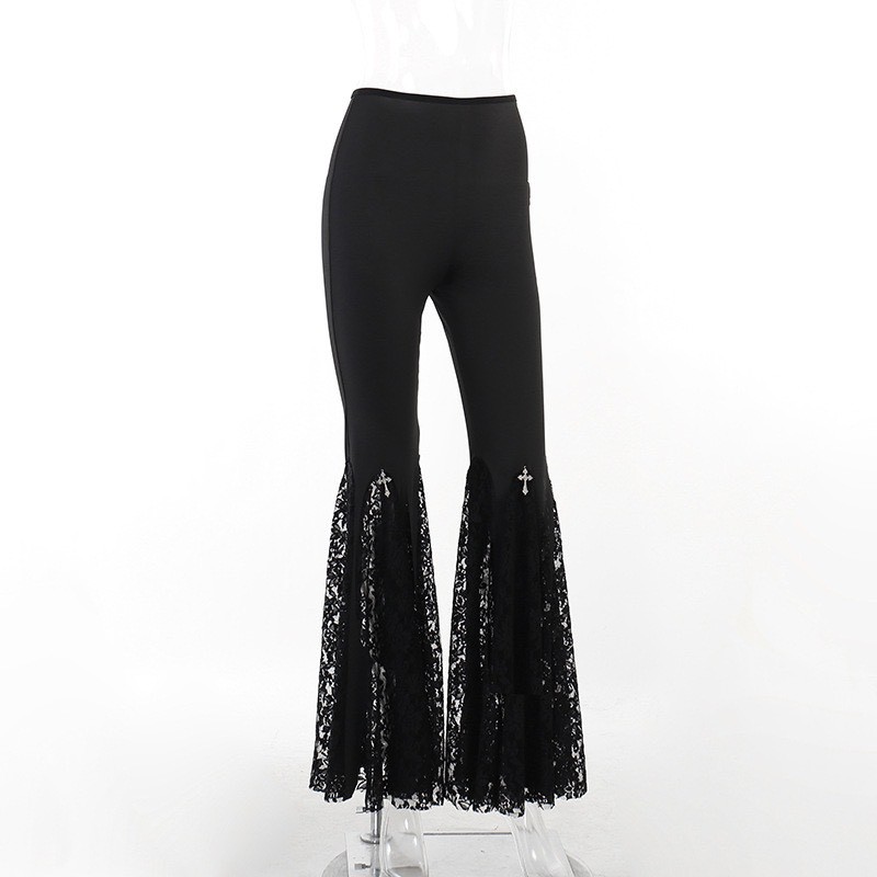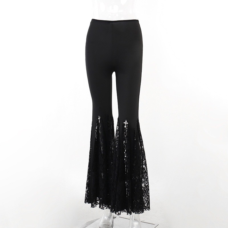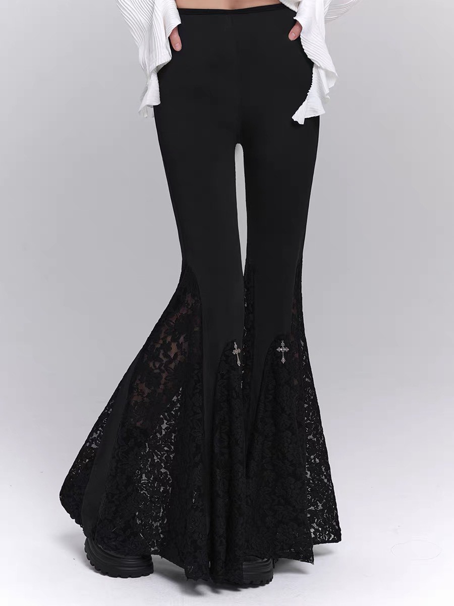 #下身 #褲子 #長褲 #彈性 #喇叭褲 #蕾絲 #拼接 #十字架 #顯瘦