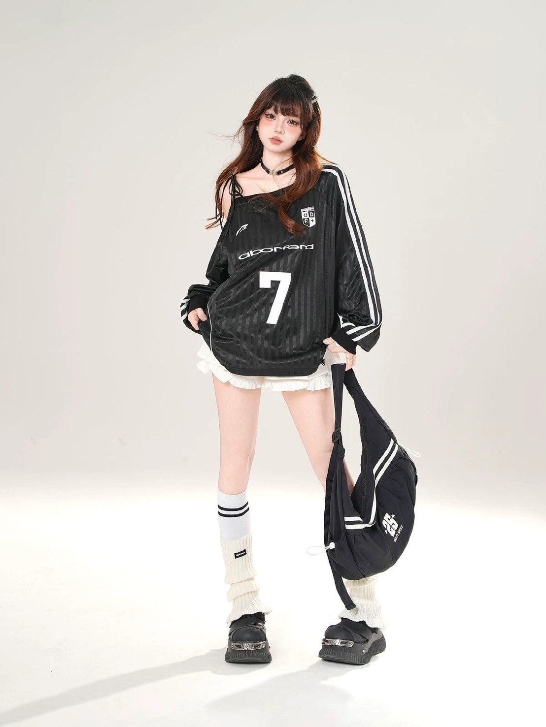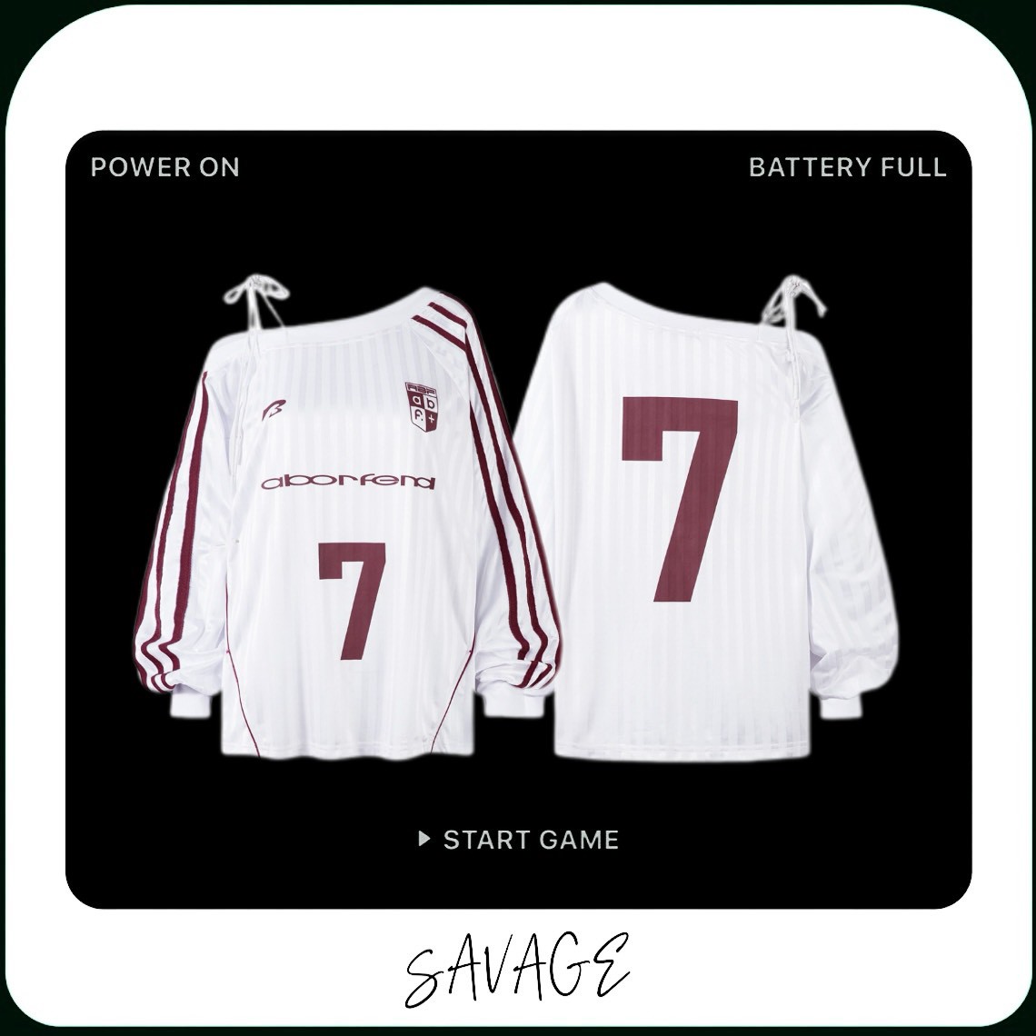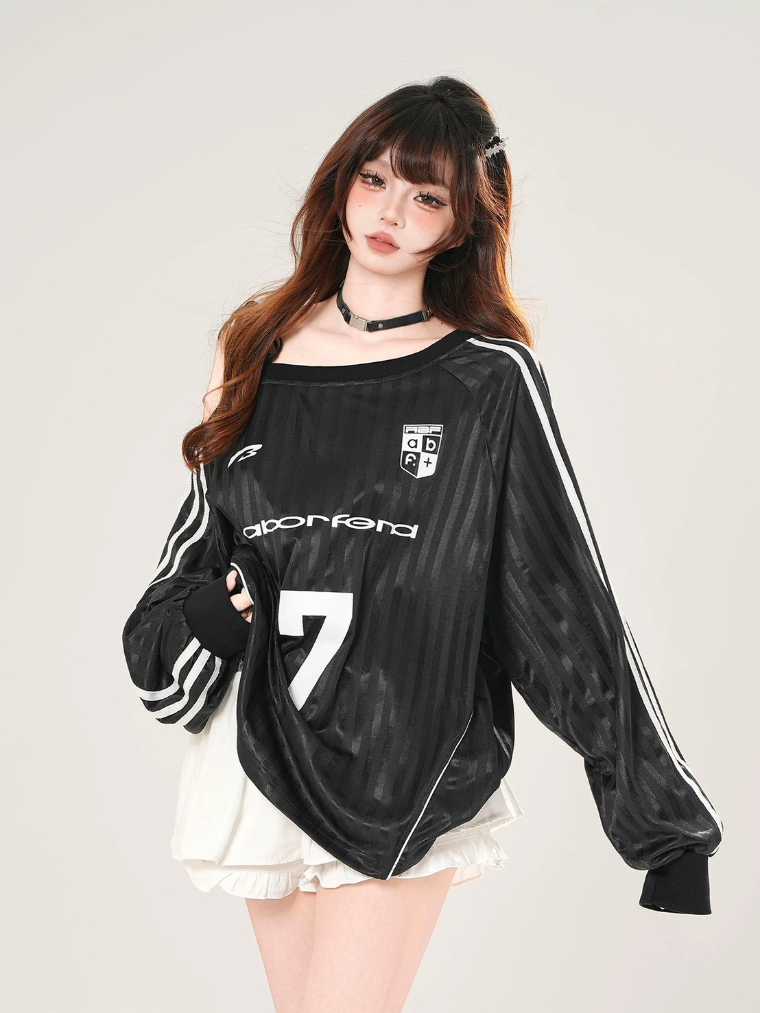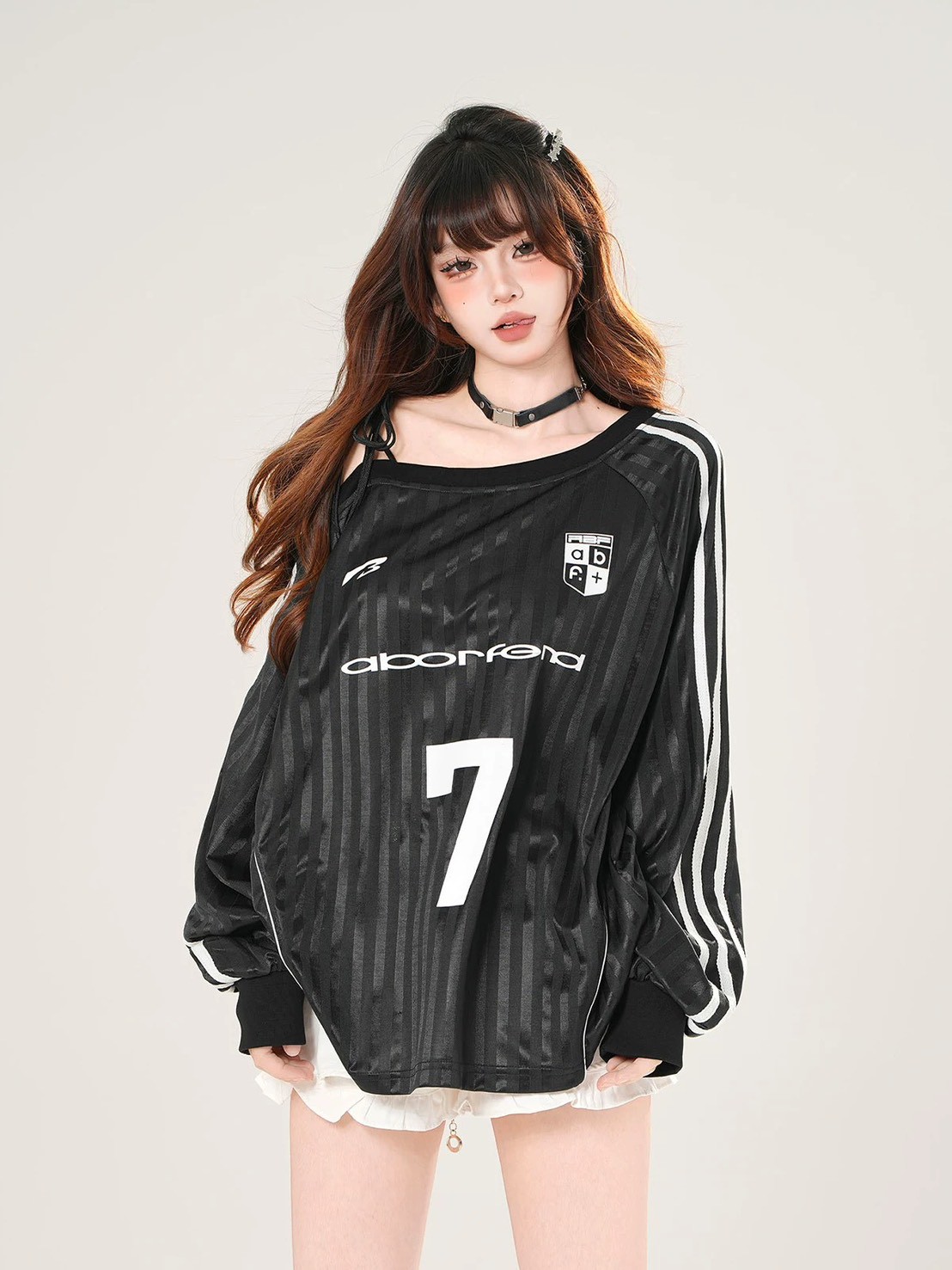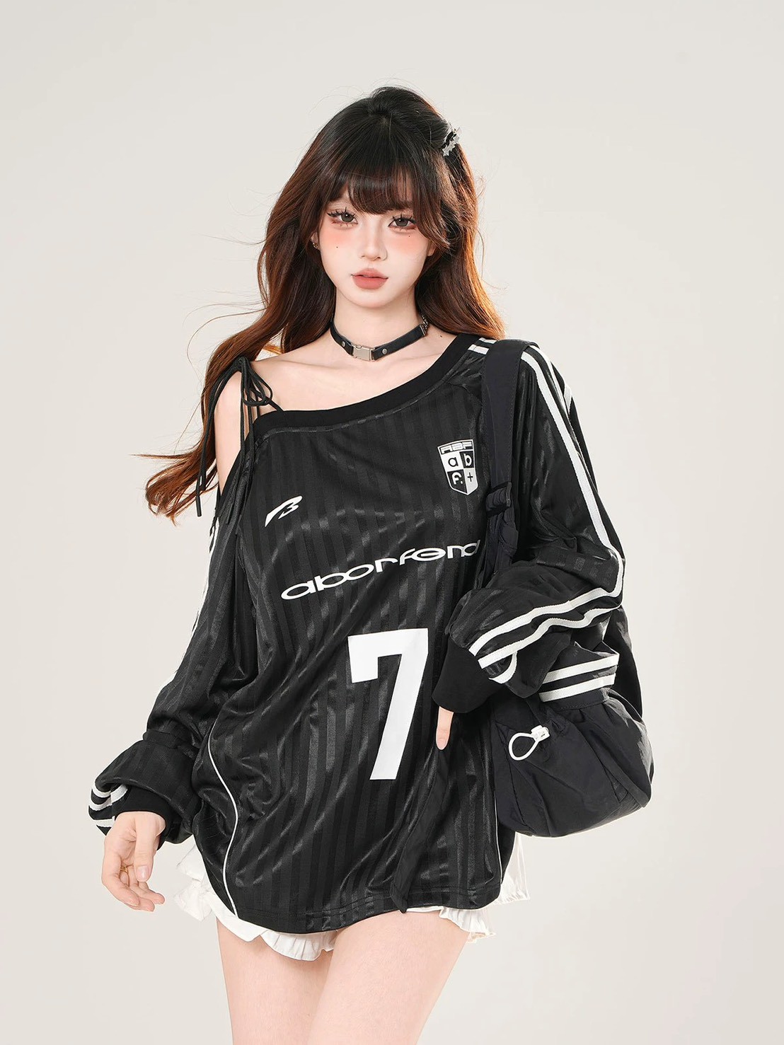 #上身 #長袖 #緞面 #印花 #綁帶 #球衣 #條紋 #寬鬆 #斜肩