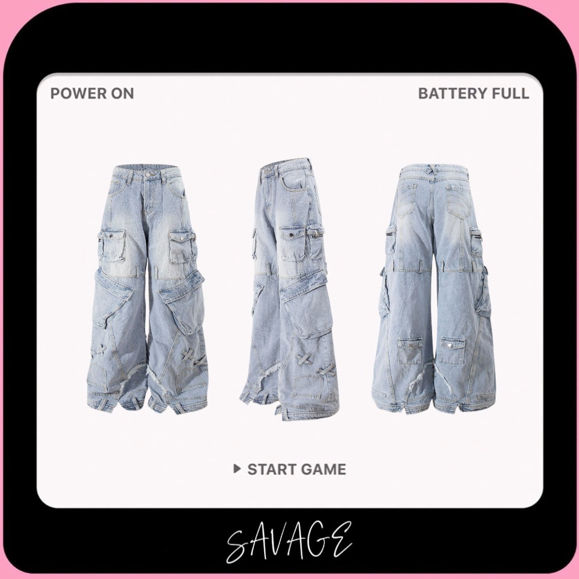 #下身 #褲子 #長褲 #牛仔褲 #寬鬆 #重裝 #工裝 #水洗 #男女可穿