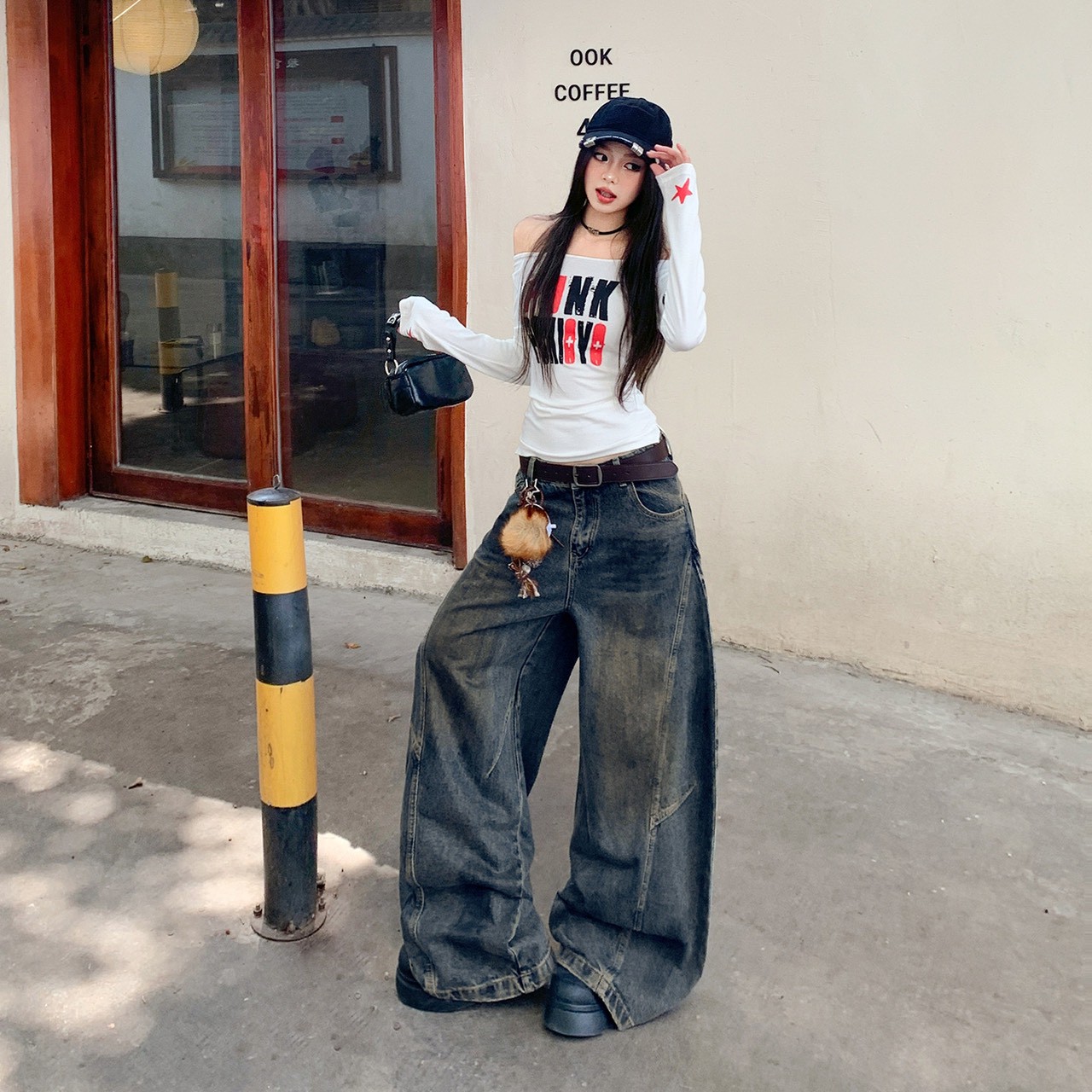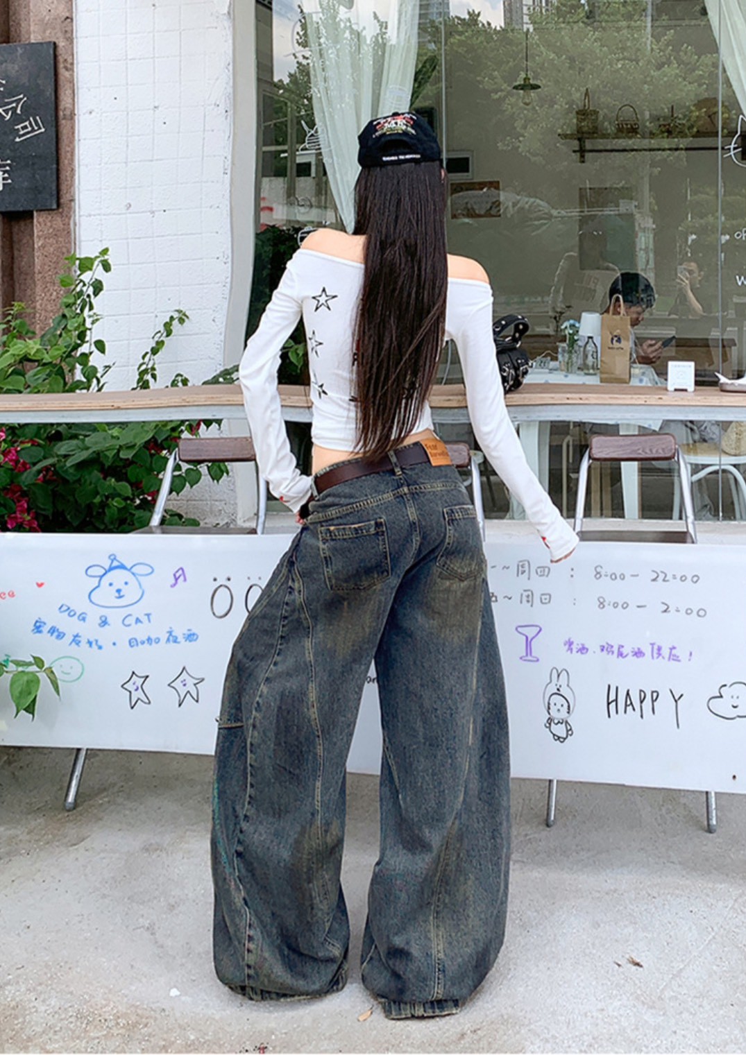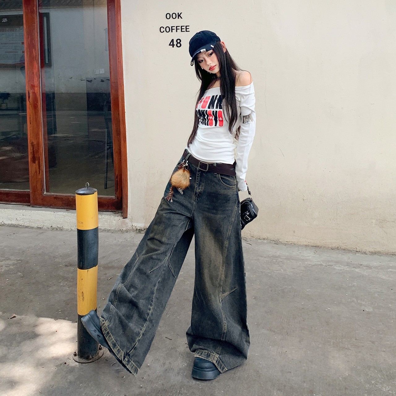 #下身 #褲子 #長褲 #牛仔褲 #寬鬆 #彎刀褲 #做舊 #闊腿 #落地褲 #男女可穿