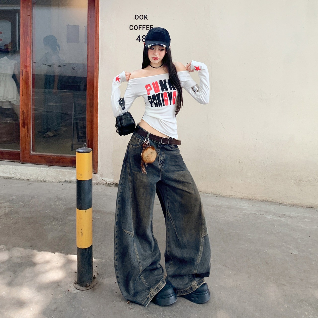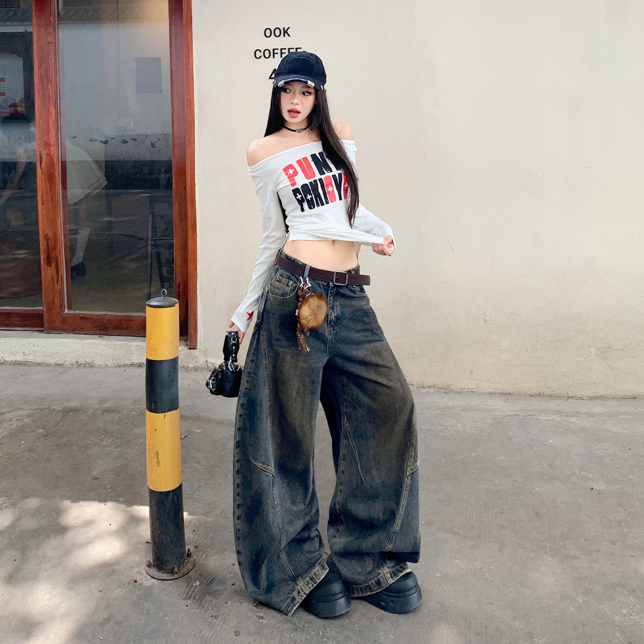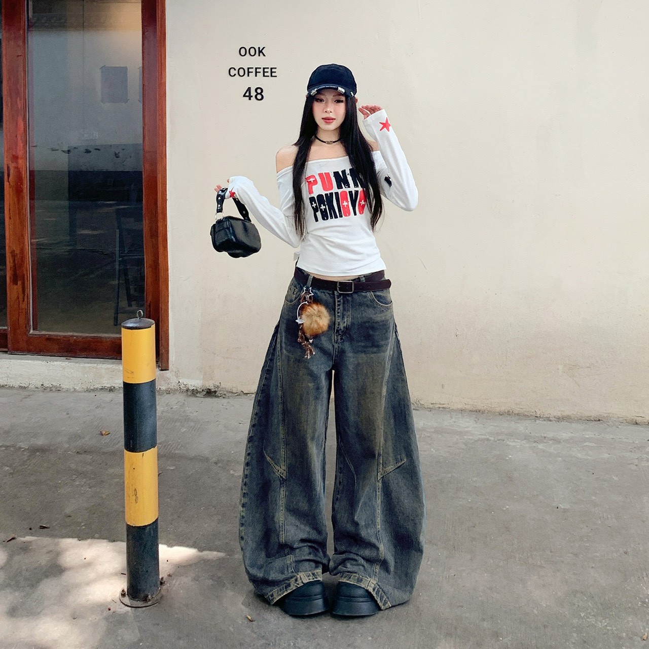 #下身 #褲子 #長褲 #牛仔褲 #寬鬆 #彎刀褲 #做舊 #闊腿 #落地褲 #男女可穿