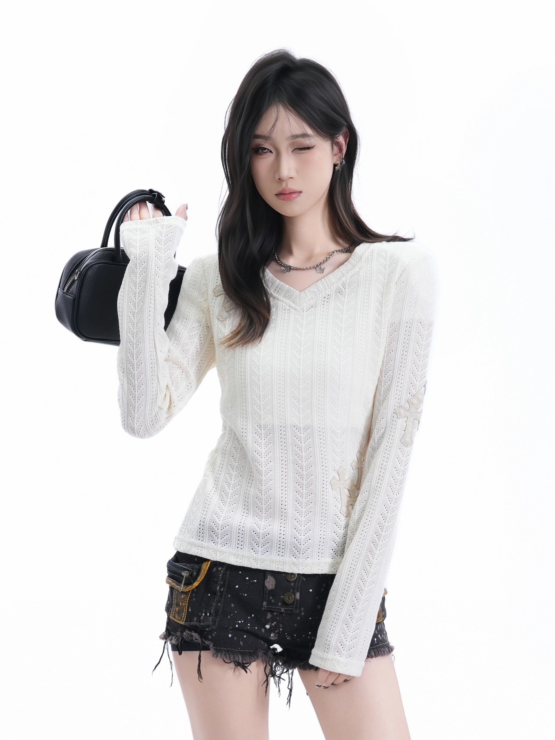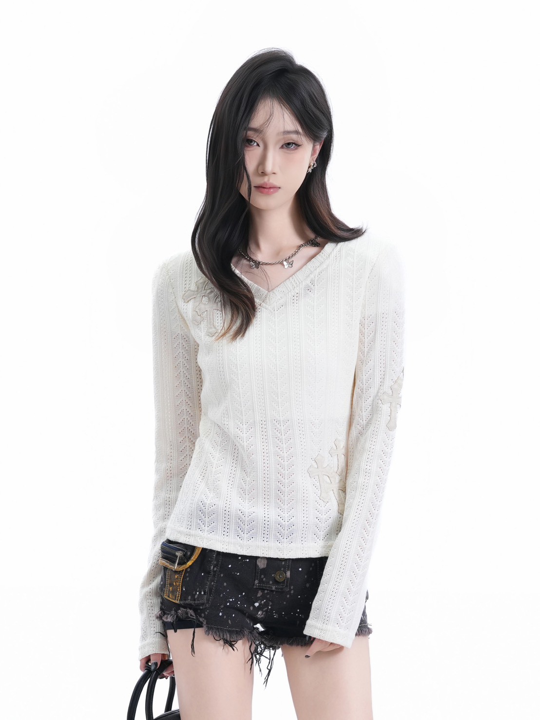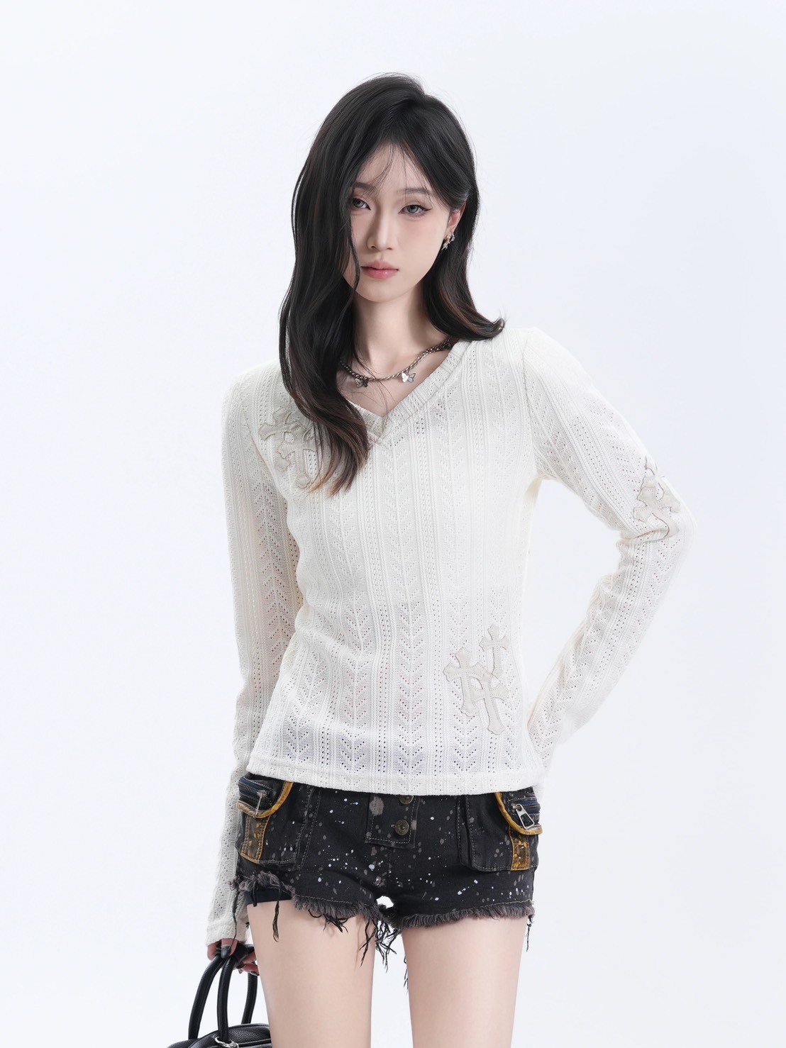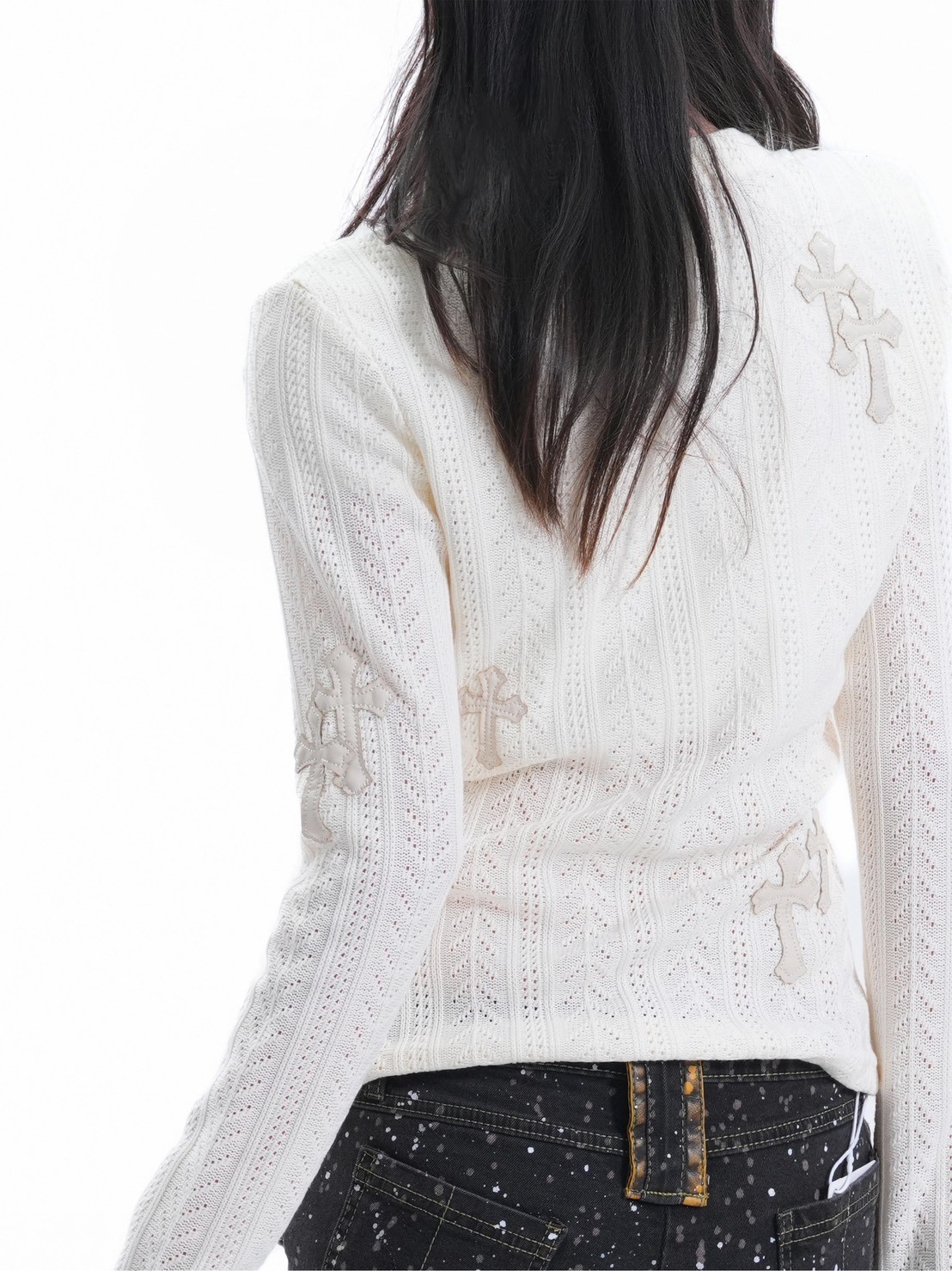 #上身 #長袖 #針織 #V領 #毛衣 #貼布 #十字架