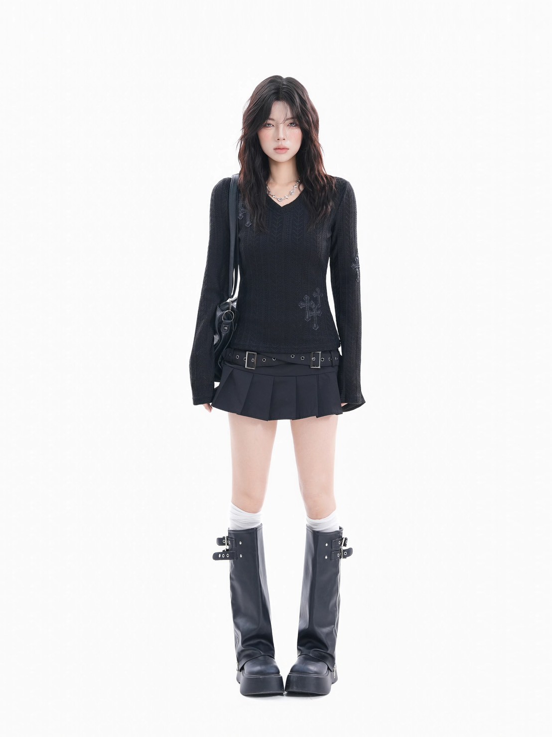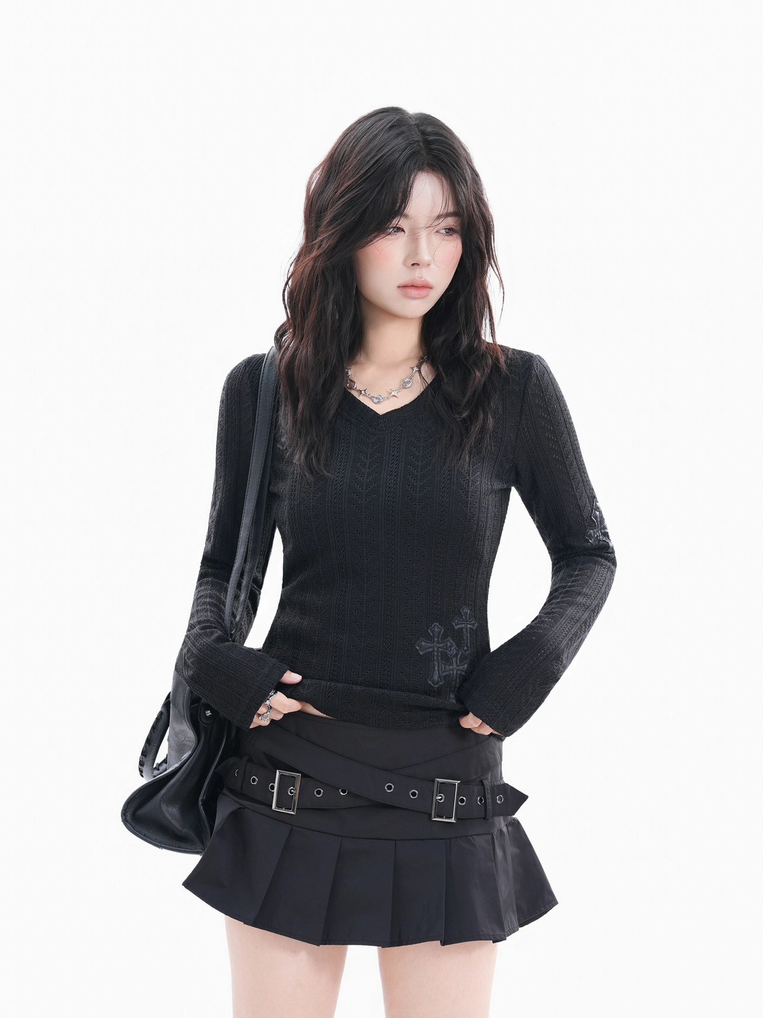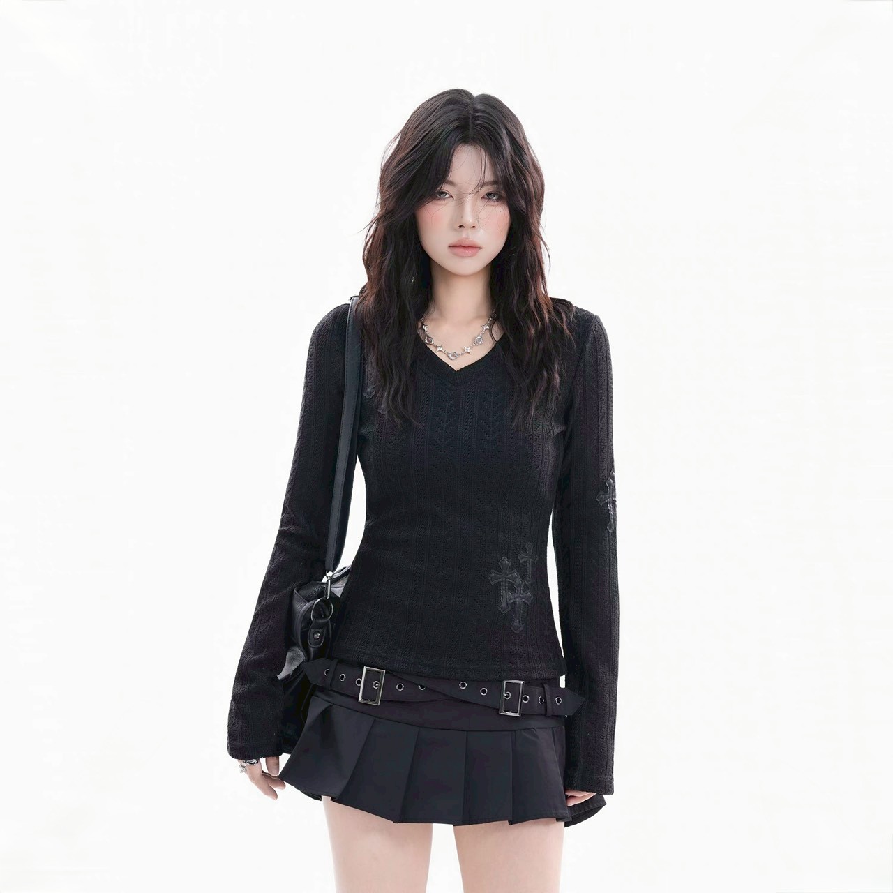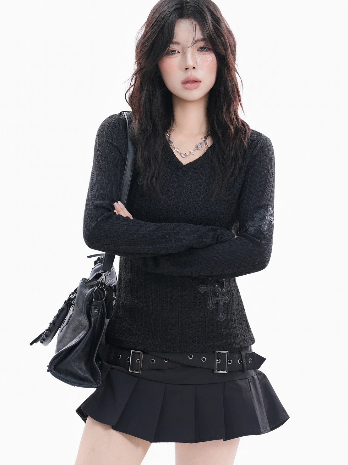 #上身 #長袖 #針織 #V領 #毛衣 #貼布 #十字架
