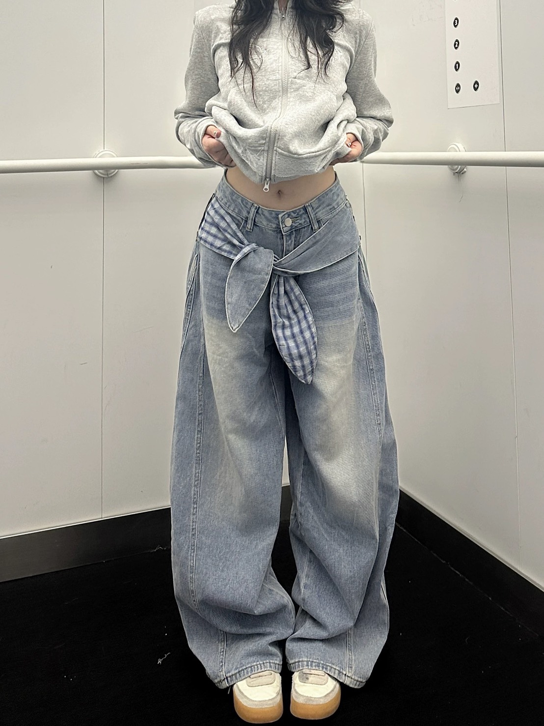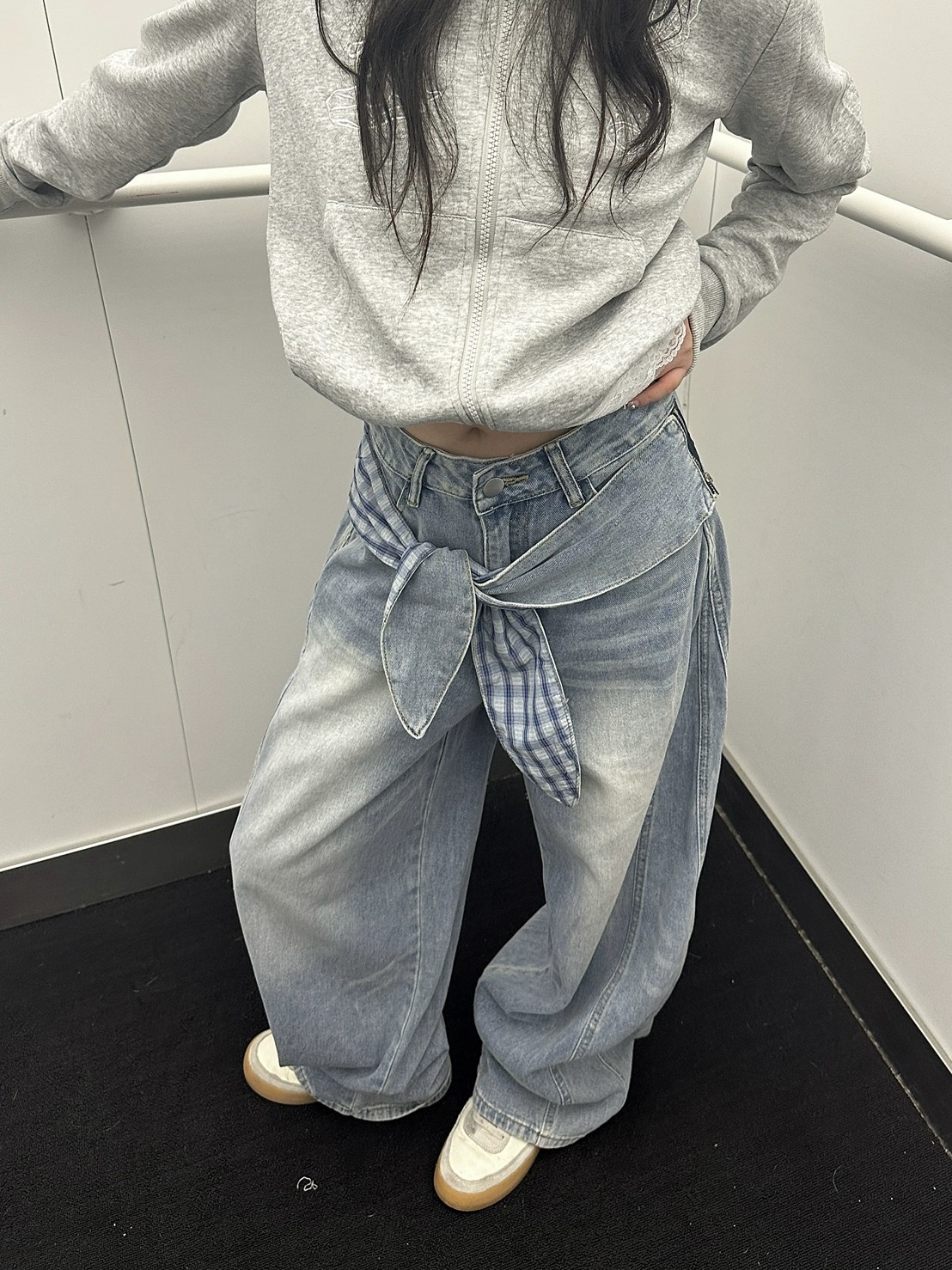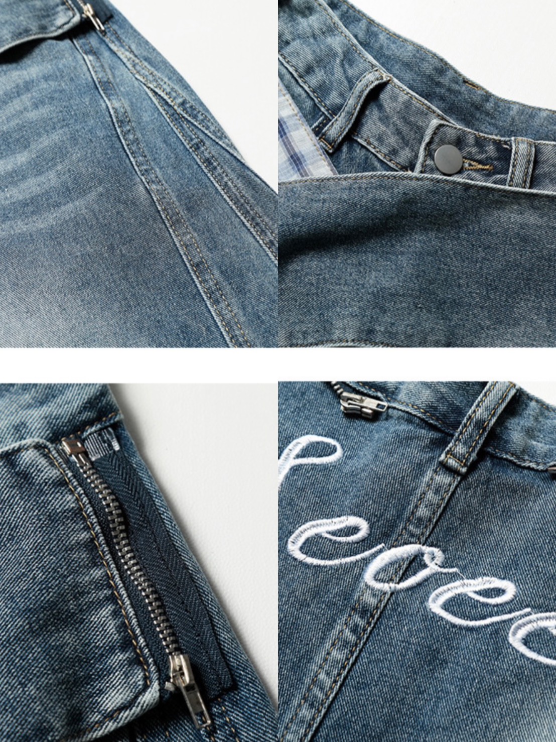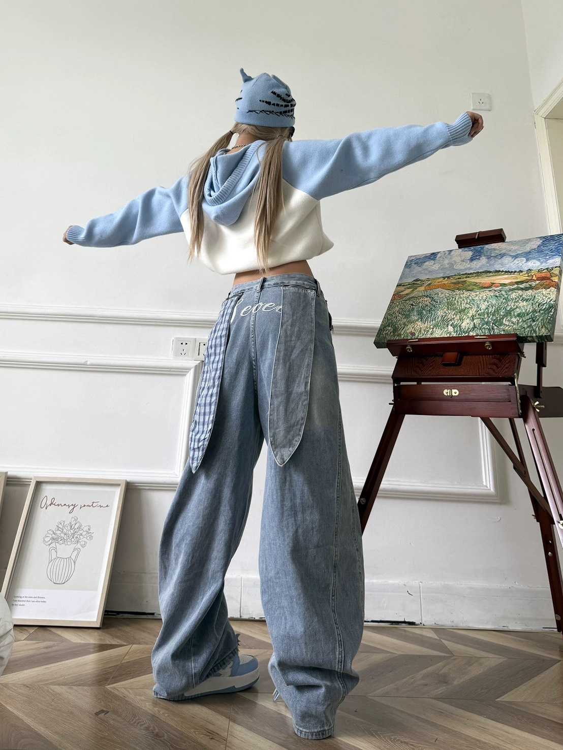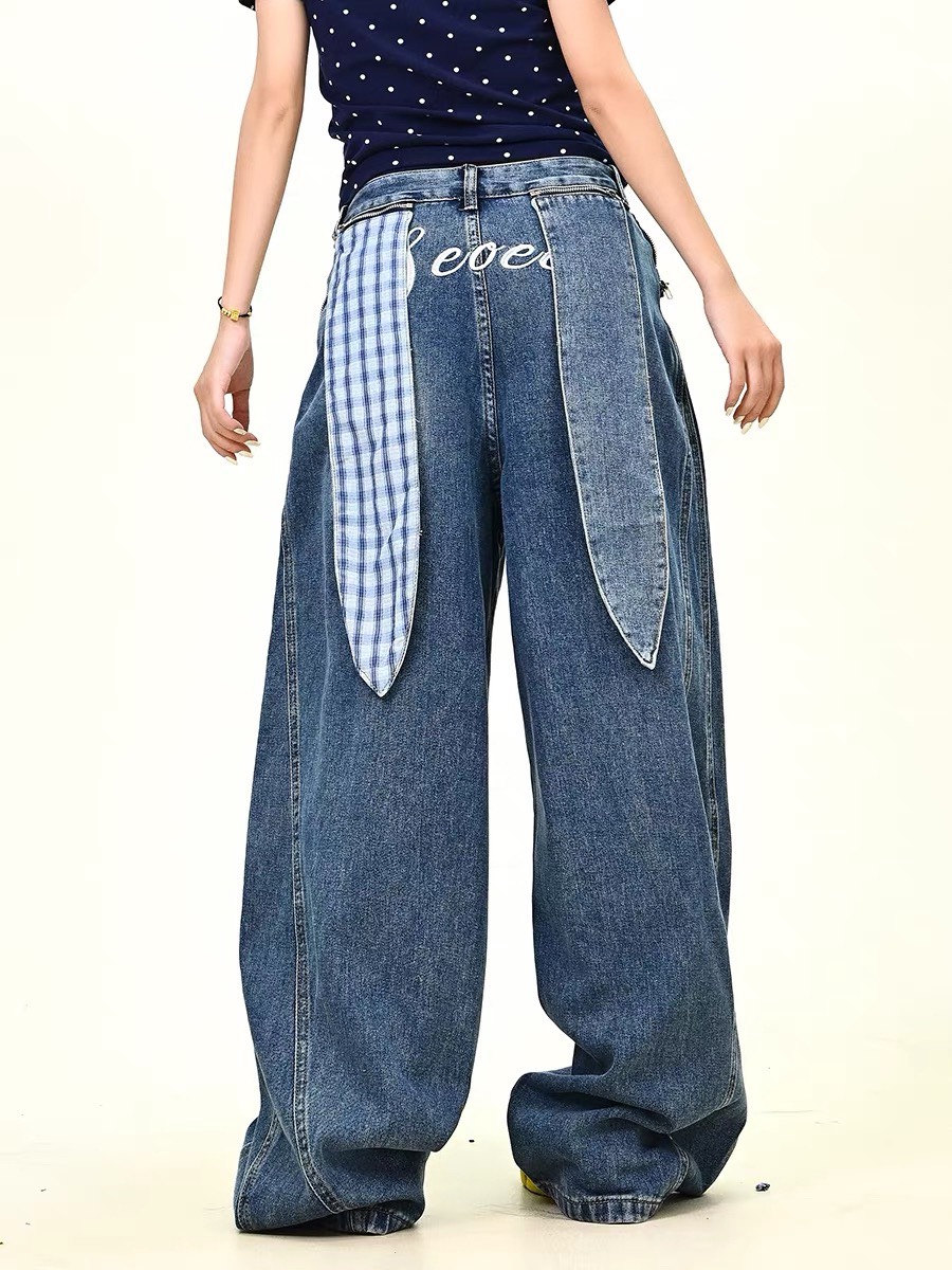 #下身 #褲子 #長褲 #牛仔褲 #寬鬆 #兔子耳朵 #拉鍊 #做舊 #闊腿 #落地褲