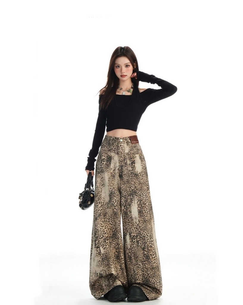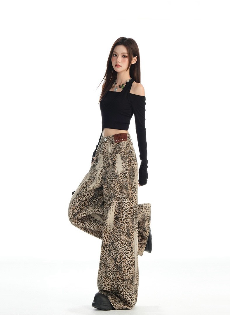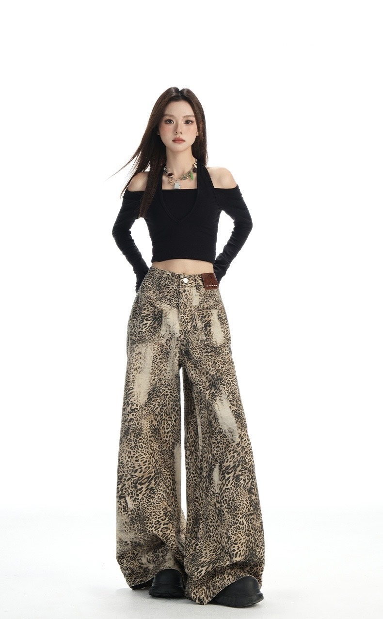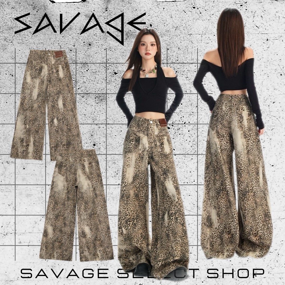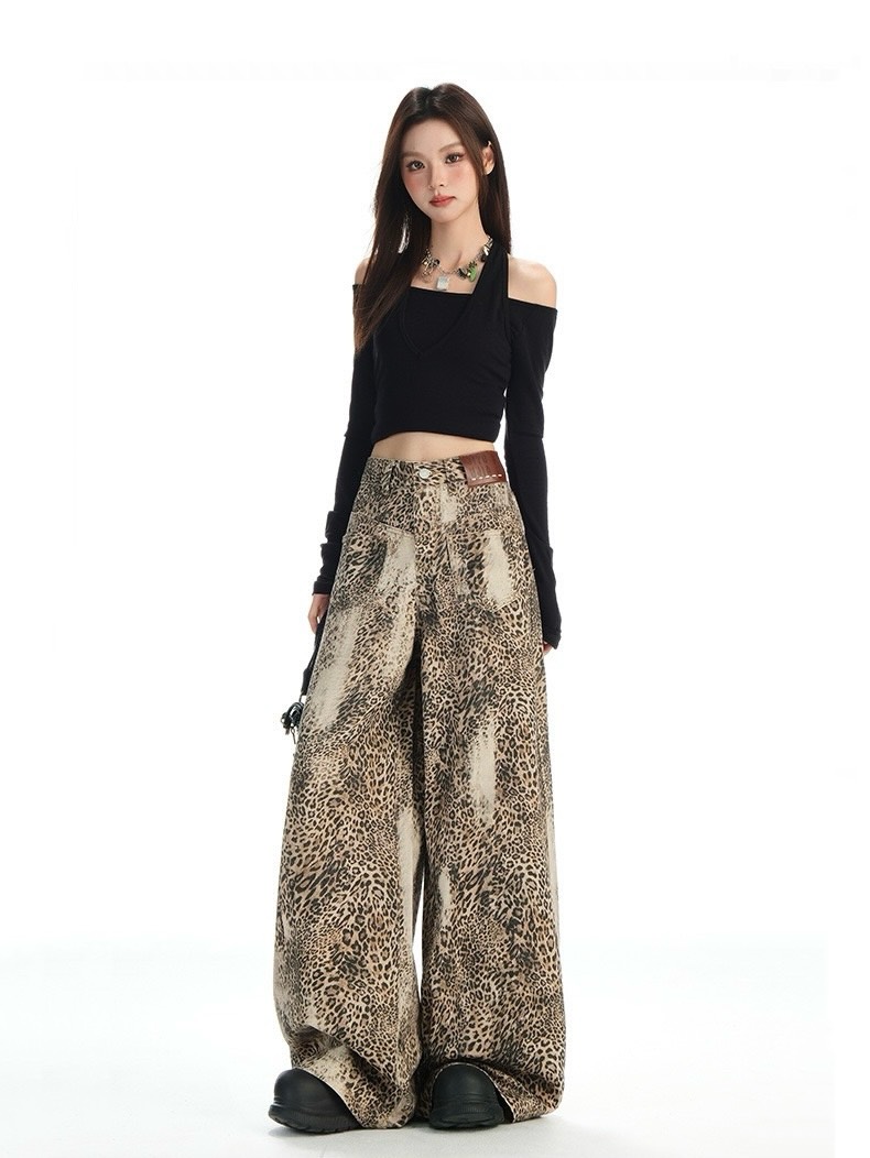 #下身 #長褲 #豹紋 #高腰 #滿版 #寬鬆 #闊腿 #辣妹 #拖地褲