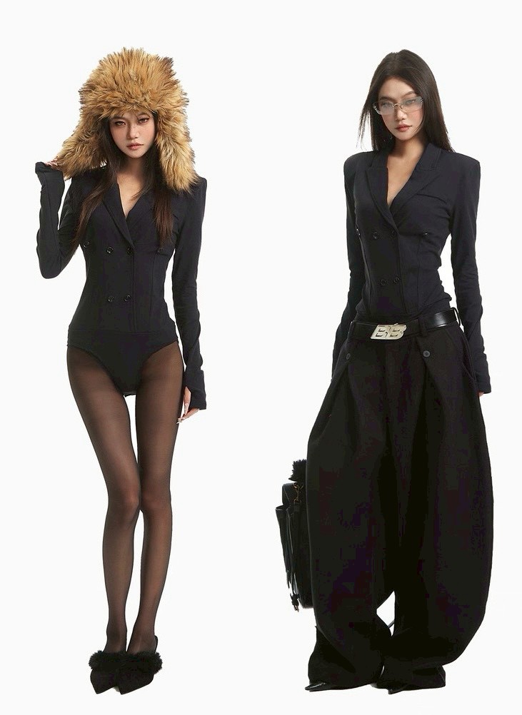 #上身 #上衣 #長袖 #西裝 #V領 #收腰 #雙排扣 #彈性 #連體衣