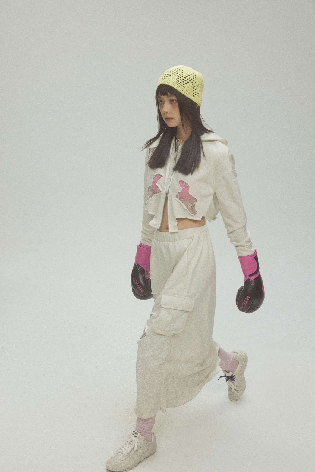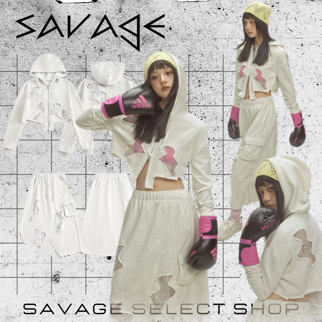#上身 #長袖 #連帽 #外套 #不規則 #短版 #下身 #長裙 #破洞 #蕾絲 #套裝