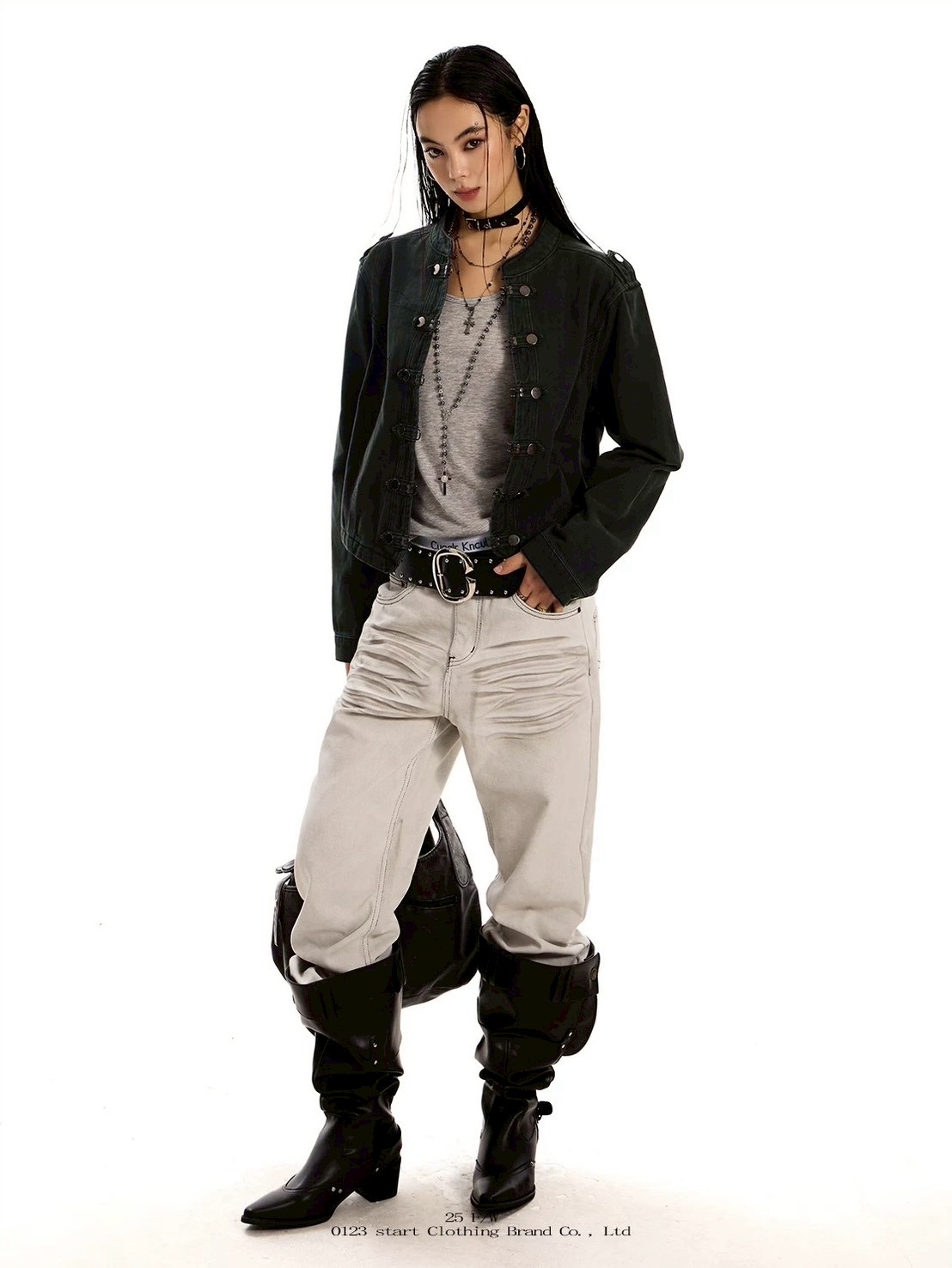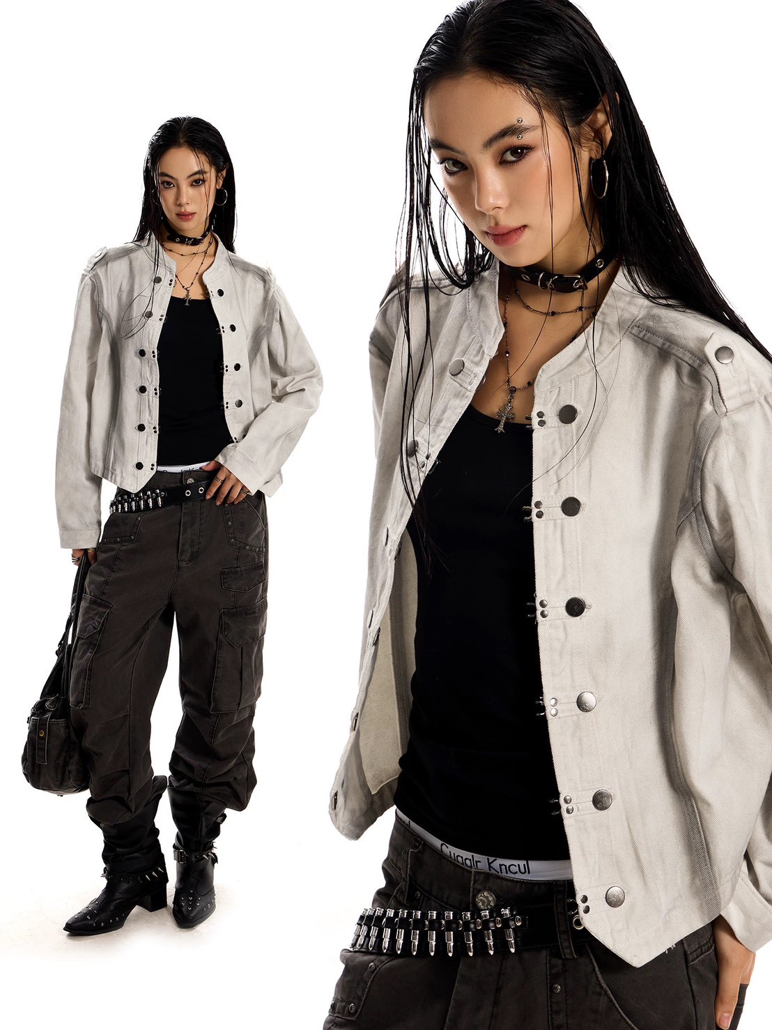 #上身 #做舊 #牛仔外套 #辣妹 #重工 #噴漆 #短款