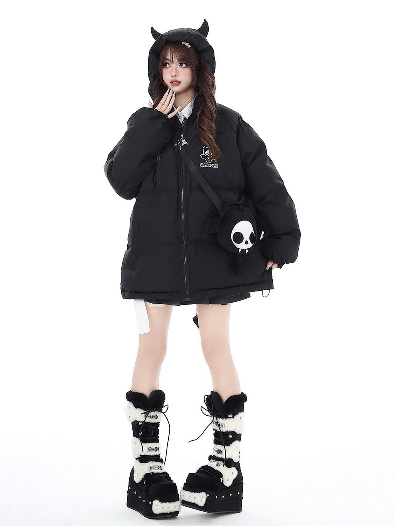 #上身 #長袖 #保暖 #惡魔角 #尾巴 #惡魔 #棉服 #寬鬆