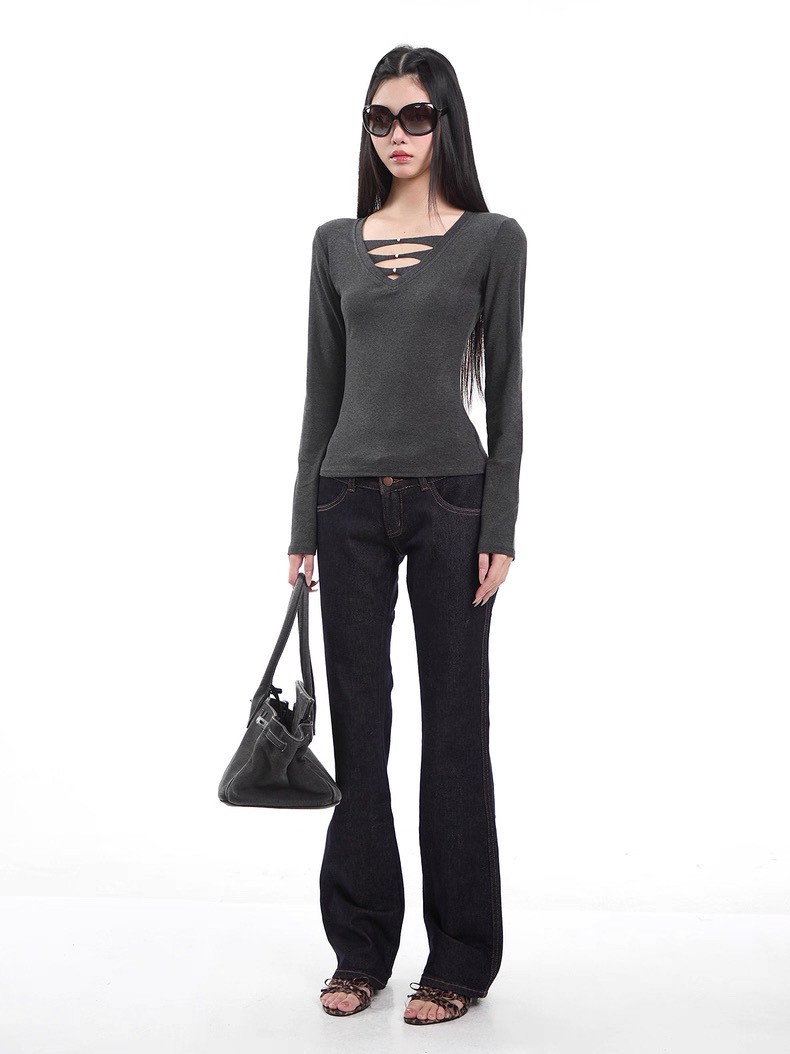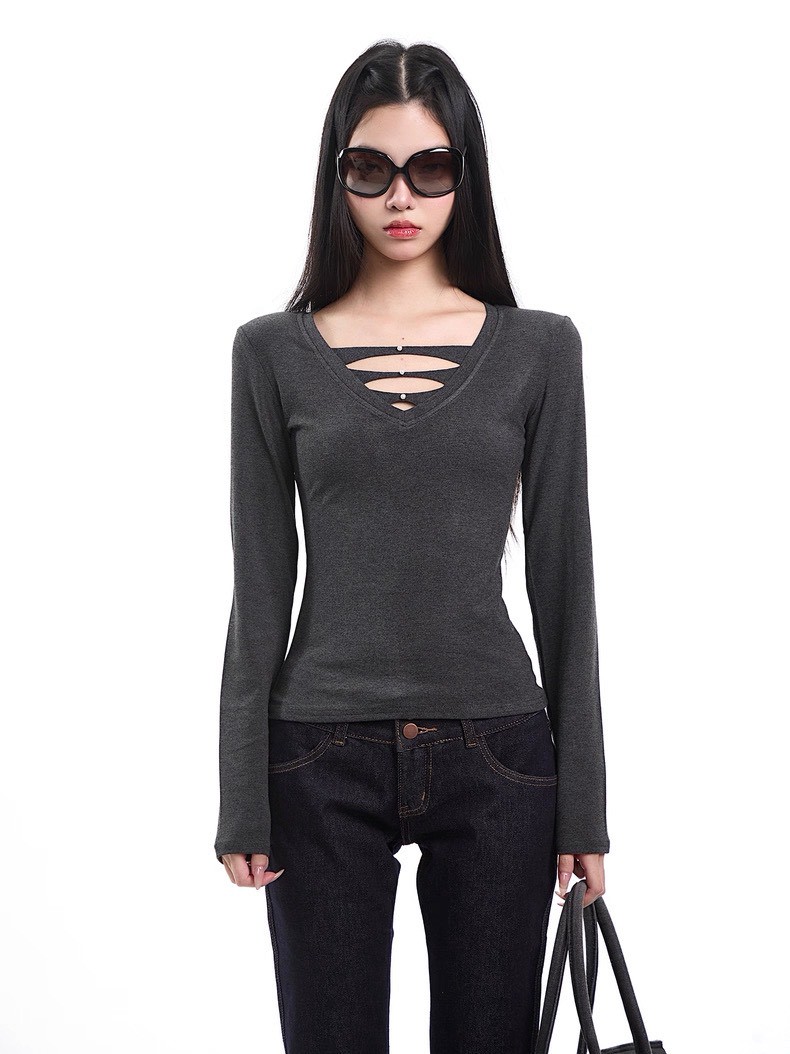 #上衣 #上身 #內搭 #長袖 #合身 #V領 #鏤空