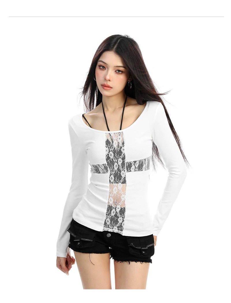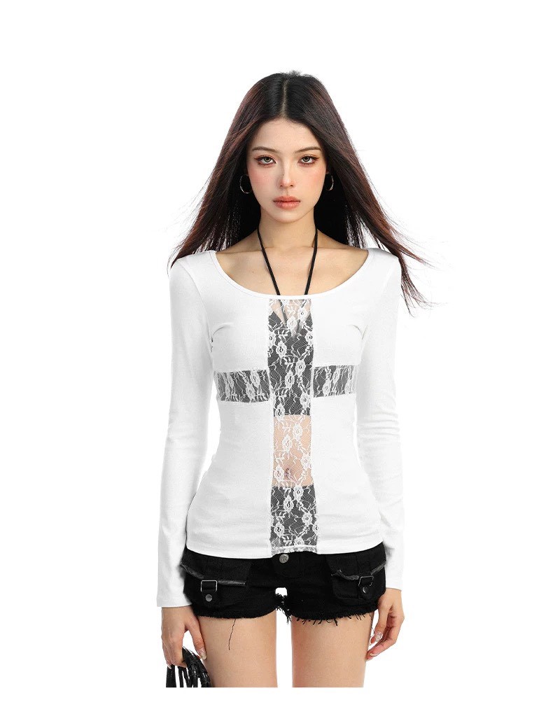 #上衣 #上身 #內搭 #長袖 #暈染 #十字 #蕾絲 #透視