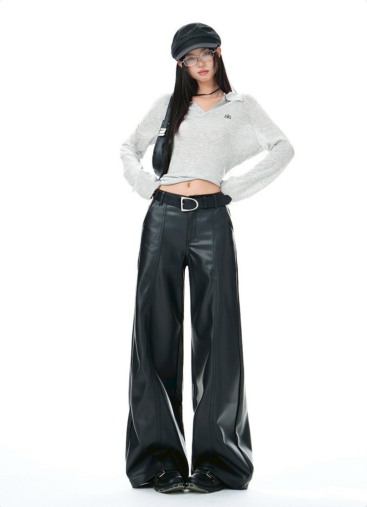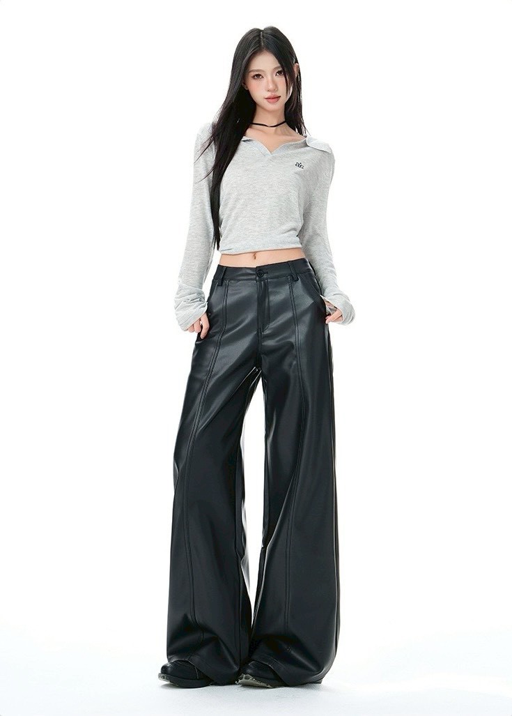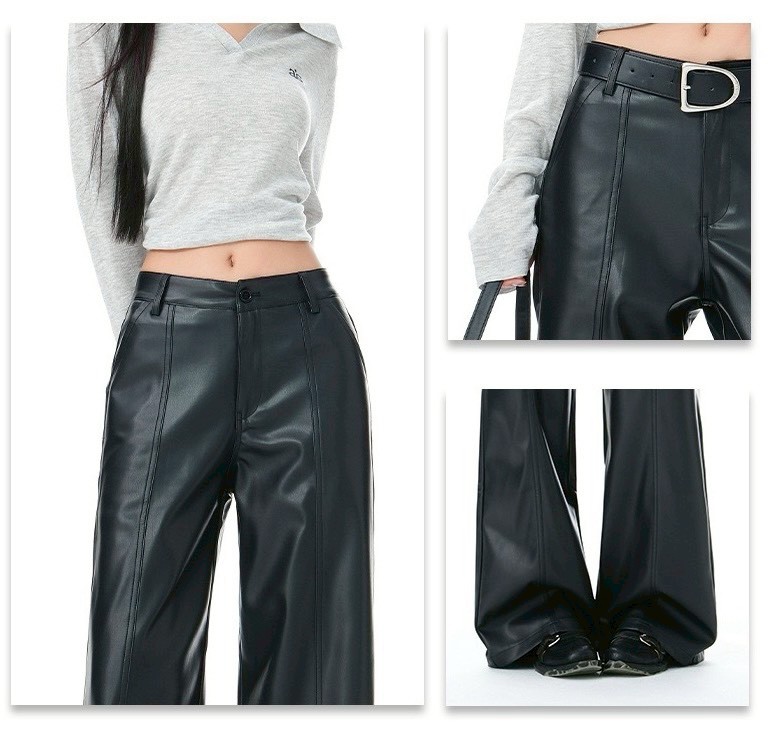 #下身 #高腰 #微喇叭 #復古 #皮褲 #寬鬆 #闊腿 #拖地褲