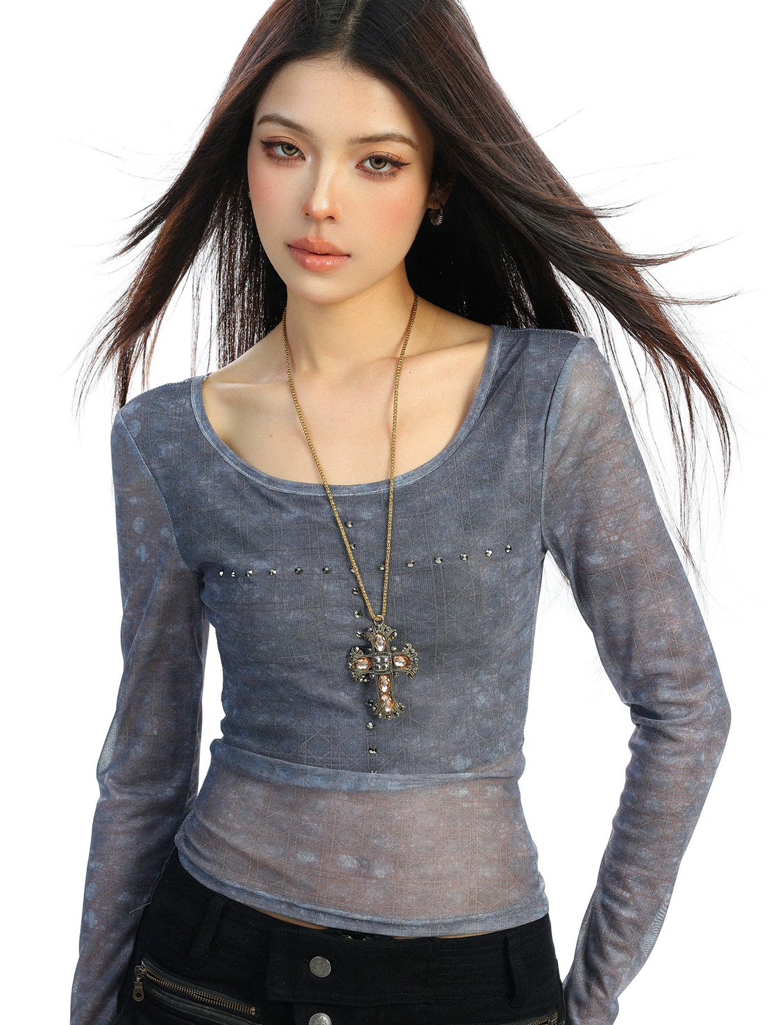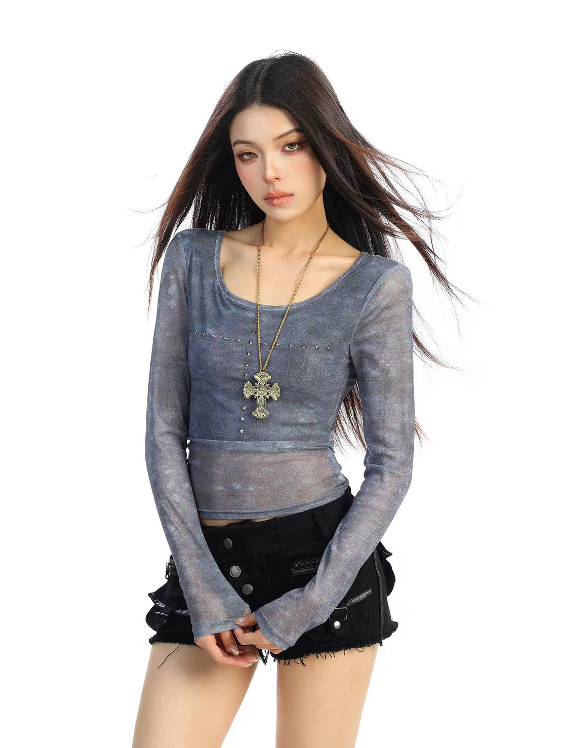 #上身 #上衣 #長袖 #微透膚 #十字架