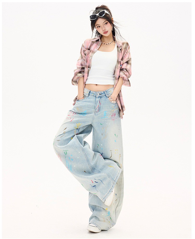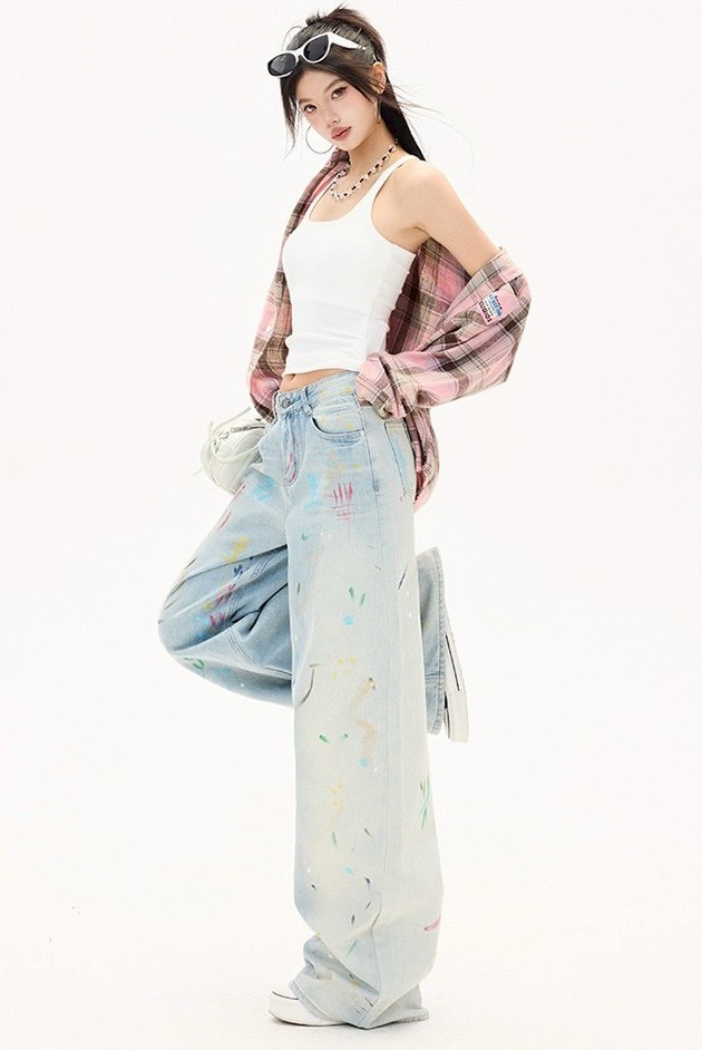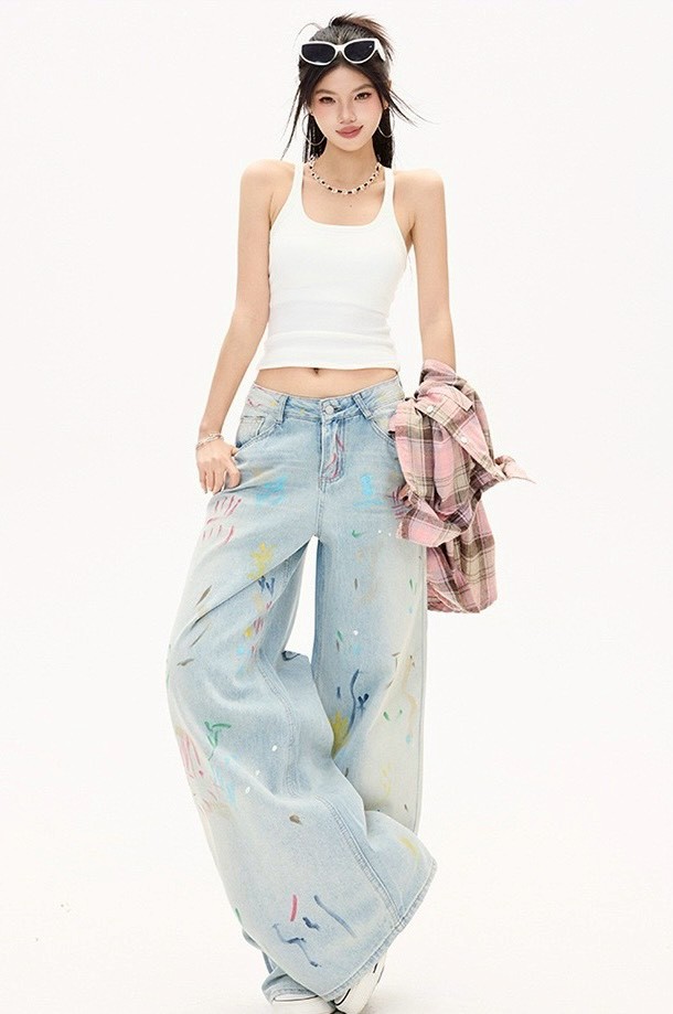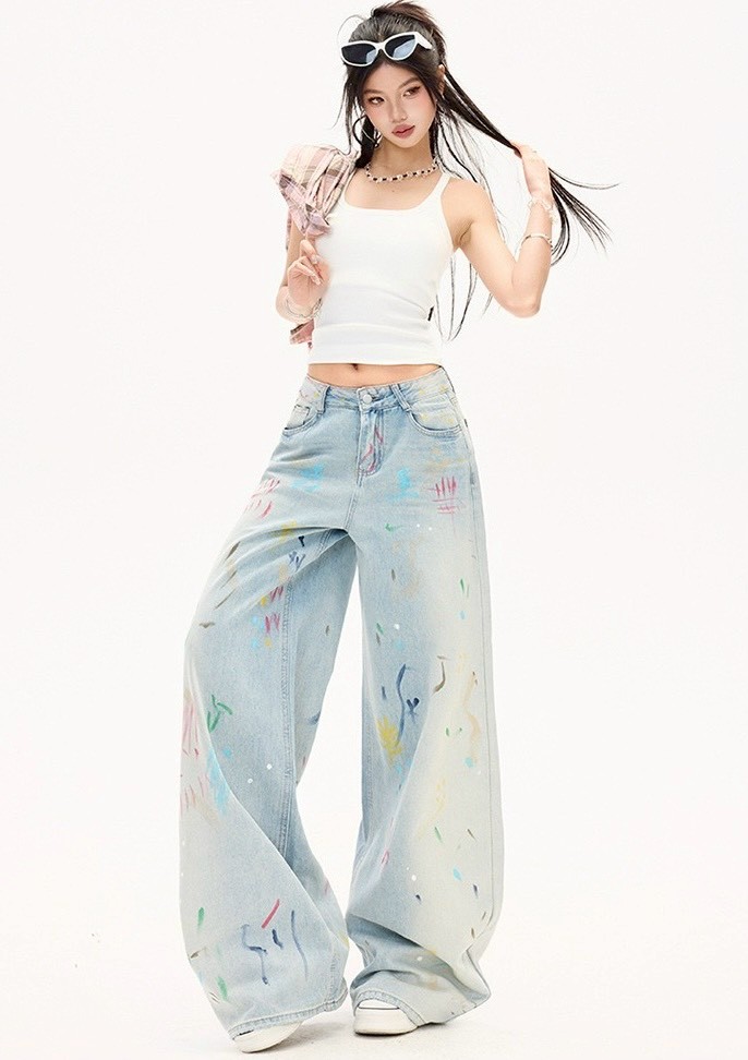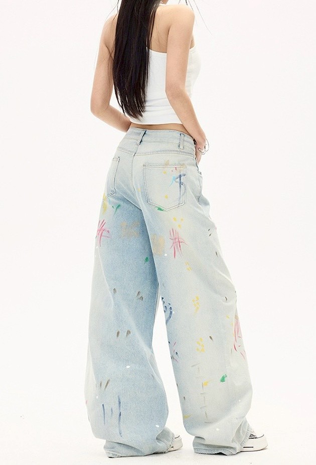 #下身 #塗鴉 #直筒褲 #拖地 #闊腿 #拖地褲