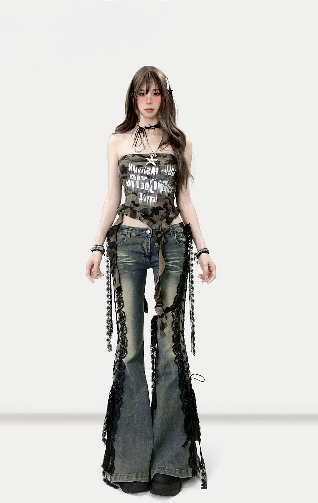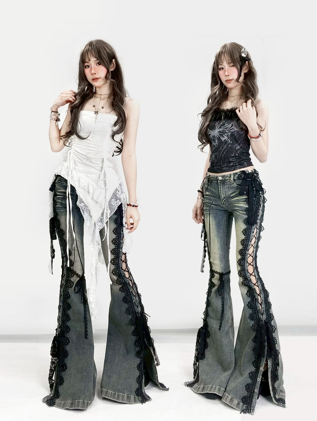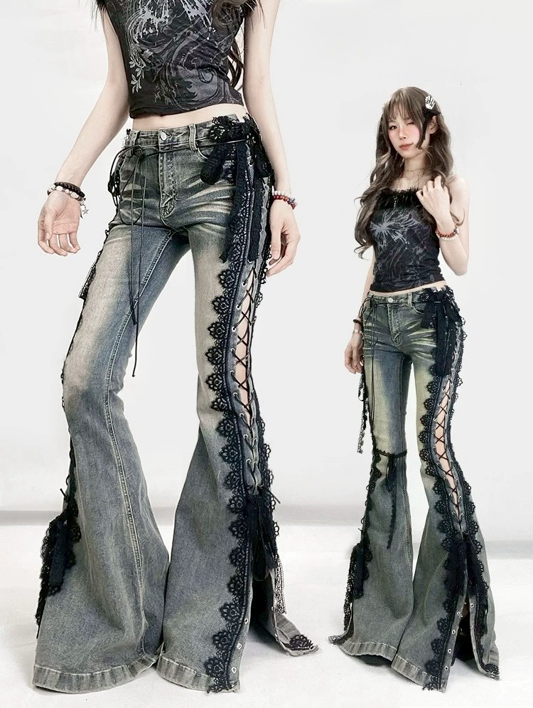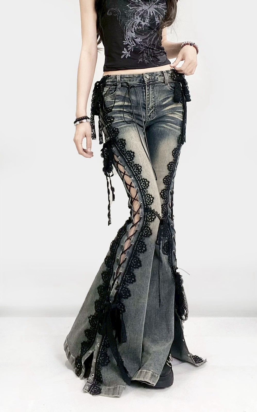 #下身 #長褲 #牛仔褲 #蕾絲 #綁帶