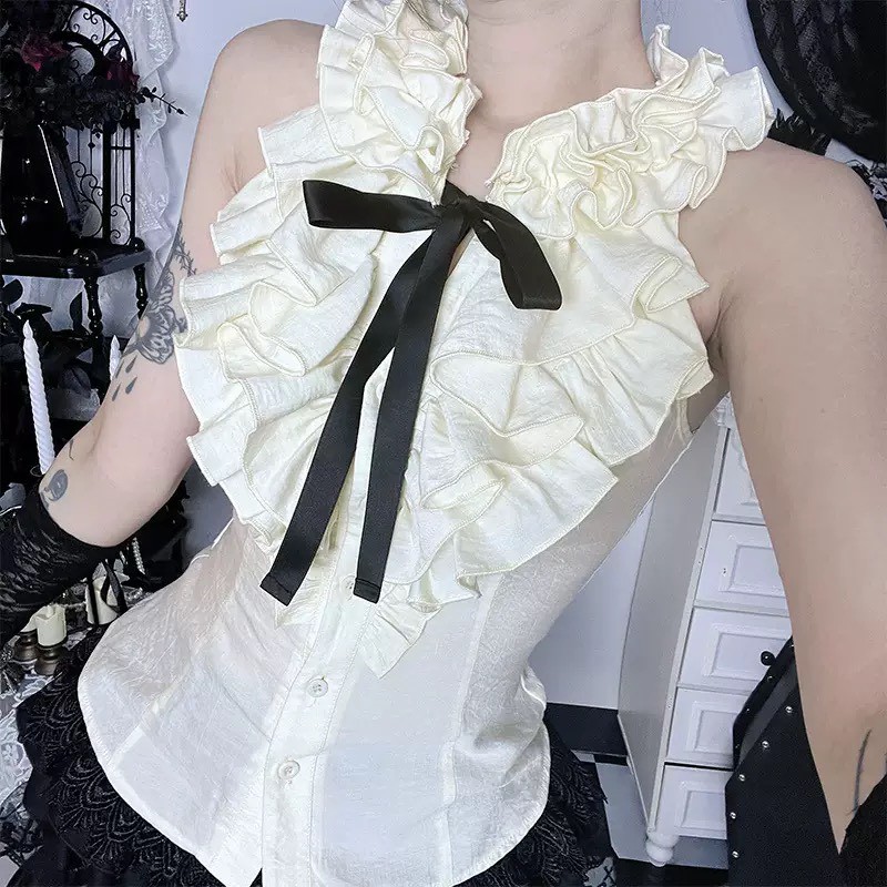 #上身 #上衣 #荷葉領 #無袖 #薄款