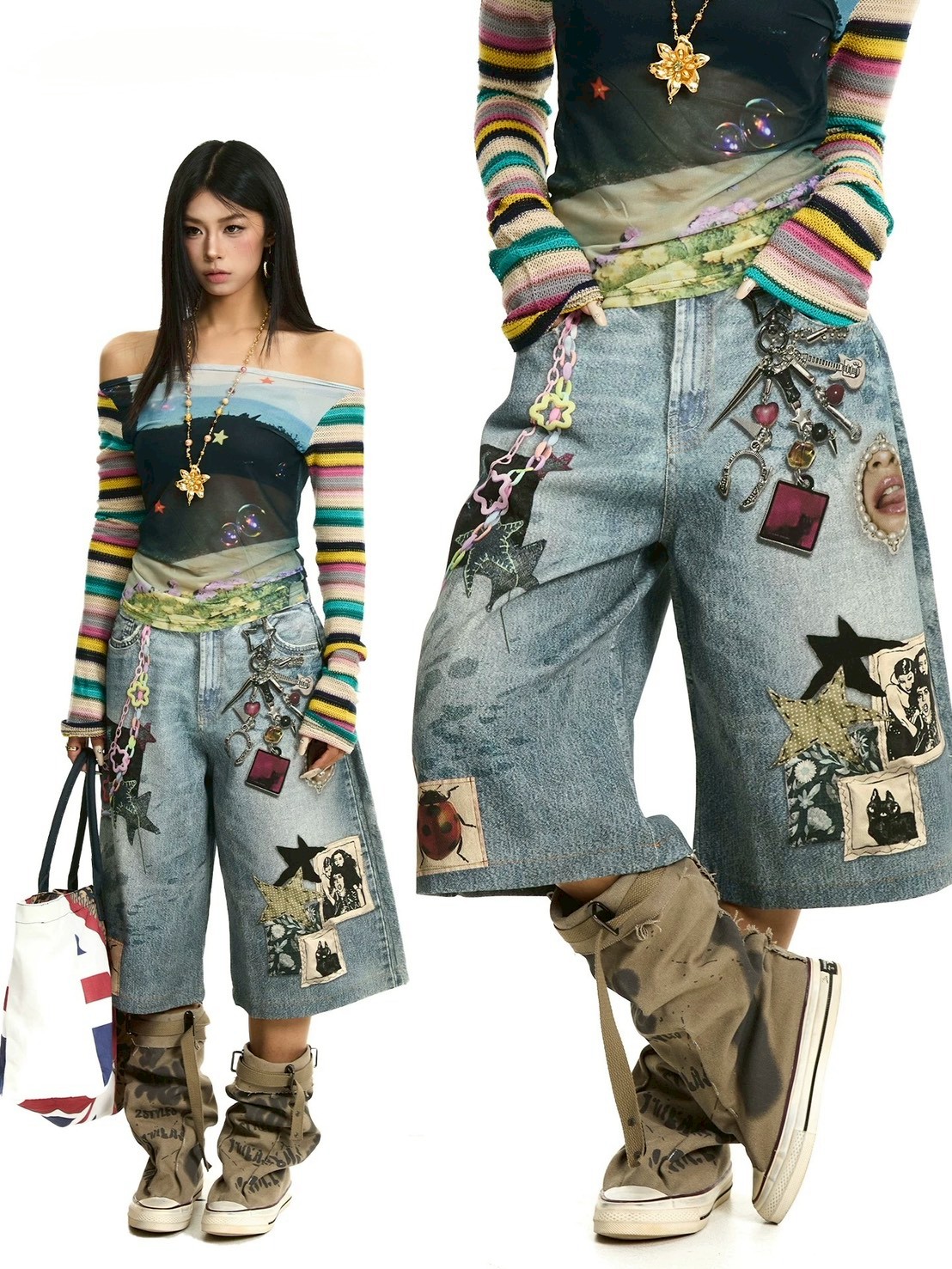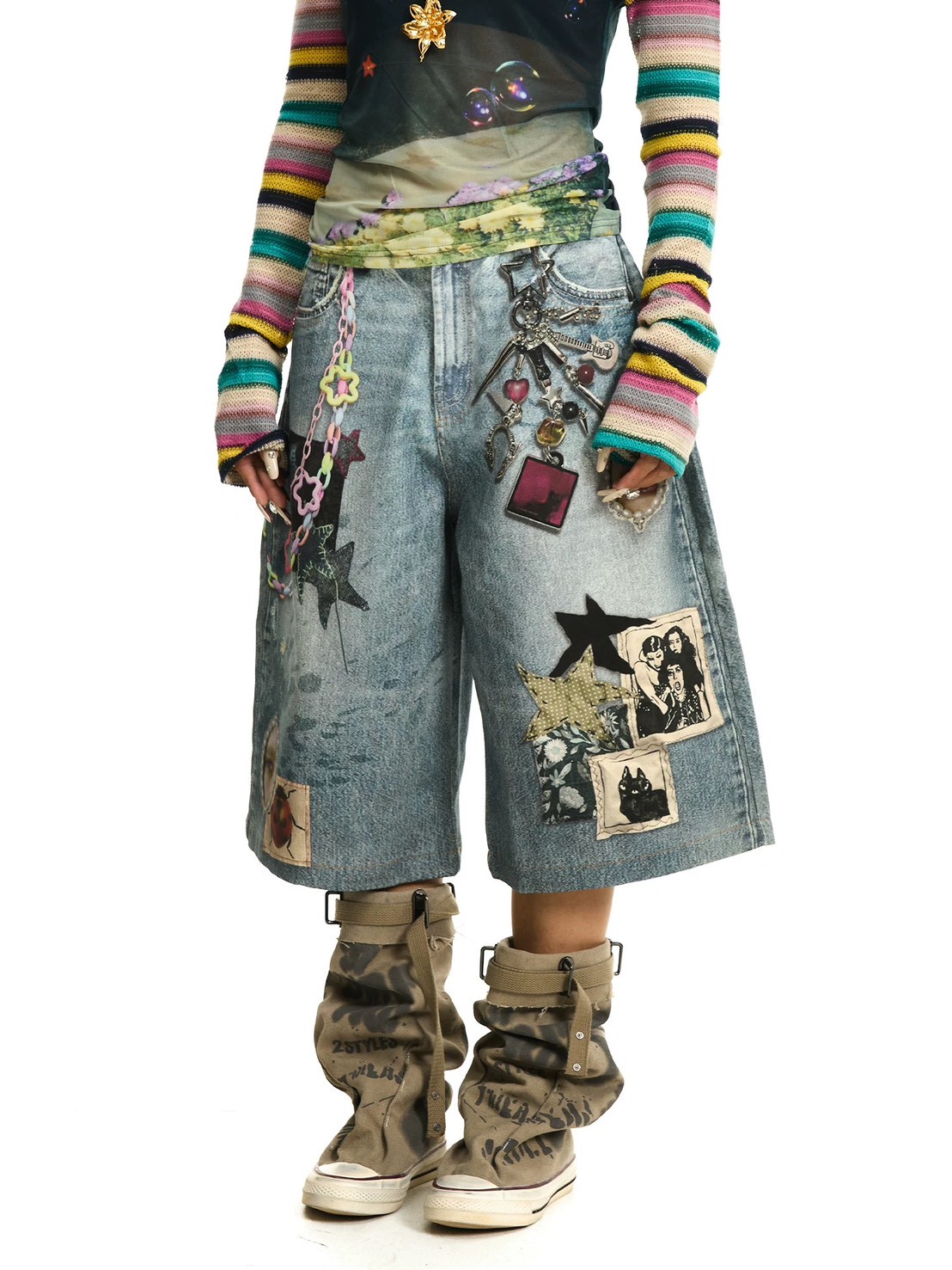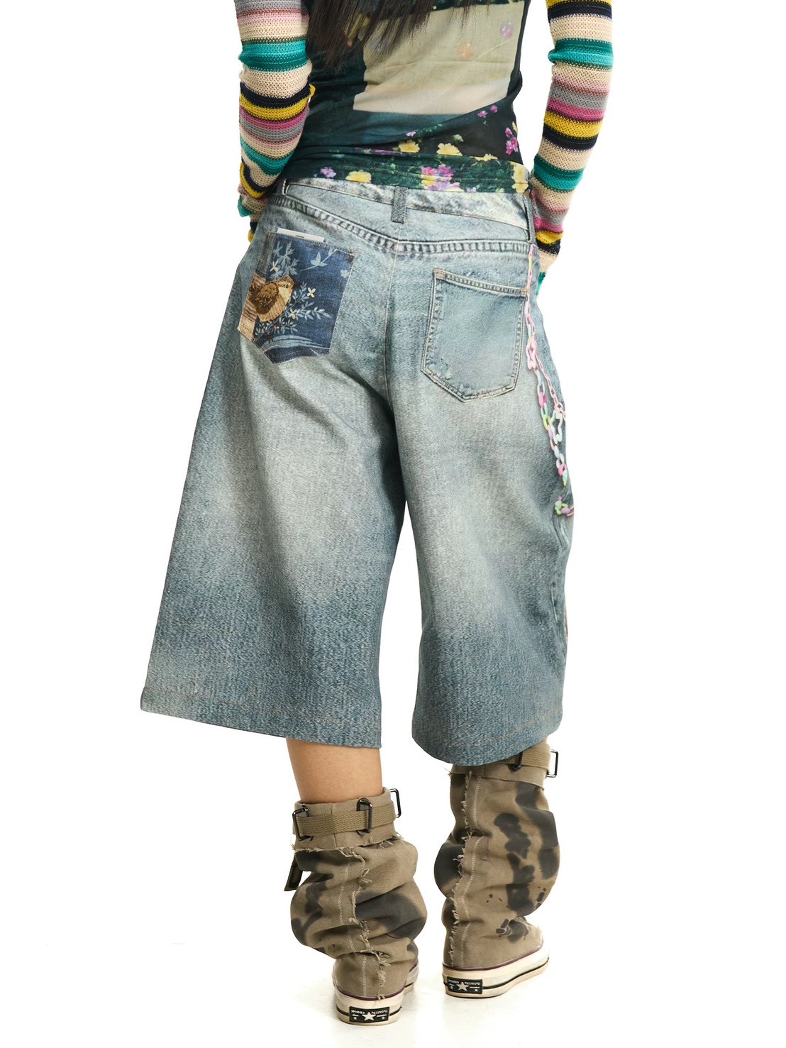 #下身 #七分褲 #牛仔褲 #印花 #重工