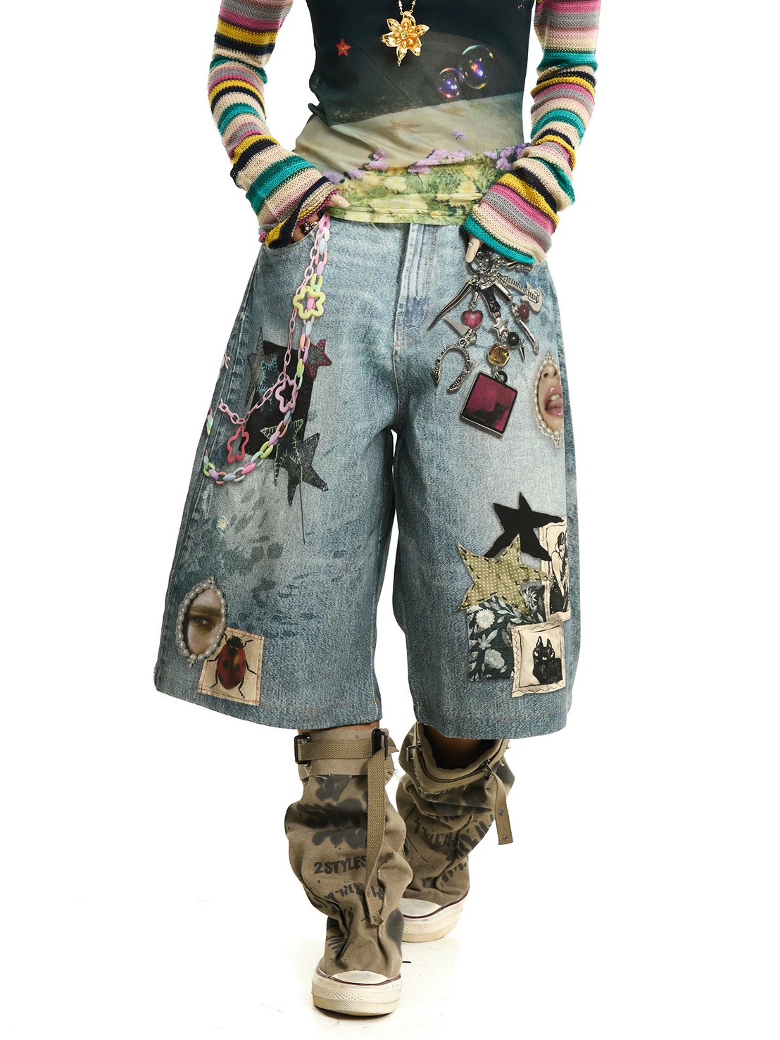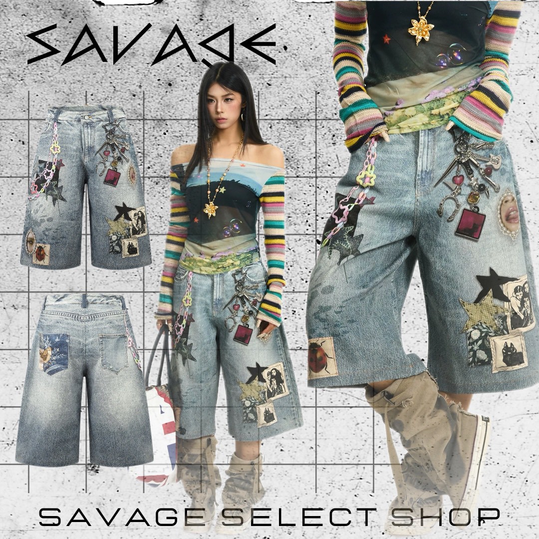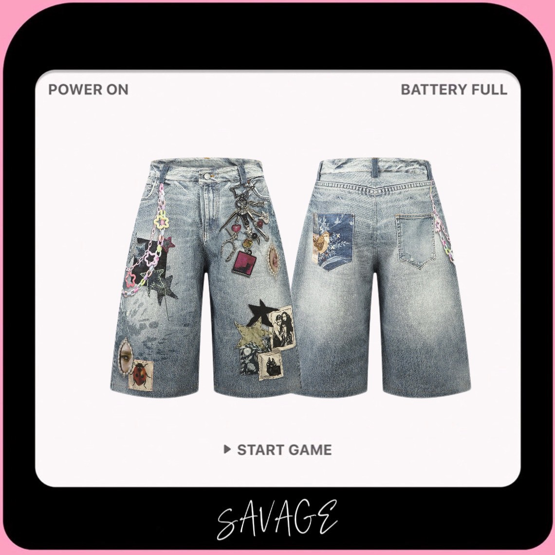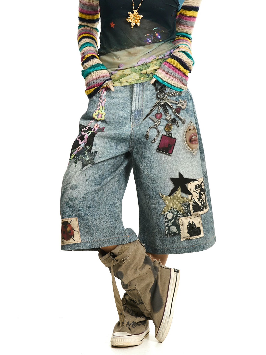 #下身 #七分褲 #牛仔褲 #印花 #重工