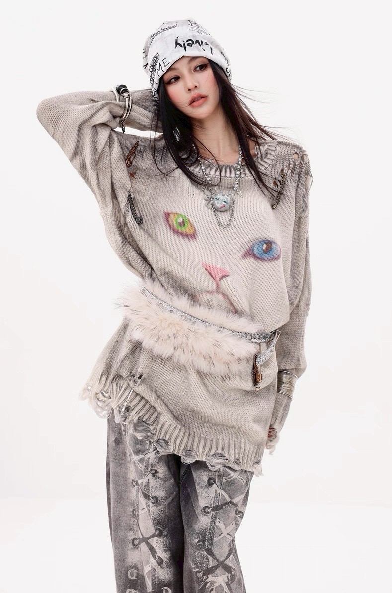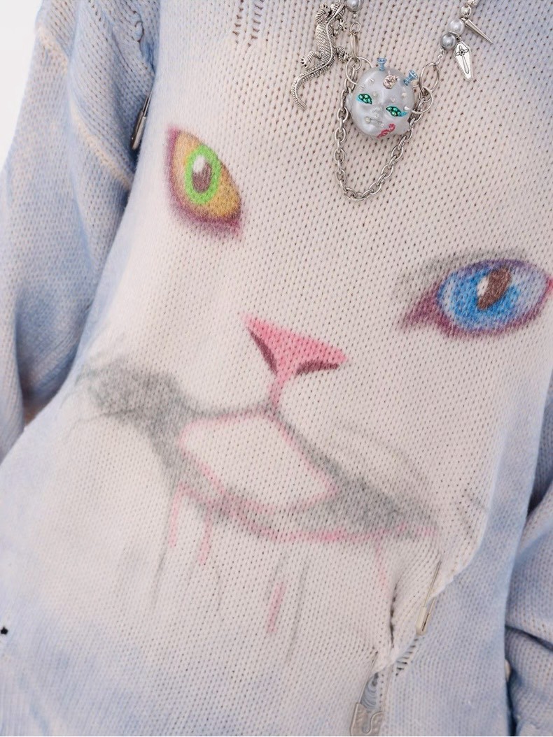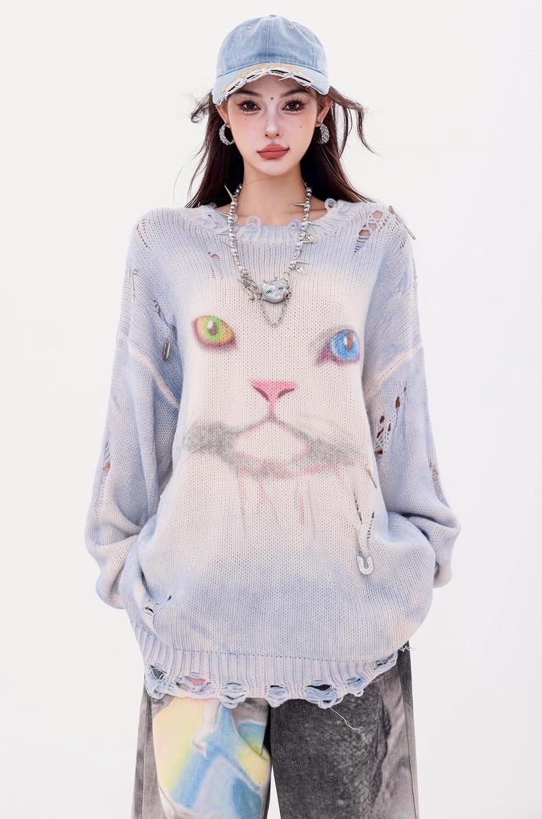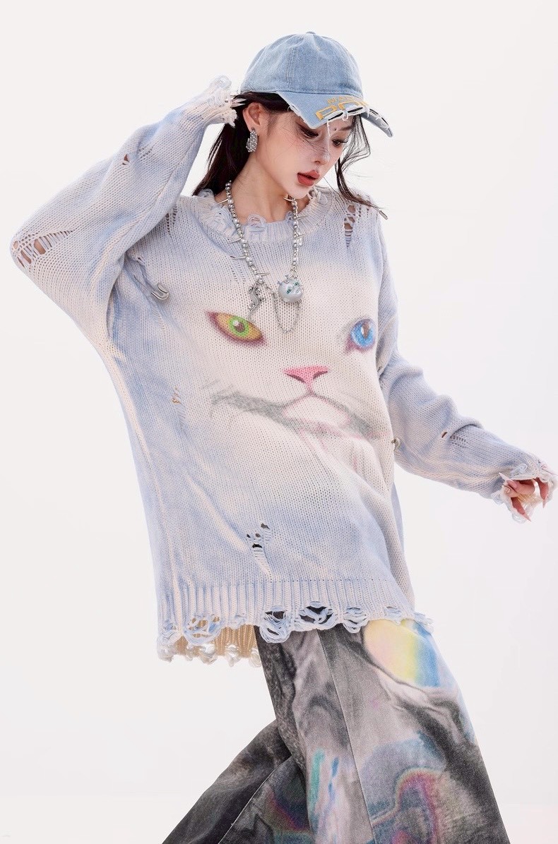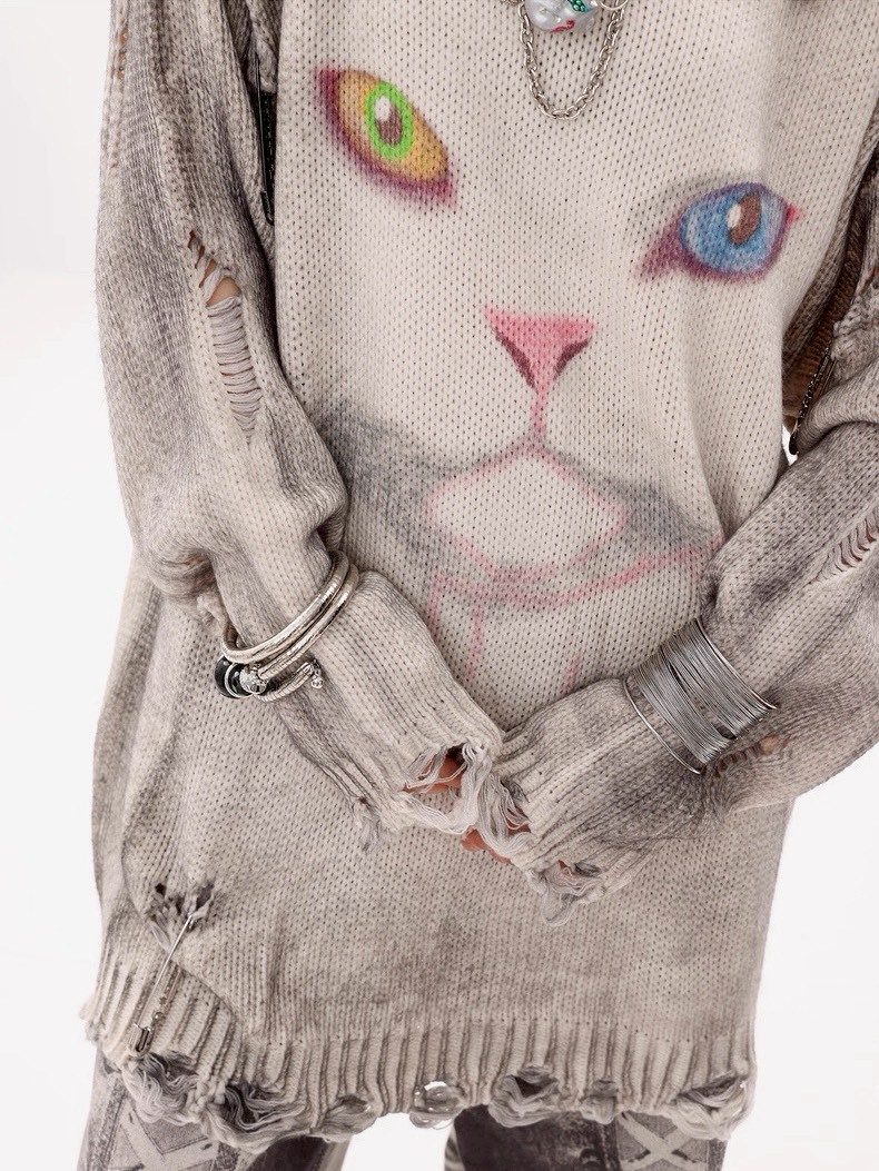 #上身 #寬鬆 #長袖 #針織 #秋冬 #貓咪 #破壞 #男女可穿