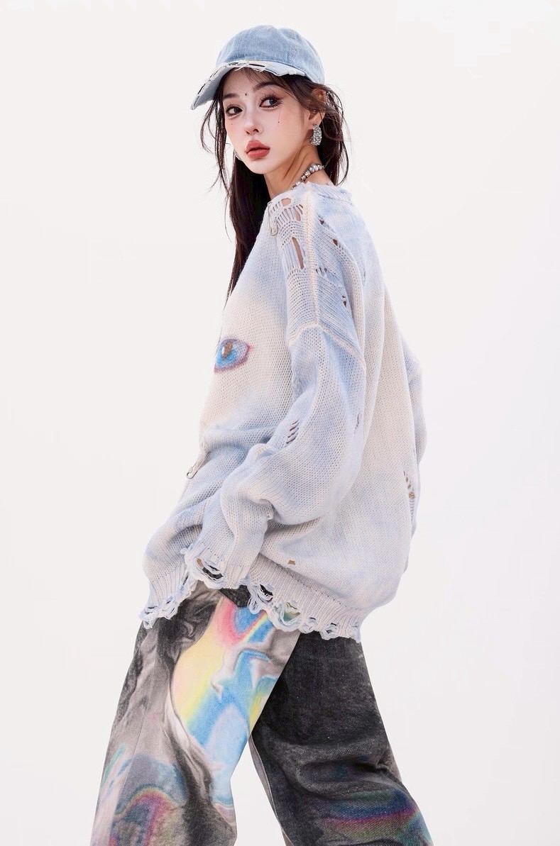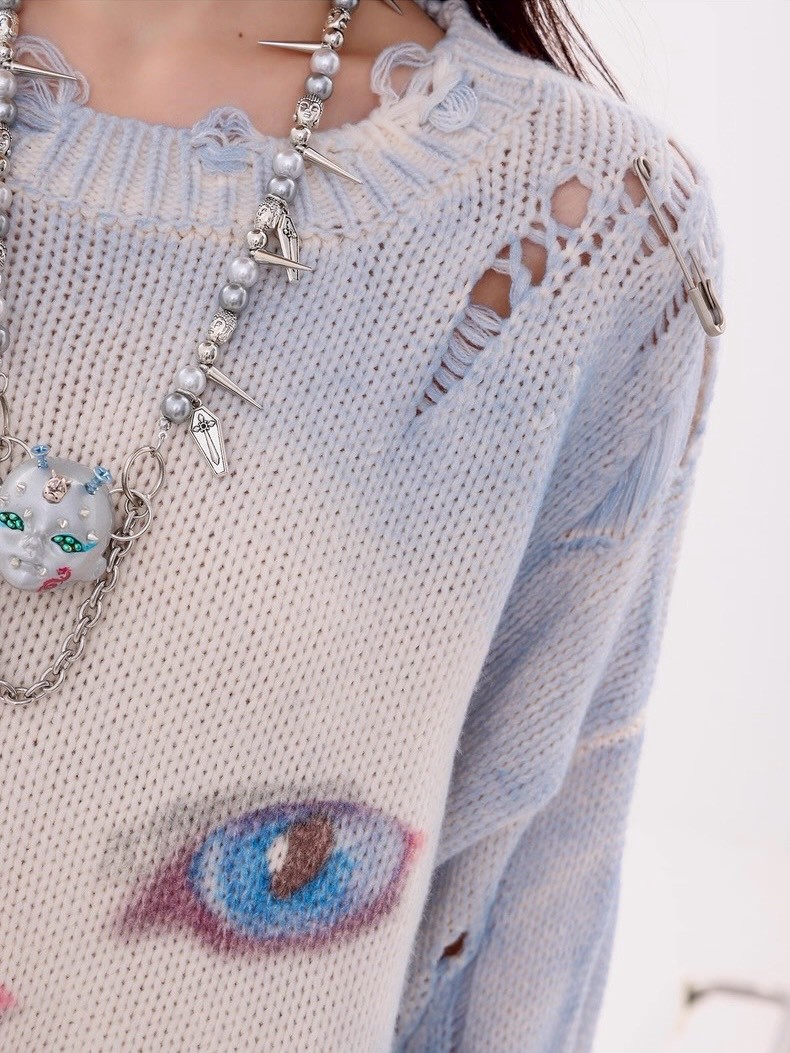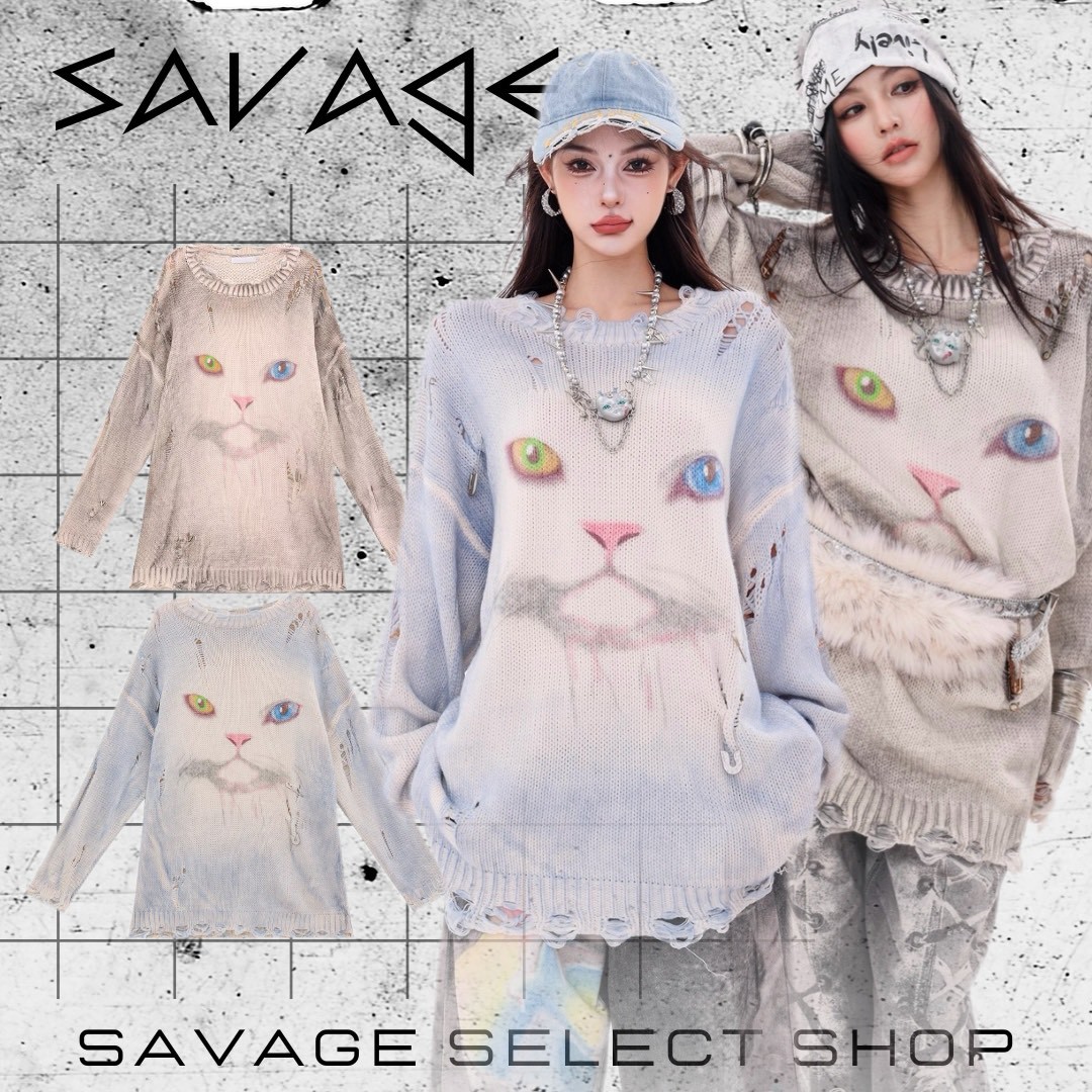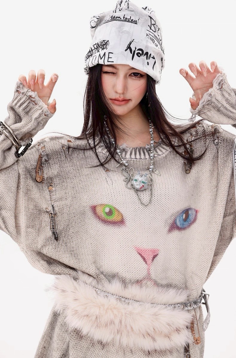 #上身 #寬鬆 #長袖 #針織 #秋冬 #貓咪 #破壞 #男女可穿