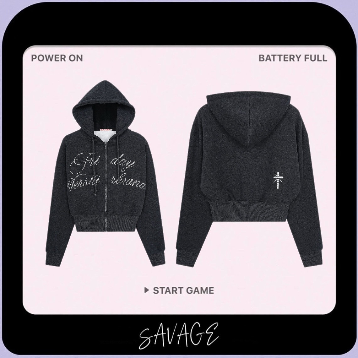 #上身 #上身 #外套 #連帽 #燙鑽 #短款 #加絨
