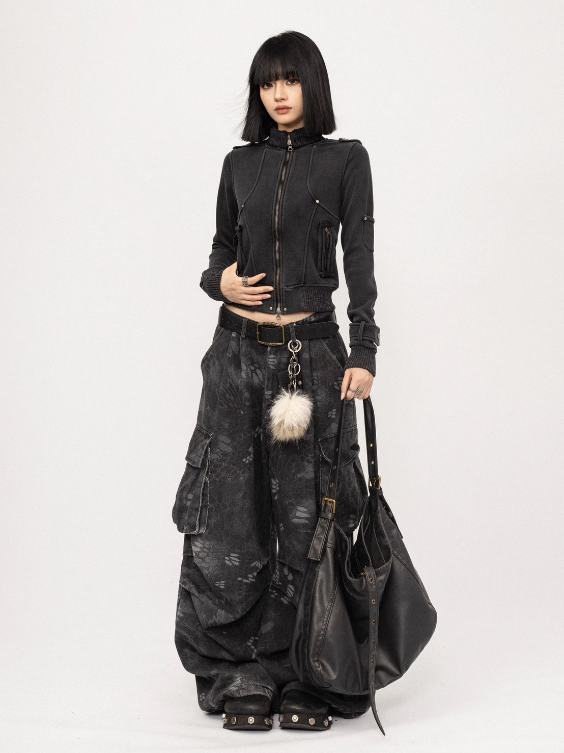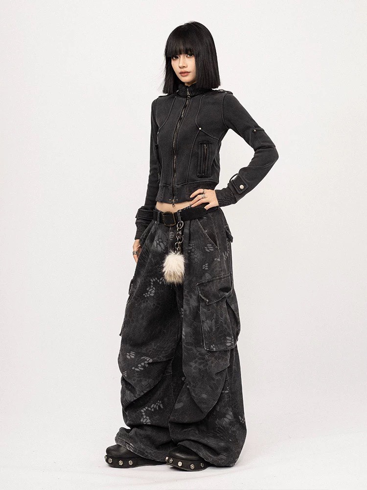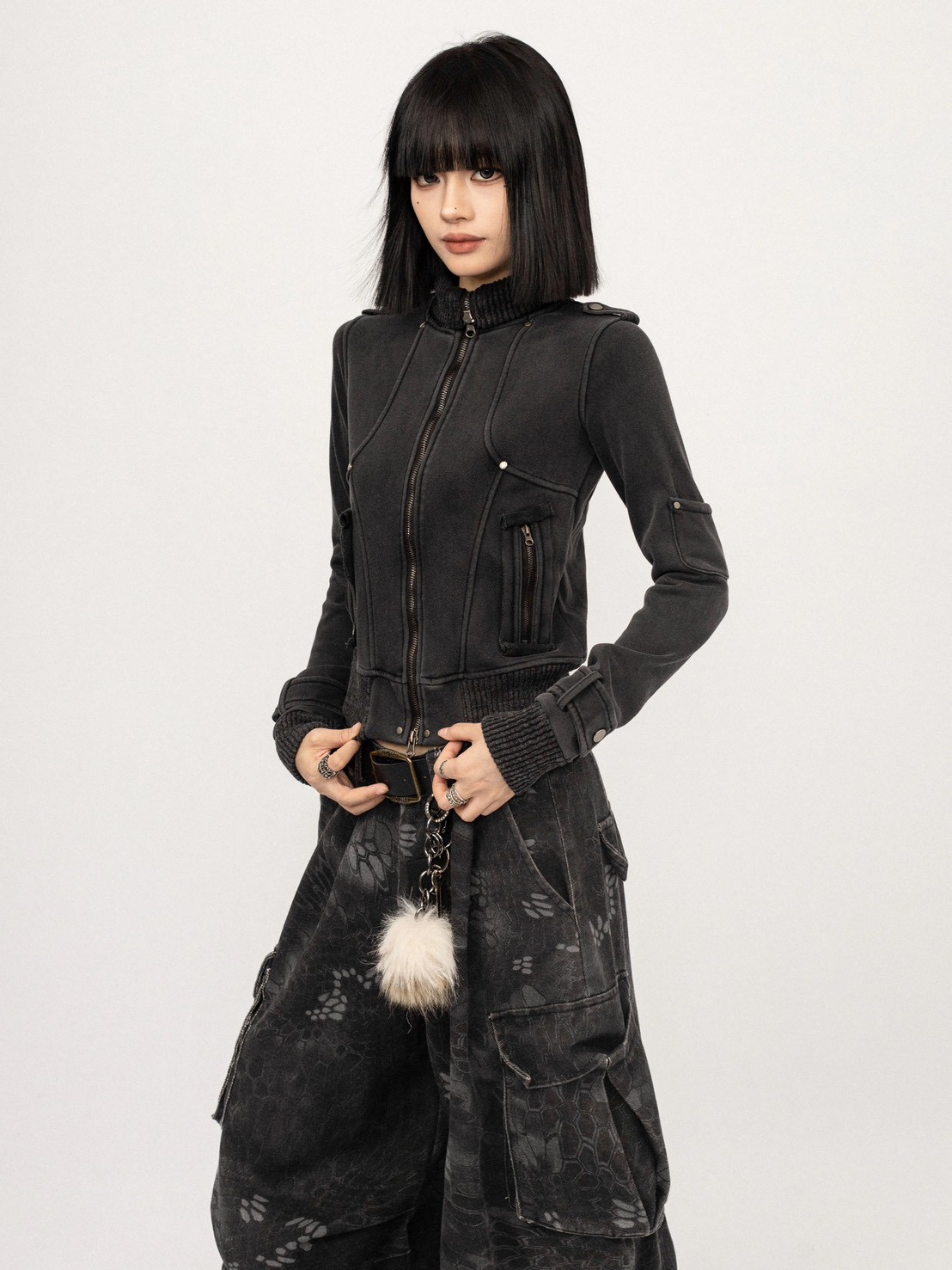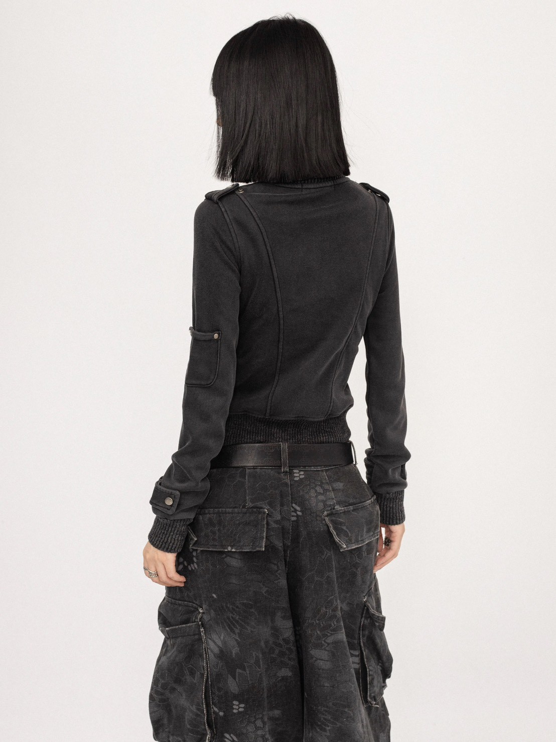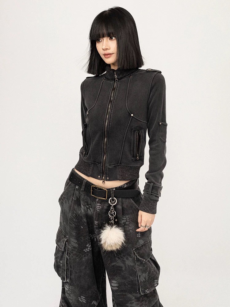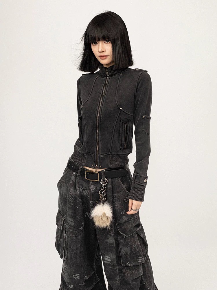 #上身 #外套 #立領 #短款 #水洗 #做舊 #鉚釘 #合身