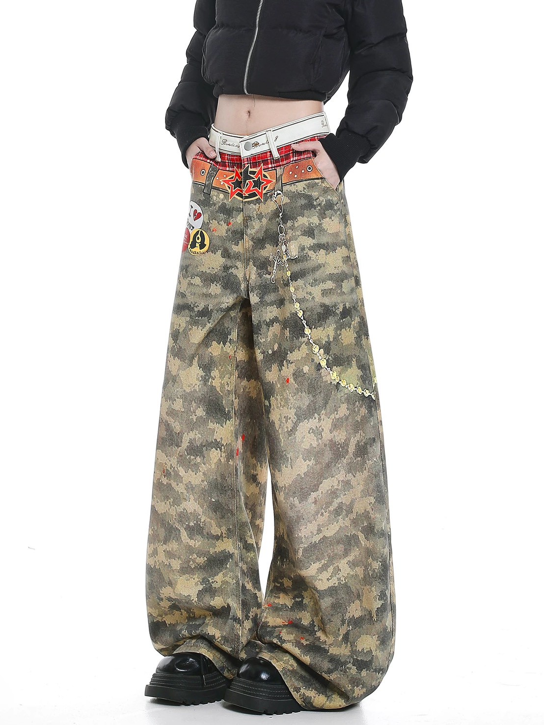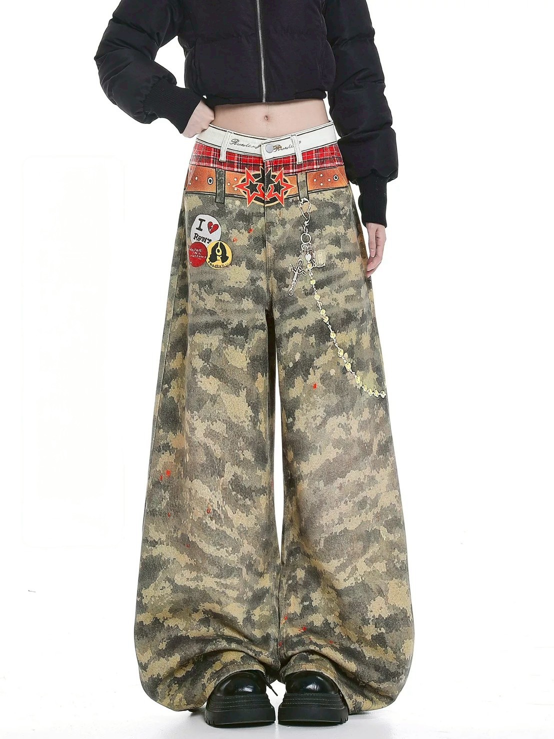 #下身 #牛仔褲 #長褲 #寬鬆 #闊腿 #拖地 #印花 #男女可穿