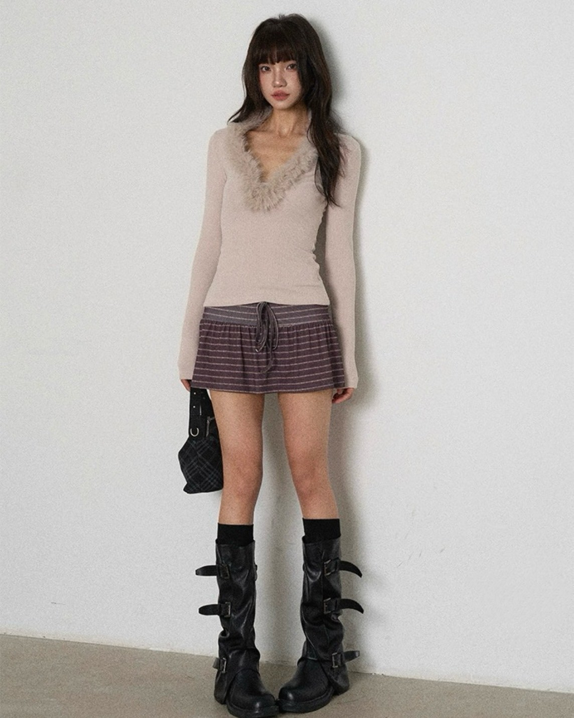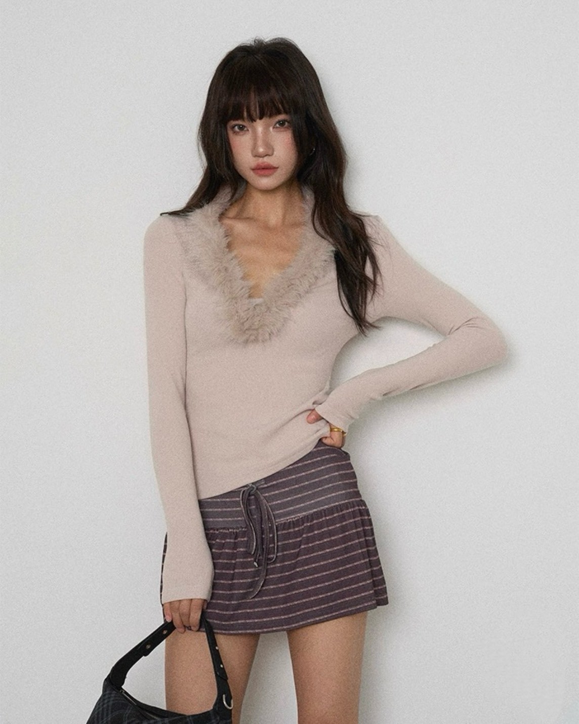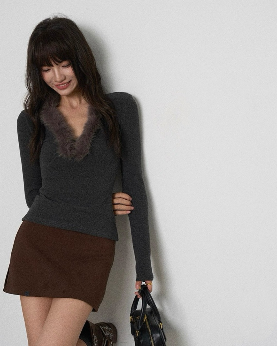 #上身 #上身 #合身 #內搭 #V領 #毛毛領