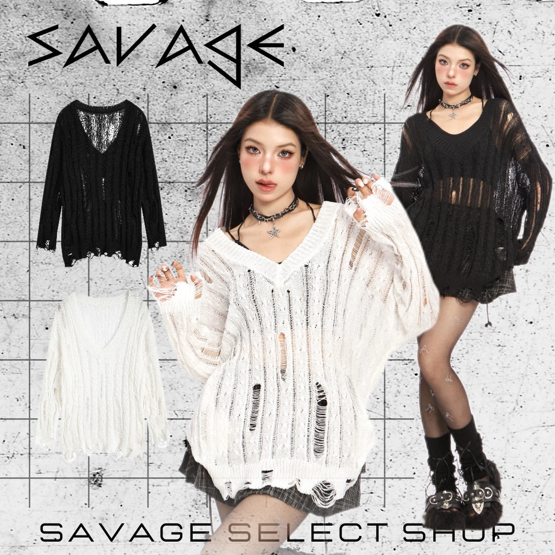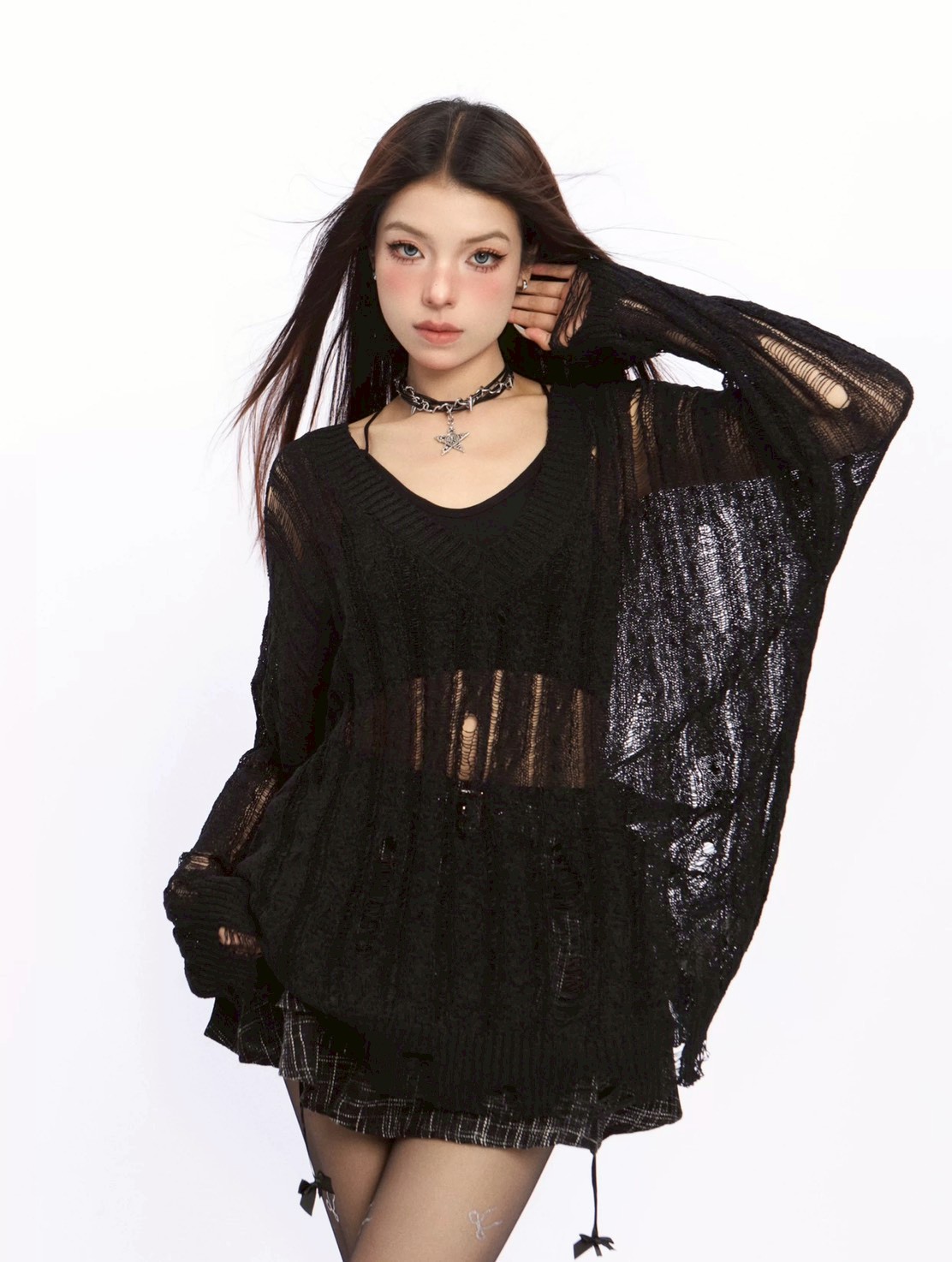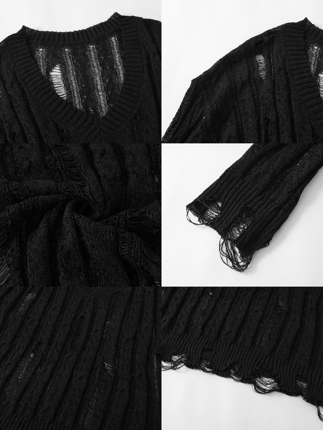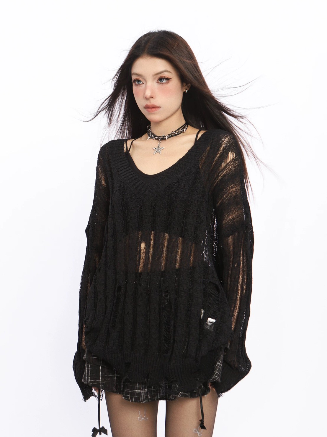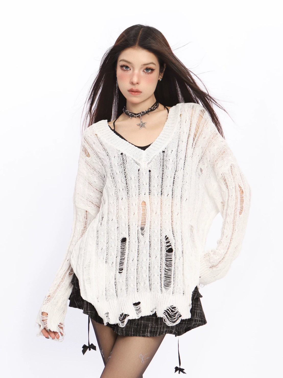 #上身 #上身 #V領 #破洞 #寬鬆 #毛衣 #針織 #落肩 #長袖