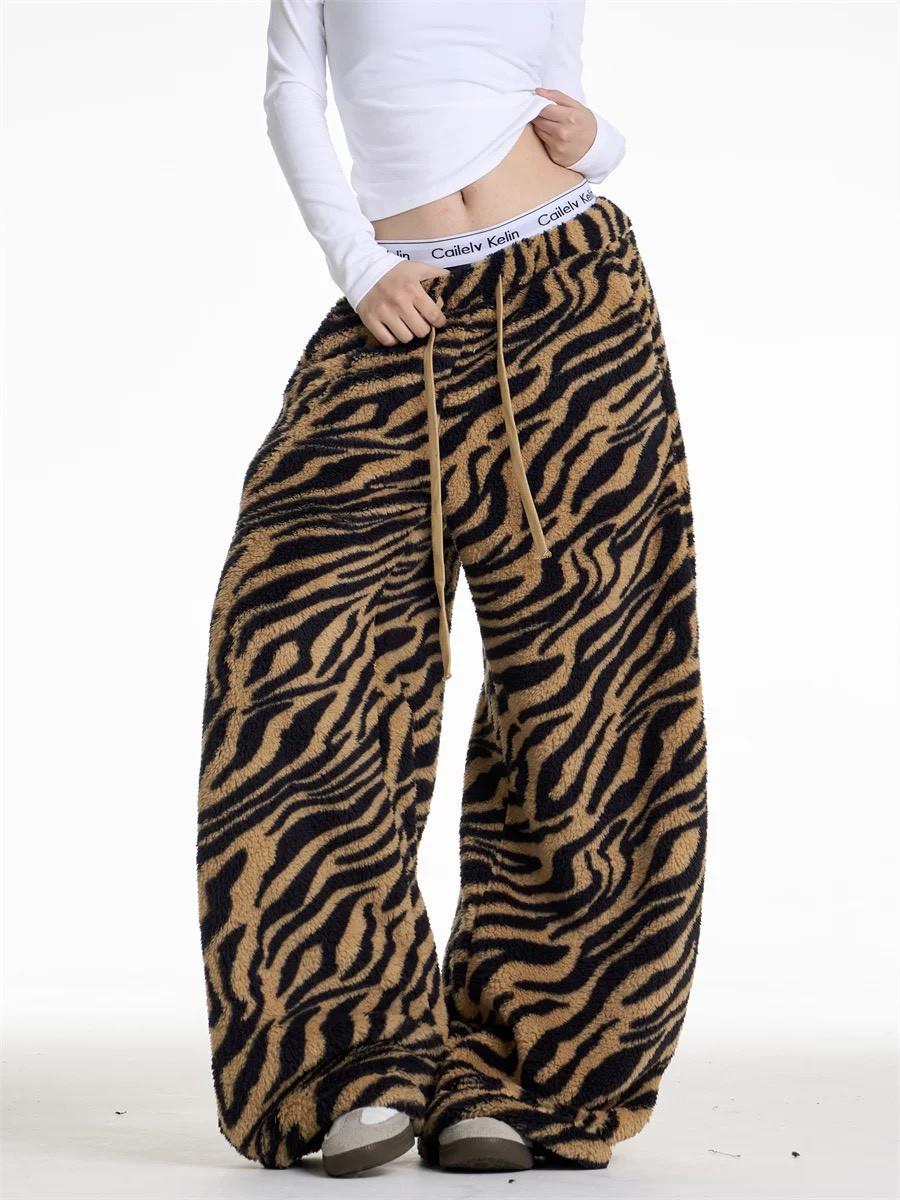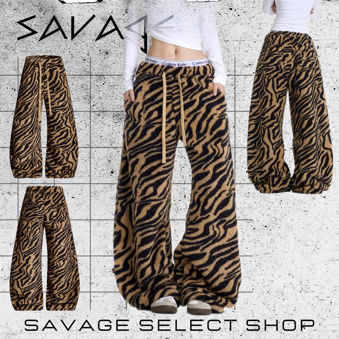 #下身 #長褲 #鬆緊腰 #動物紋 #彎刀 #毛絨 #寬鬆 #闊腿 #拖地褲 #男女可穿