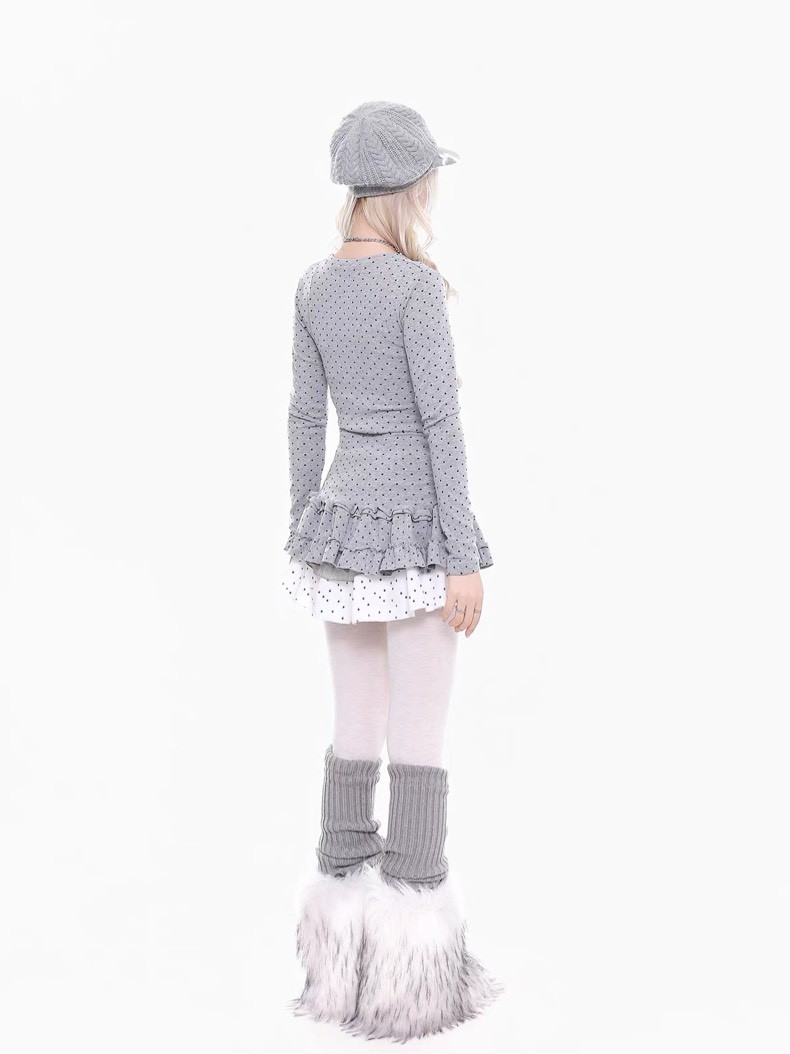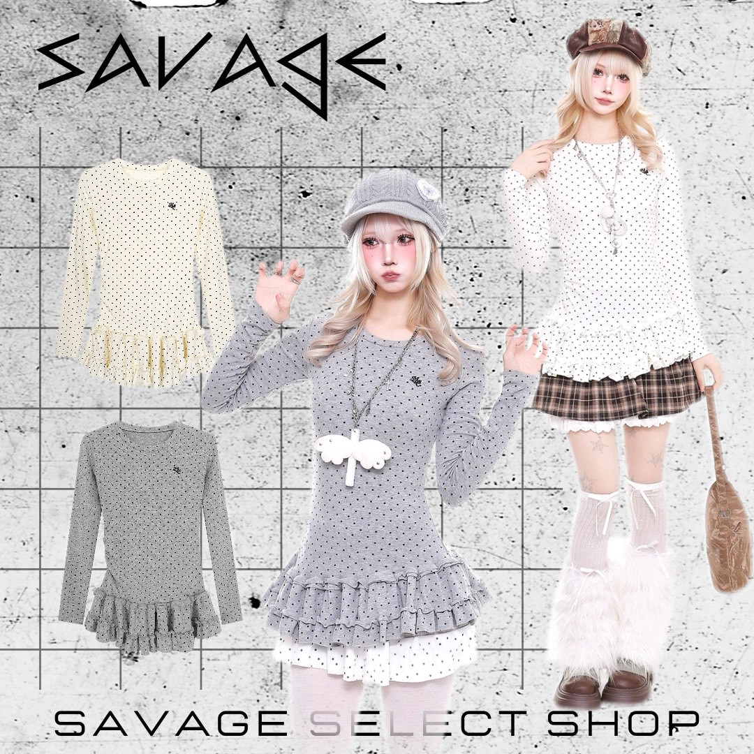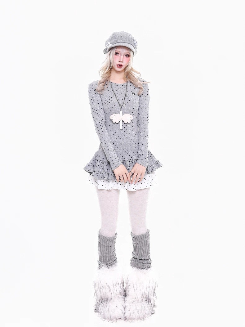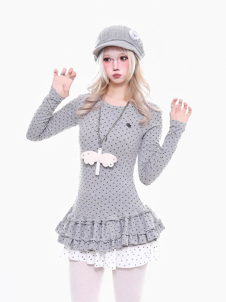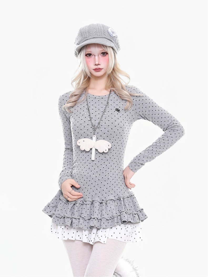#上身 #上衣 #長袖 #合身 #裙襬 #點點 #疊穿