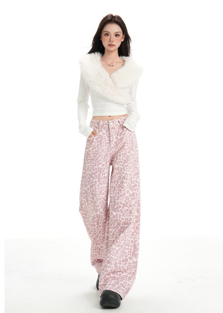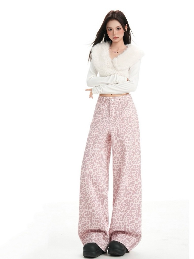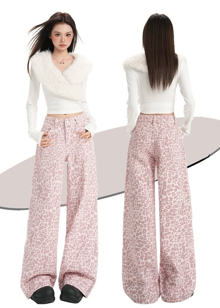 #下身 #長褲 #垂墜感 #復古 #豹紋 #牛仔褲 #寬鬆 #闊腿 #拖地褲