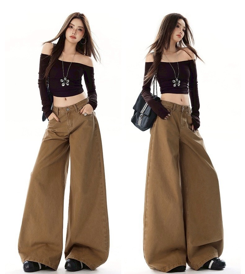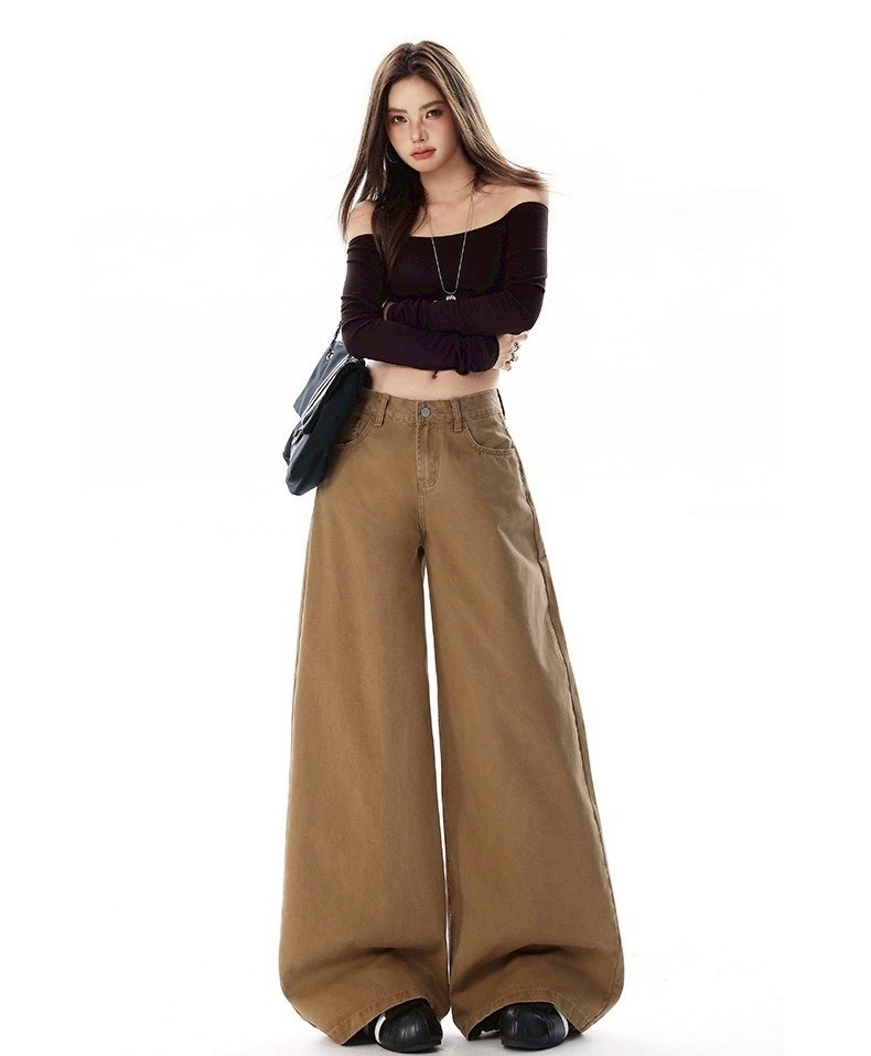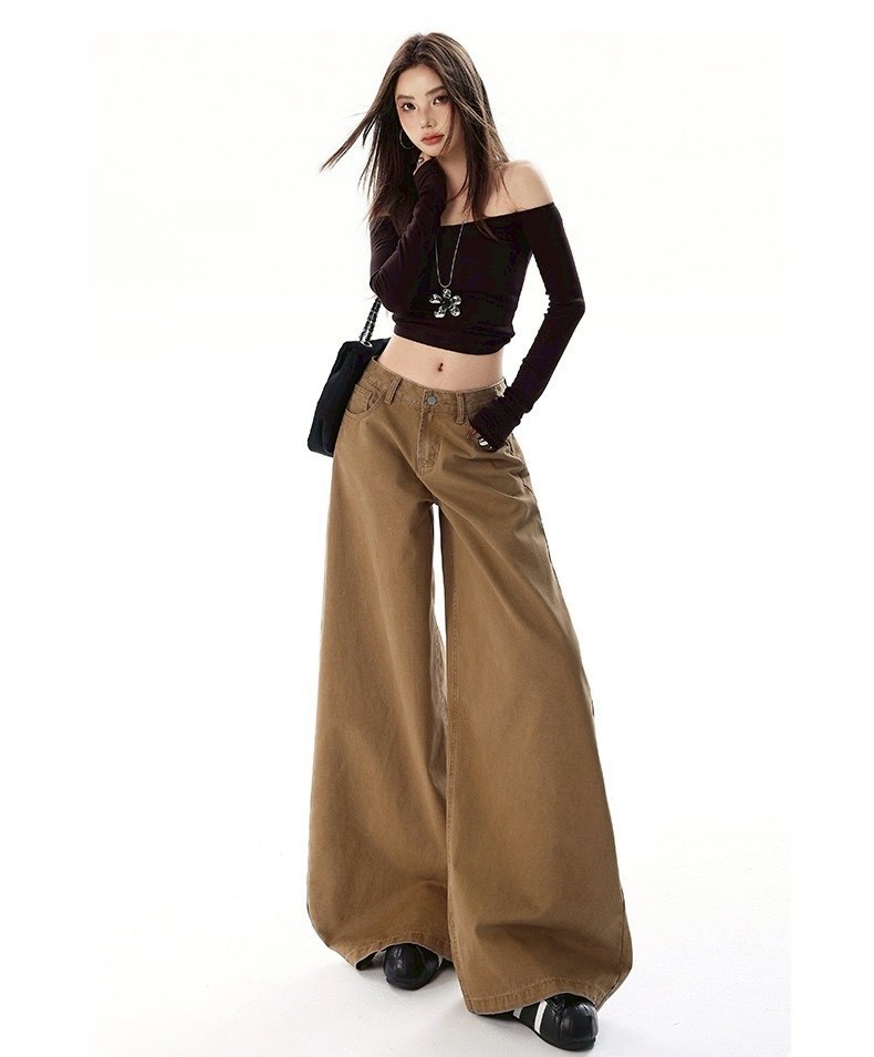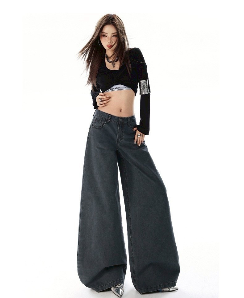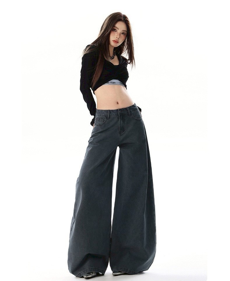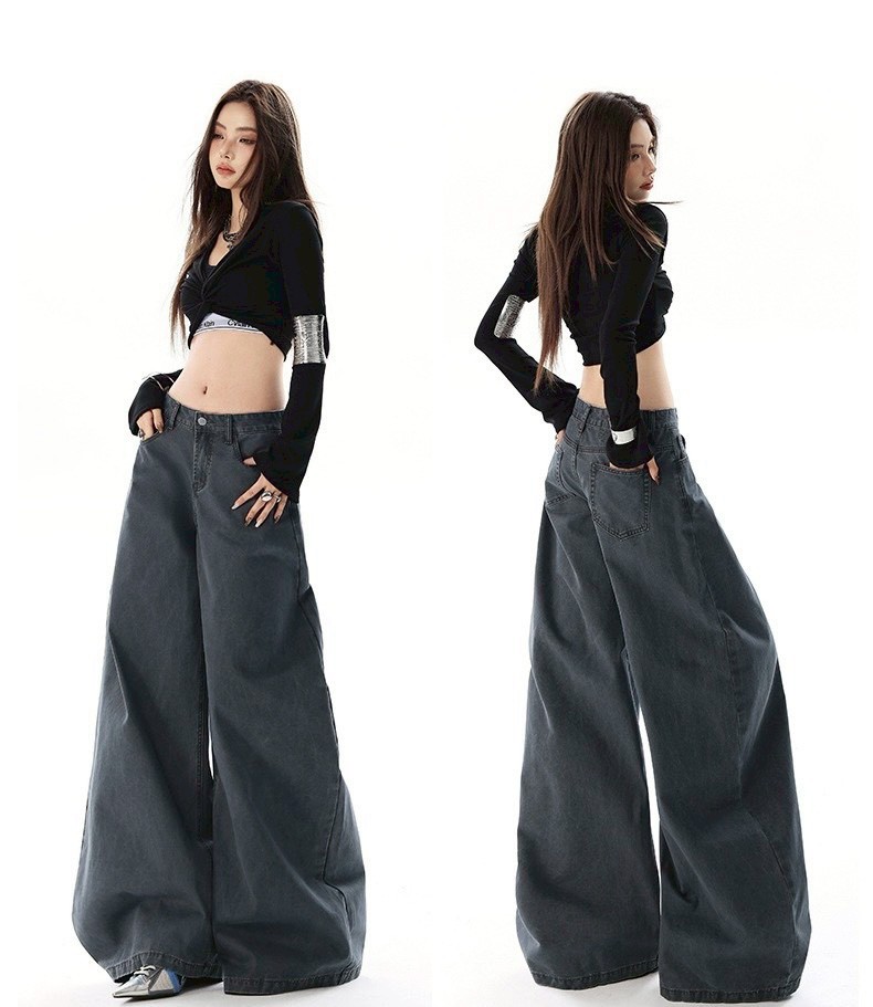 #高腰 #下身 #長褲 #褪色 #復古 #寬鬆 #牛仔褲 #闊腿 #拖地褲