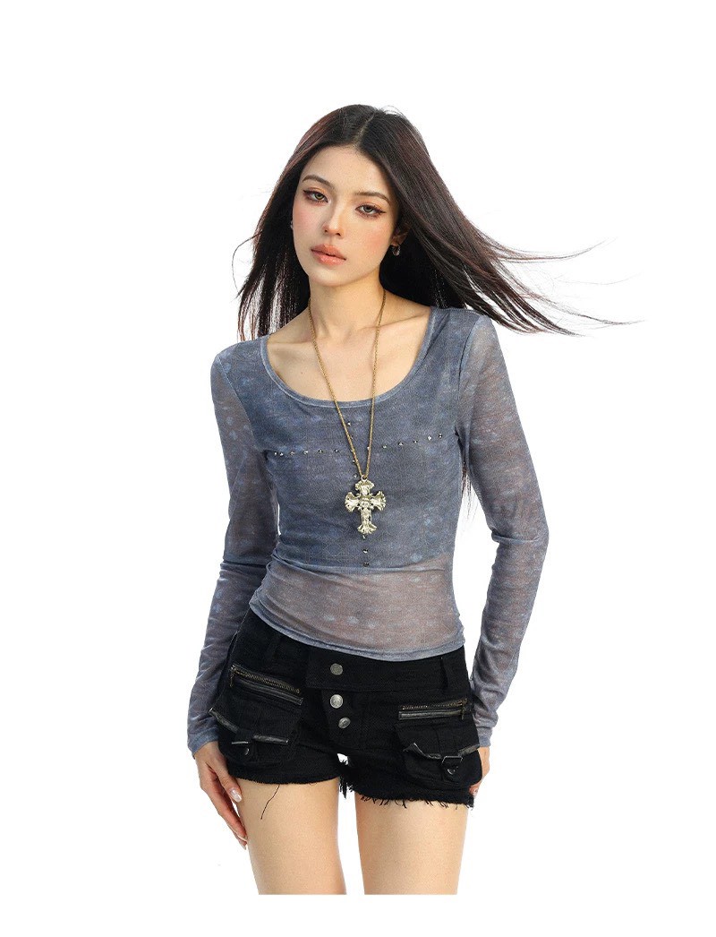 #上衣 #上身 #內搭 #長袖 #暈染 #十字 #燙鑽 #透視