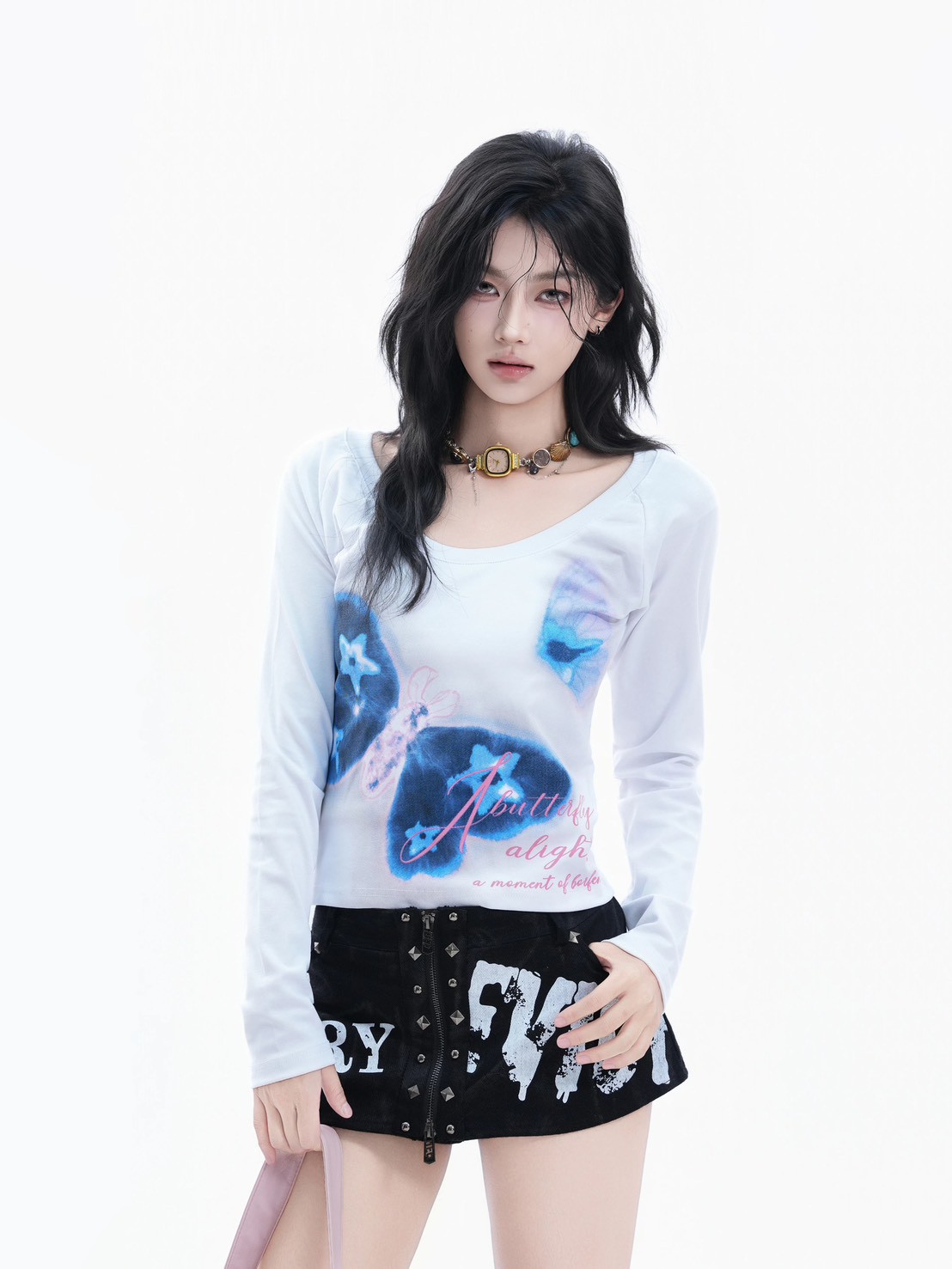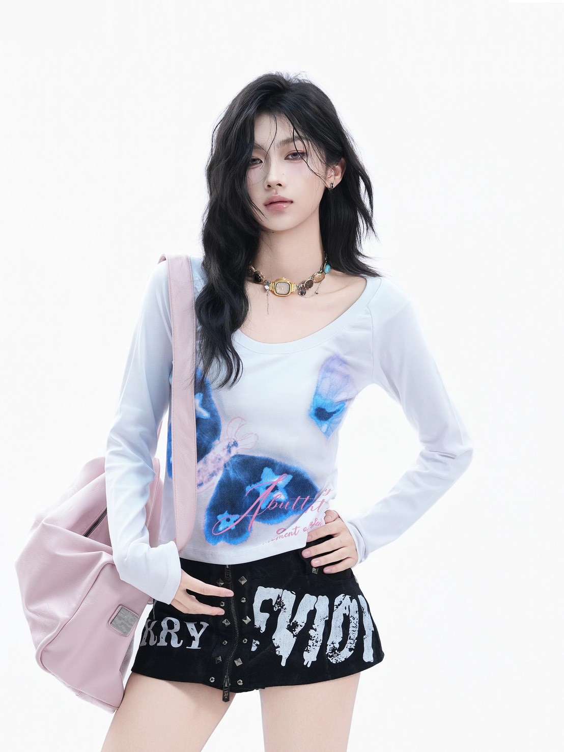 #上衣 #上身 #蝴蝶 #大U領 #短款 #長袖 # #辣妹 #合身