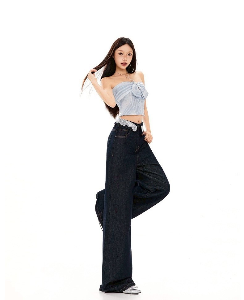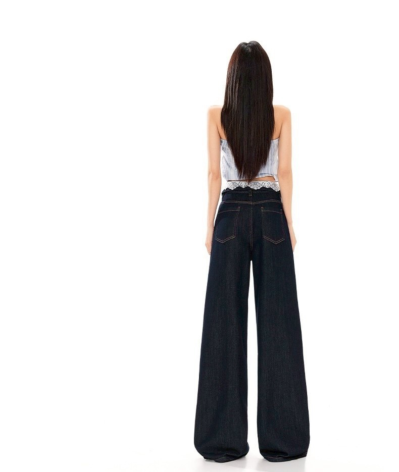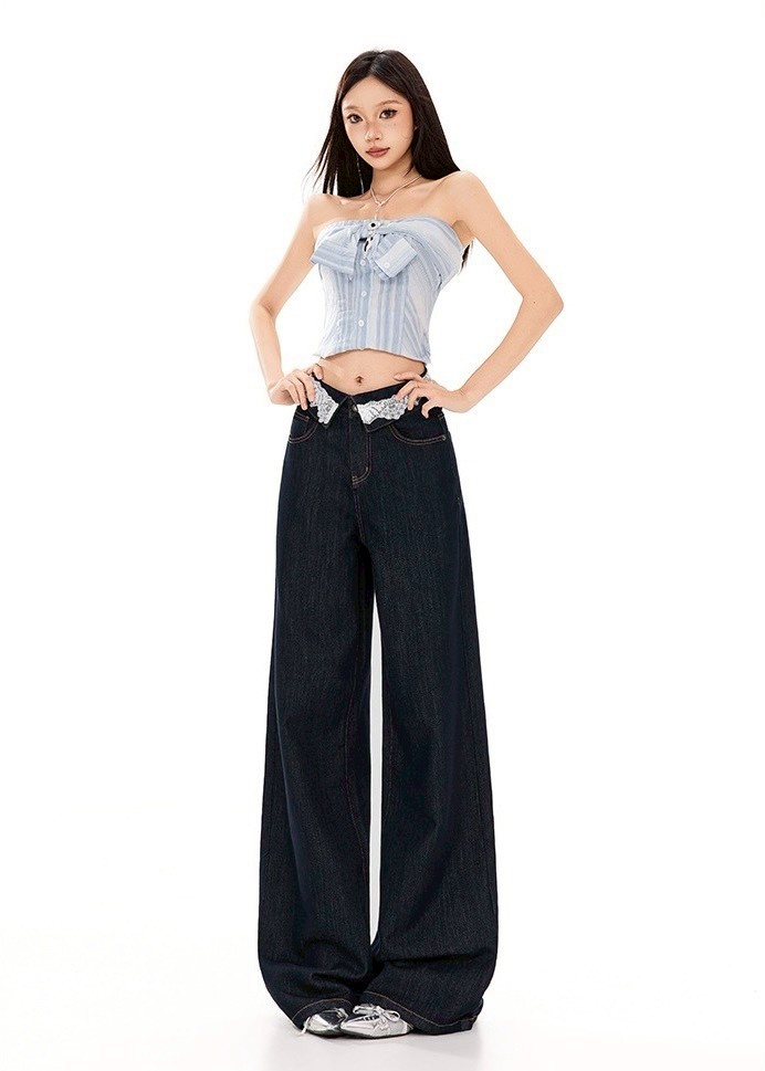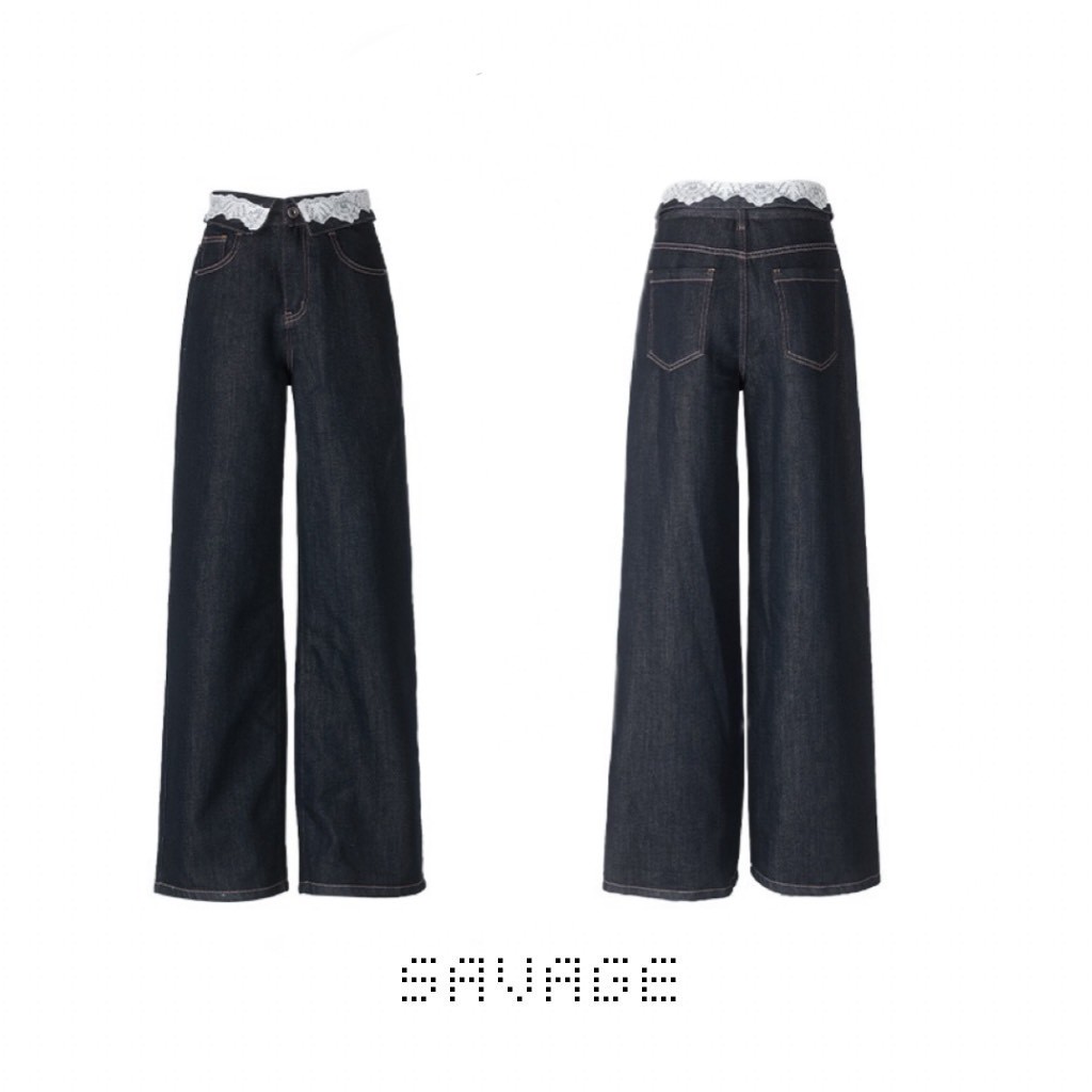 #下身 #低腰 #復古 #牛仔褲 #拖地 #蕾絲 #拼接 #寬鬆 #闊腿 #拖地褲