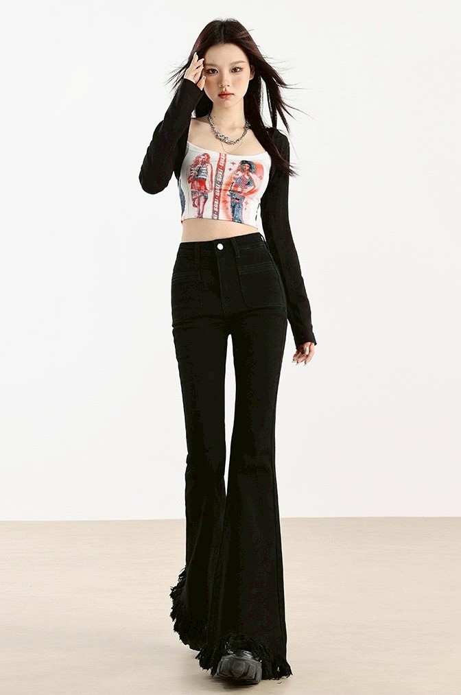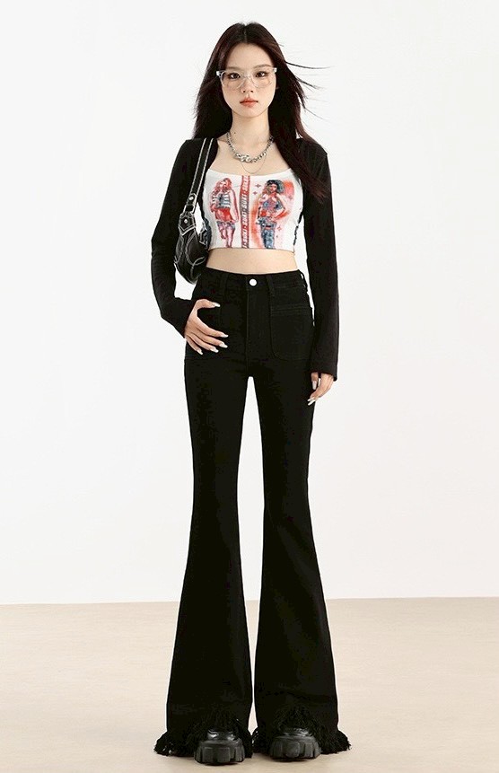 #下身 #高腰 #合身 #復古 #牛仔褲 #拖地 #喇叭褲 #闊腿 #拖地褲