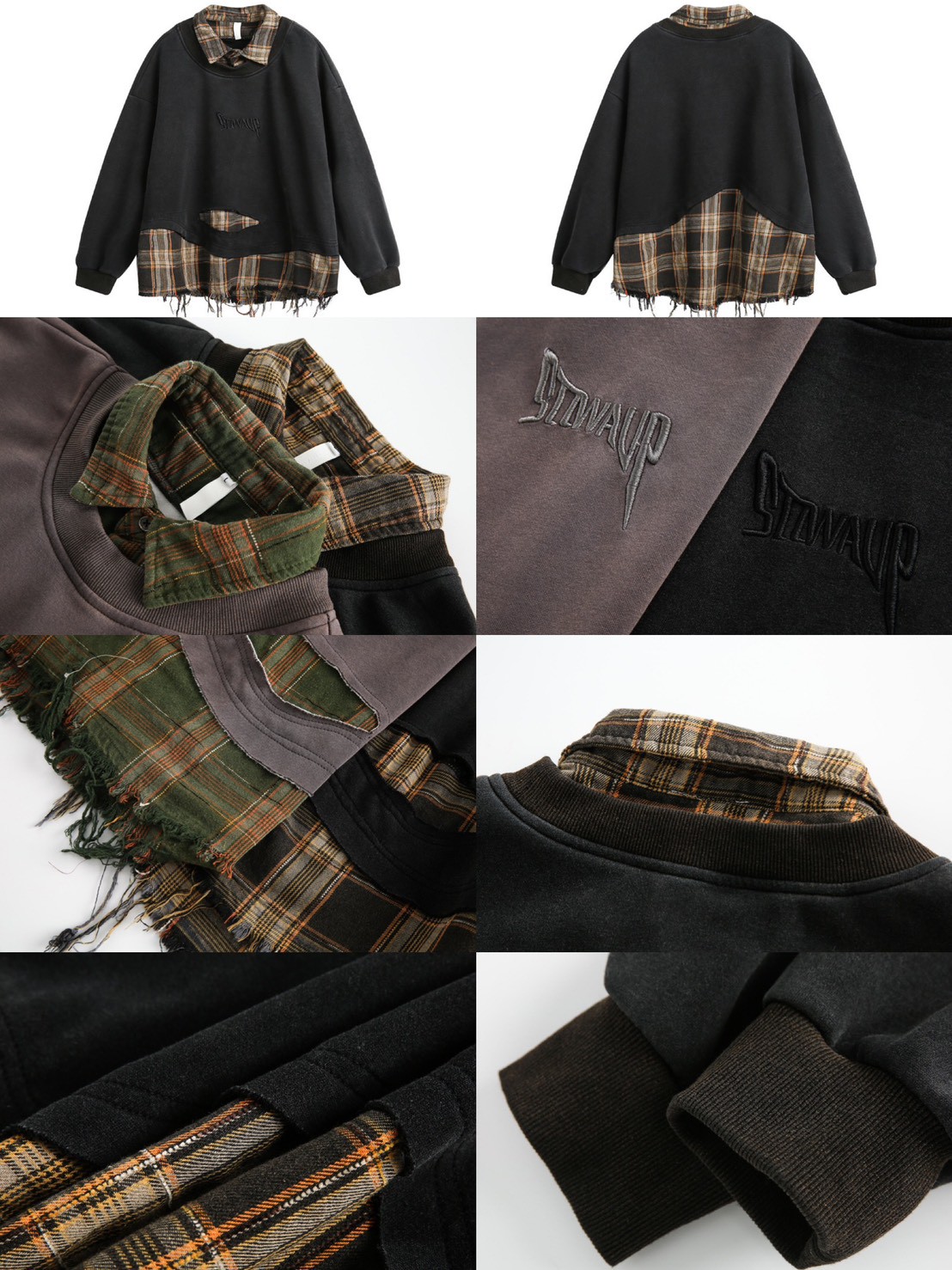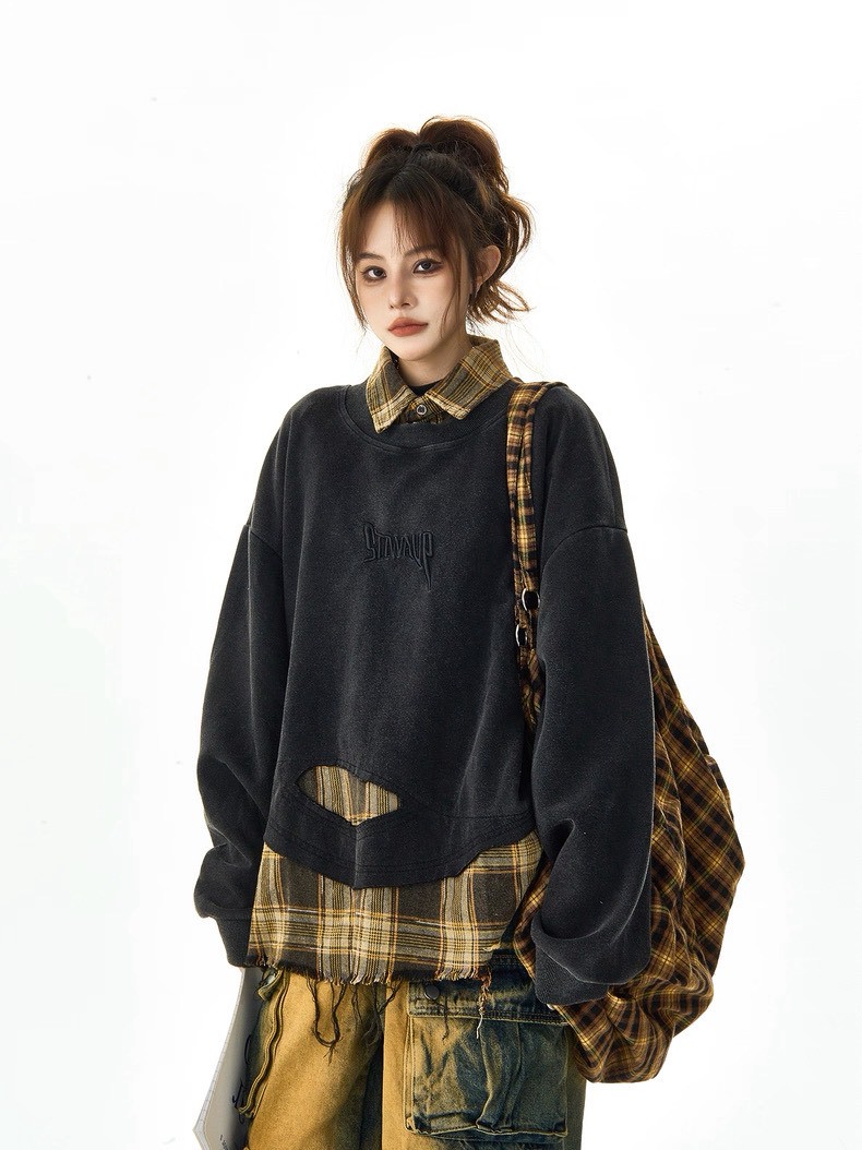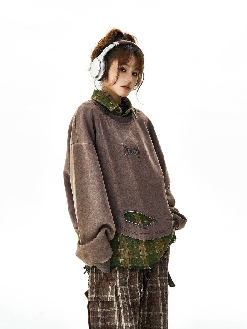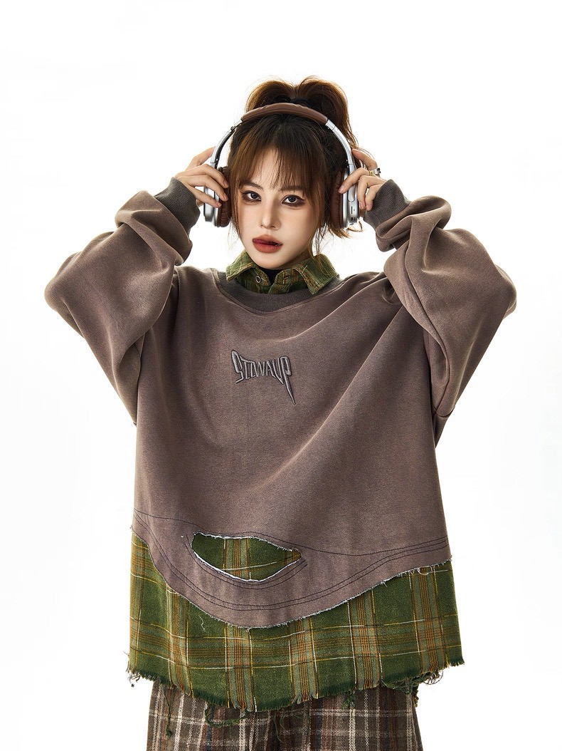 #上身 #上衣 #大學踢 #衛衣 #破壞 #落肩 #寬鬆 #拼接 #襯衫 #長袖