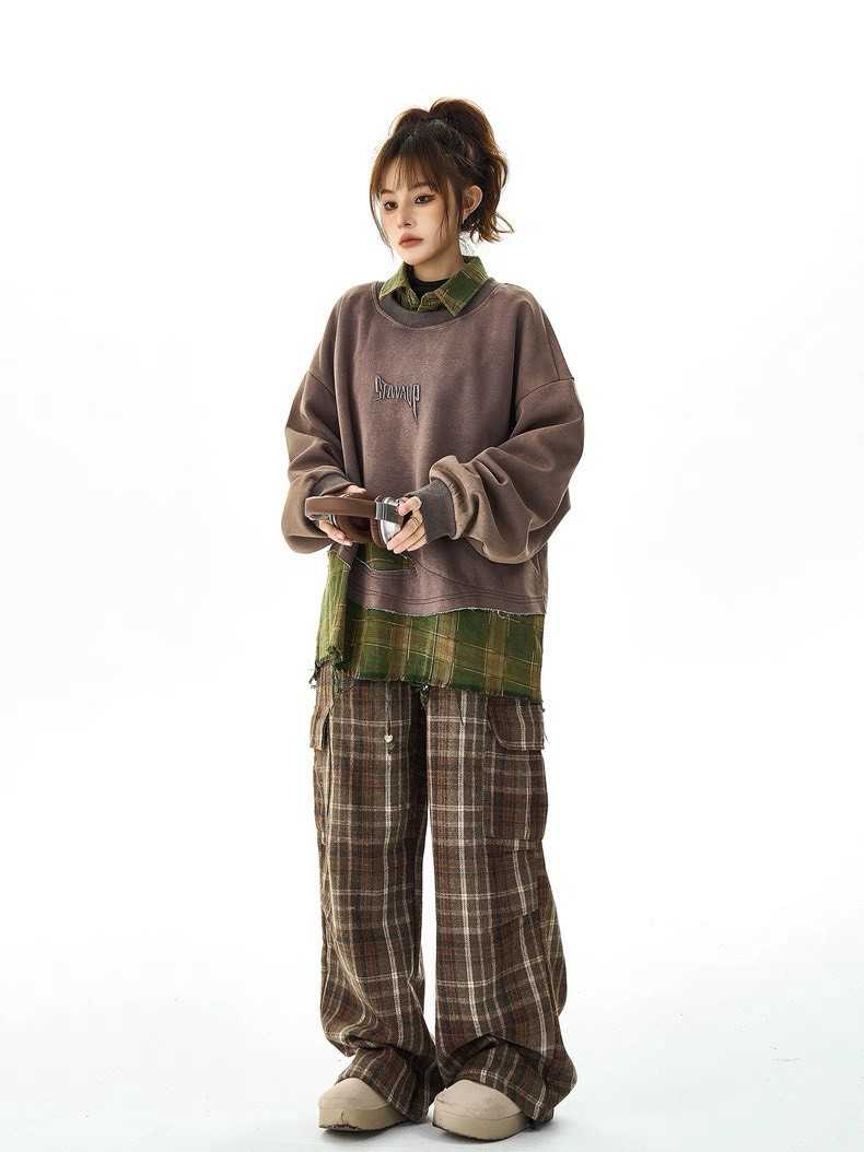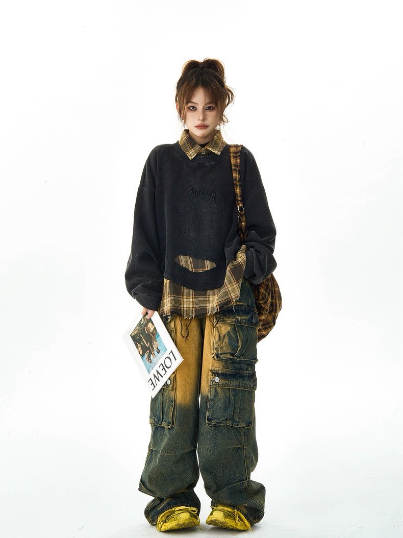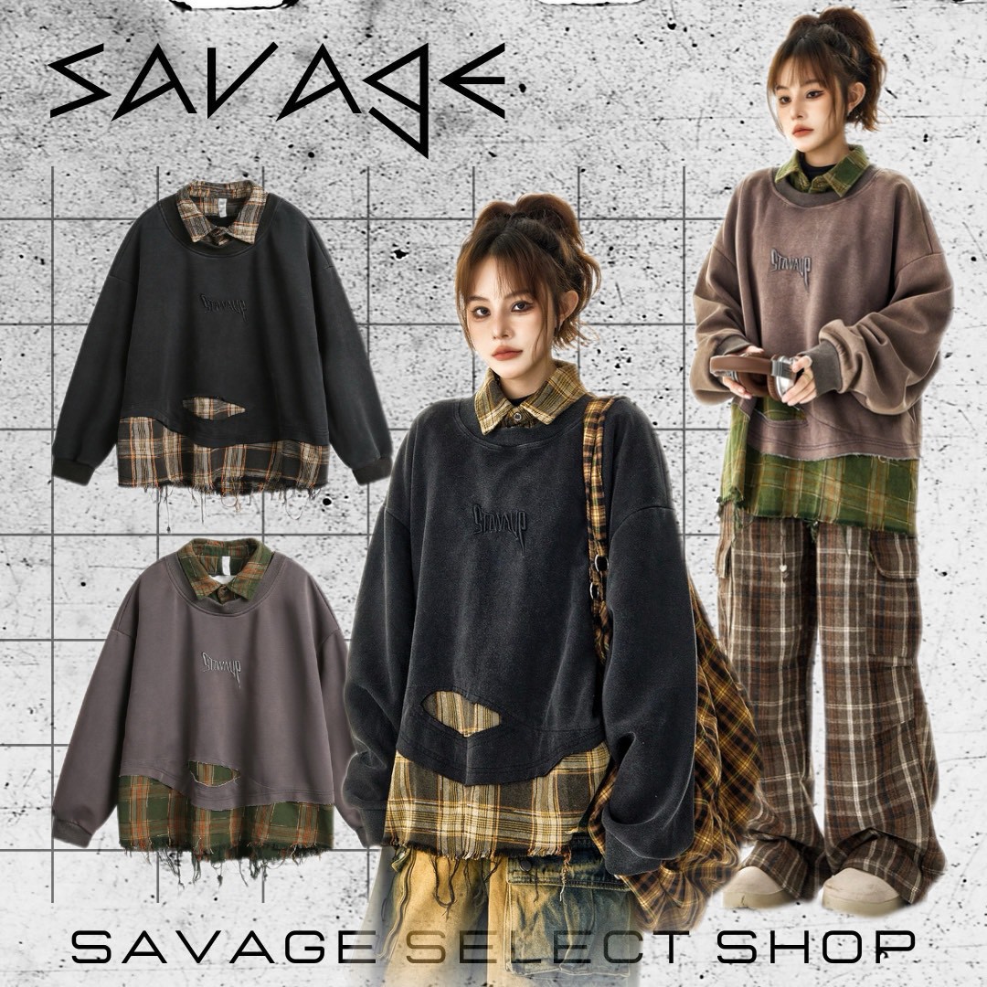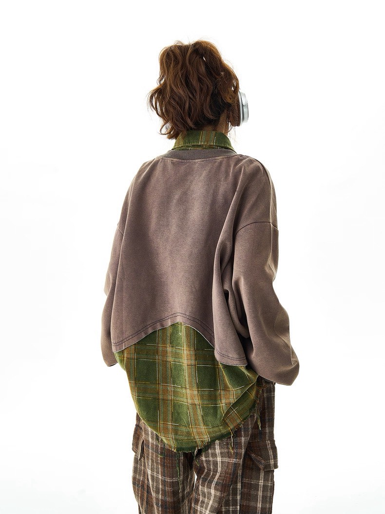 #上身 #上衣 #大學踢 #衛衣 #破壞 #落肩 #寬鬆 #拼接 #襯衫 #長袖