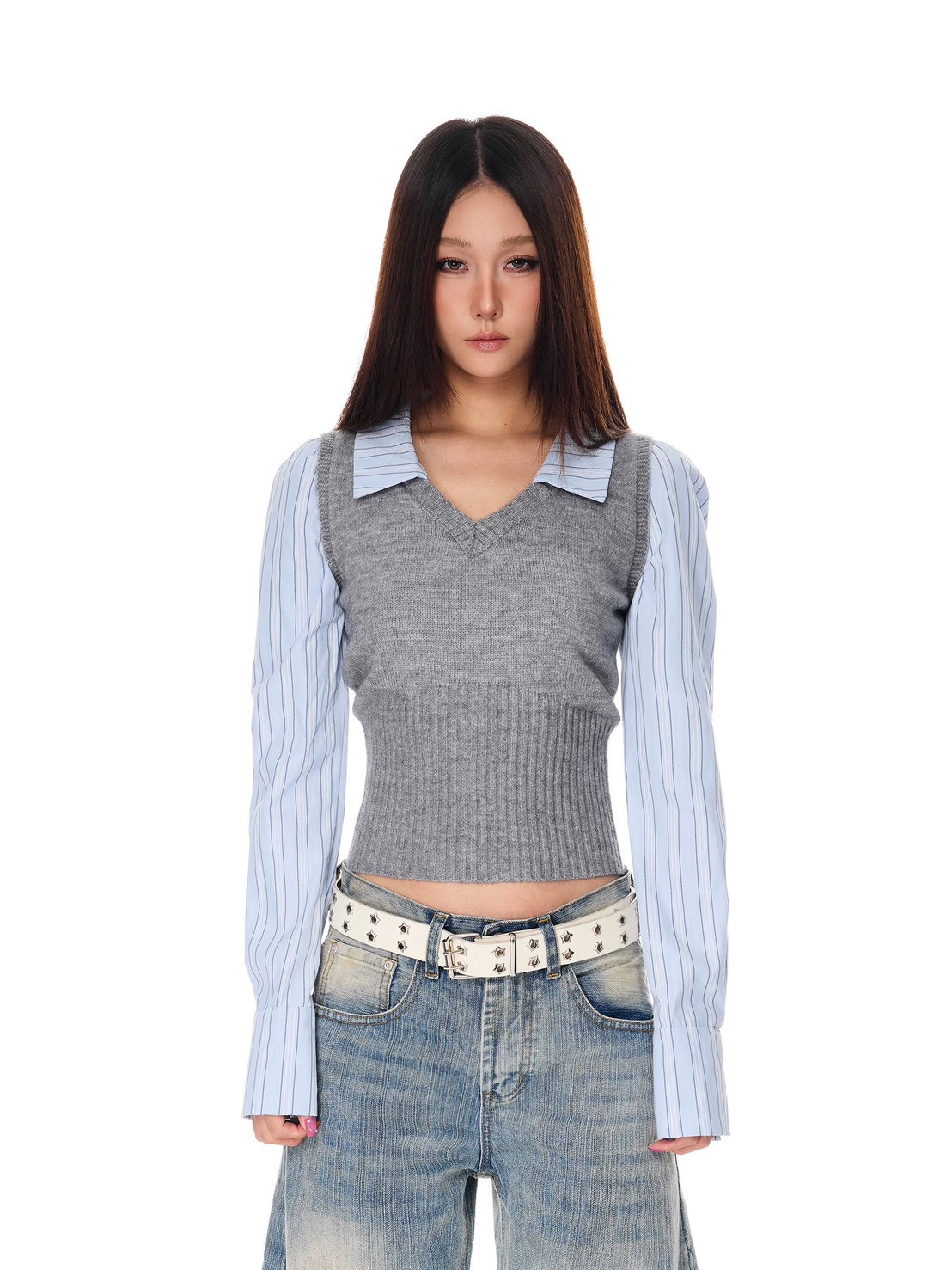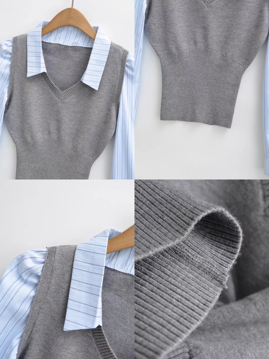 #上衣 #上身 #假兩件 #拼接 #襯衫 #針織 #背心 #長袖 # #收腰 #合身