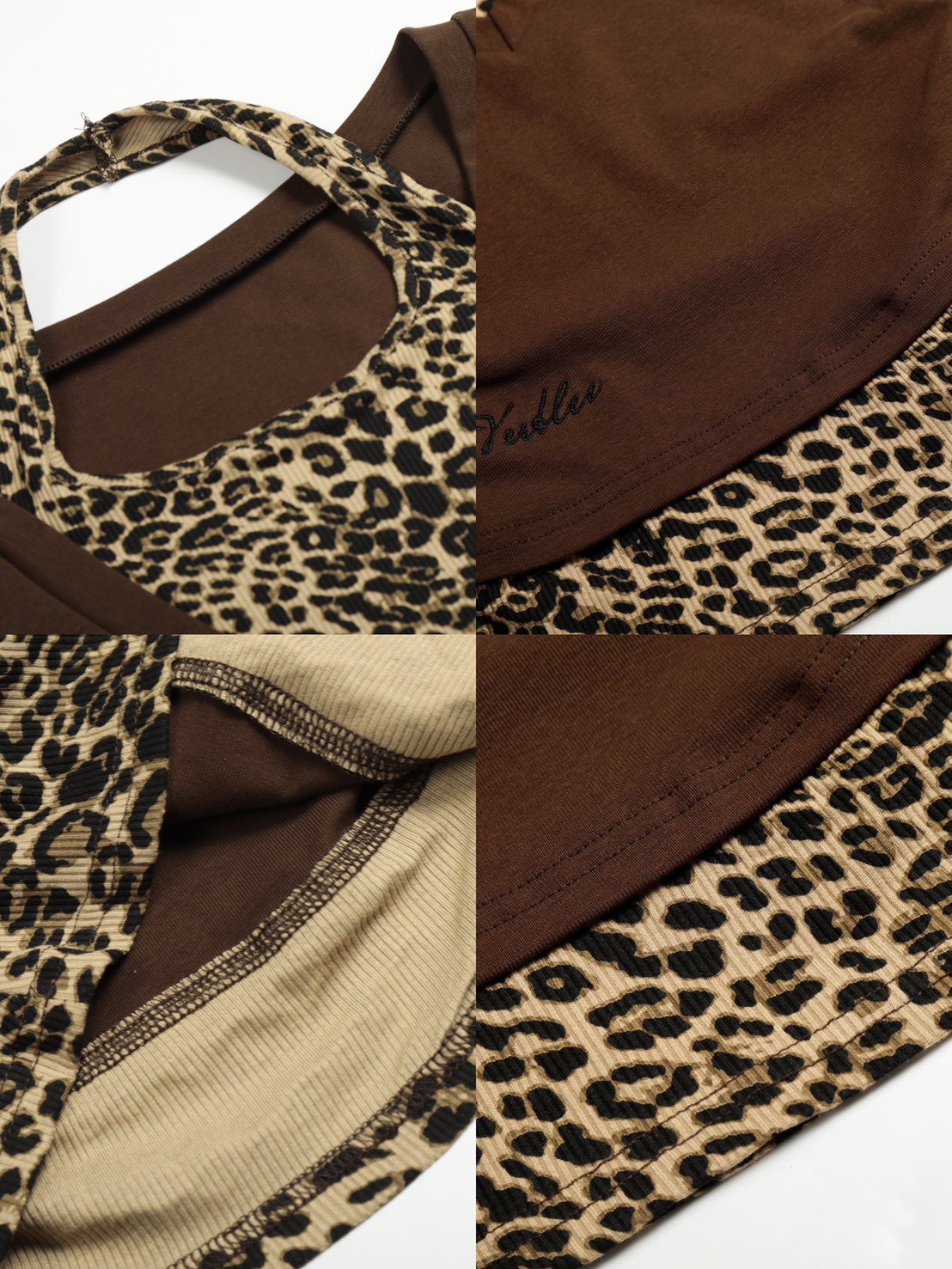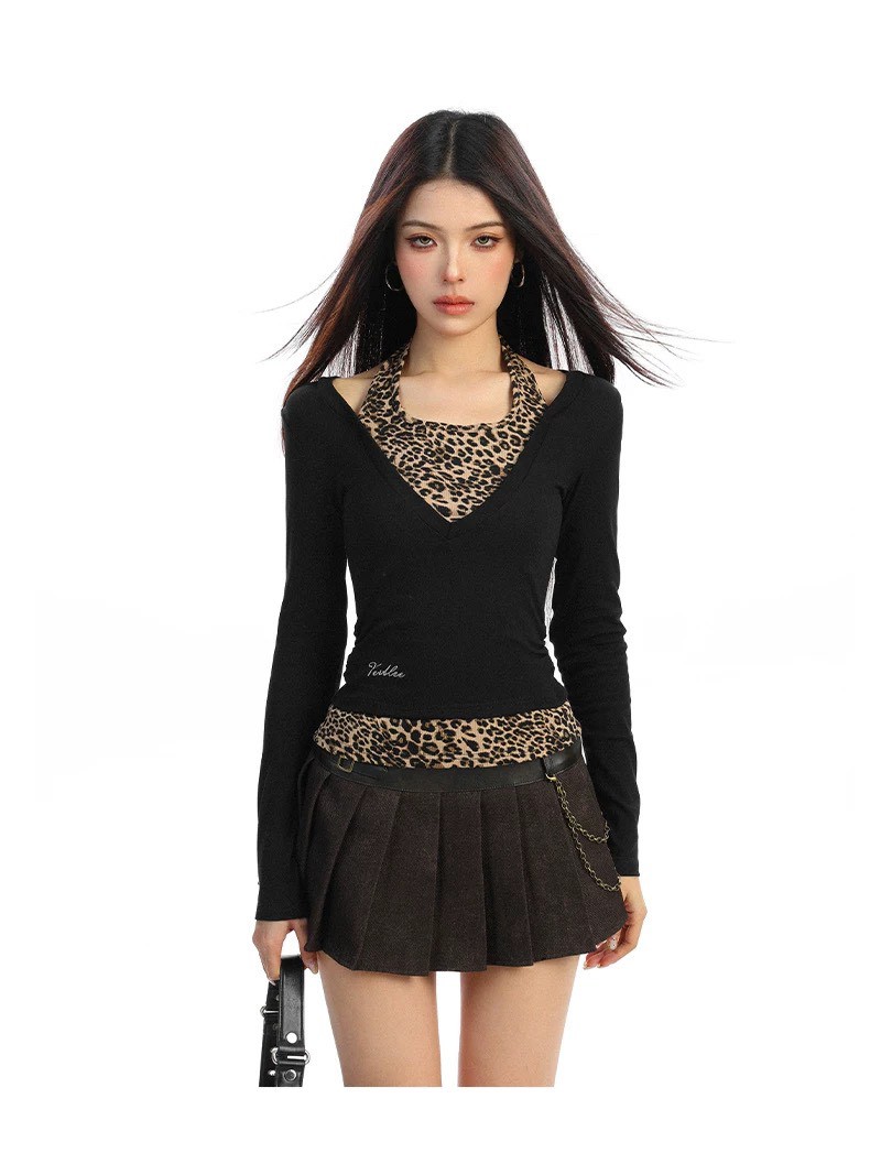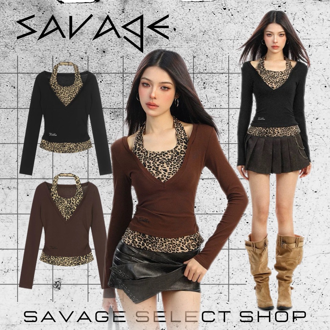 #上衣 #上身 #拼接 #薄款 #假兩件 #長袖 #深V #豹紋 #合身