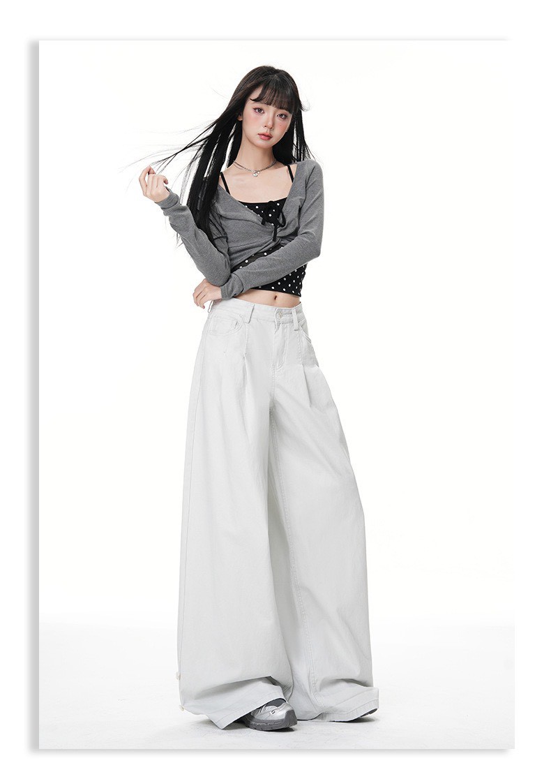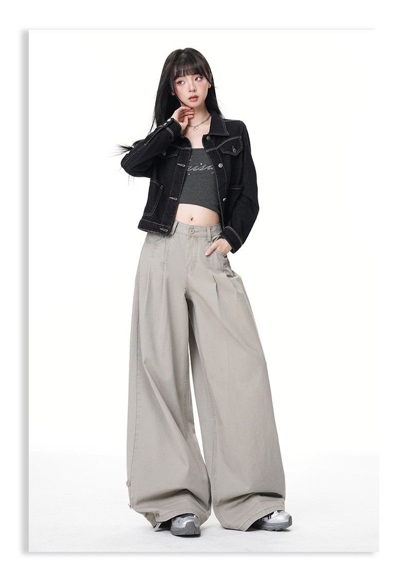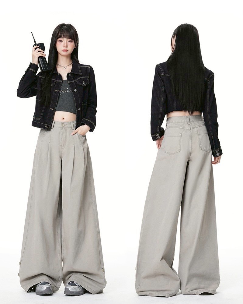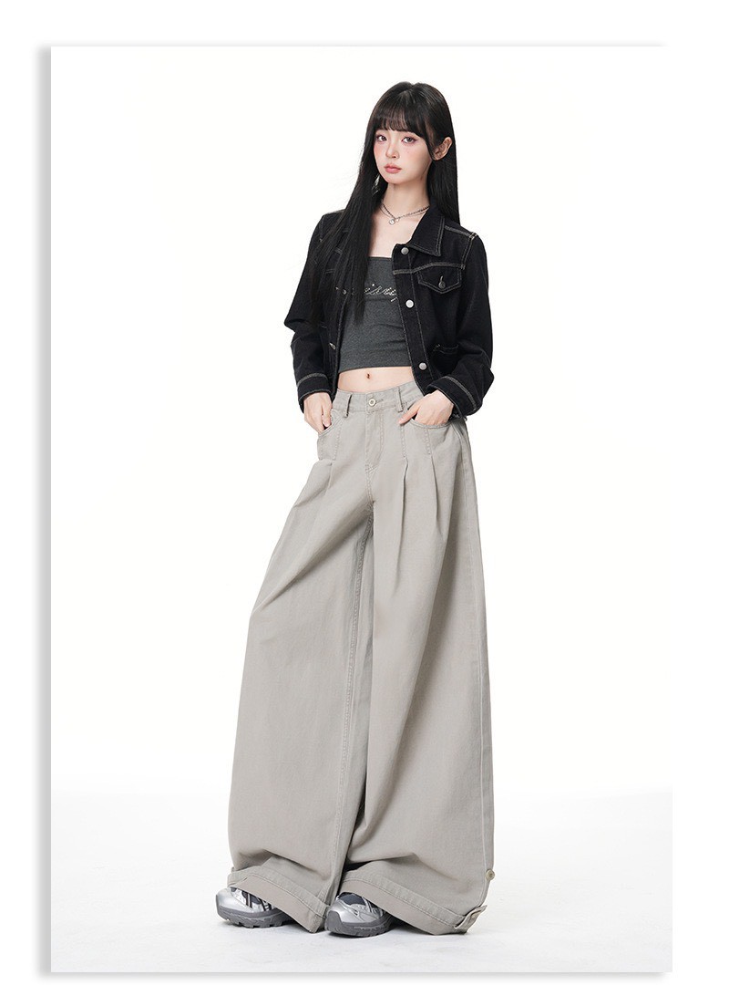 [商品名稱]:反折釦寬寬工作牛仔褲