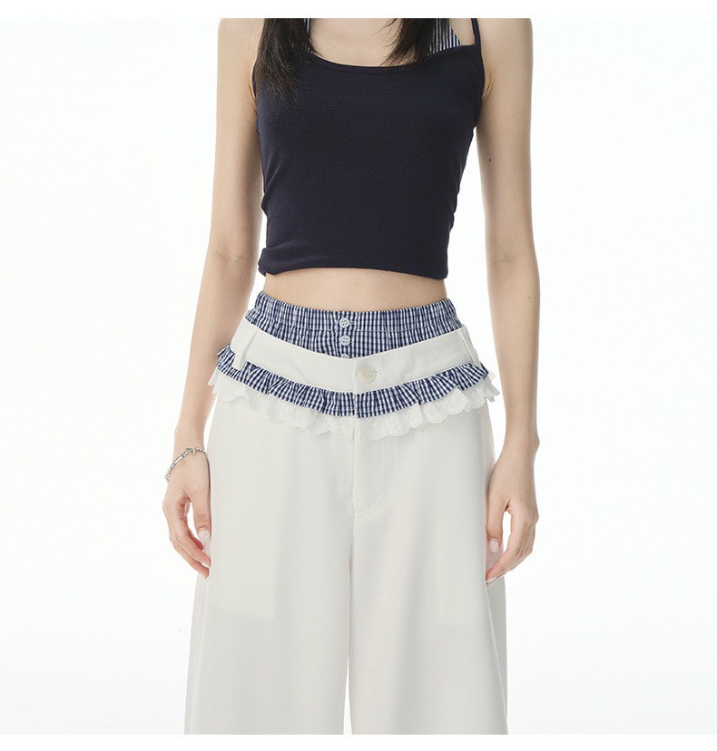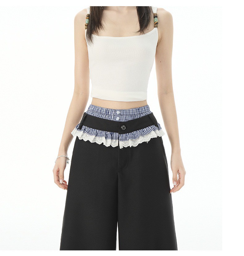[商品名稱]:蕾絲拼接西裝褲