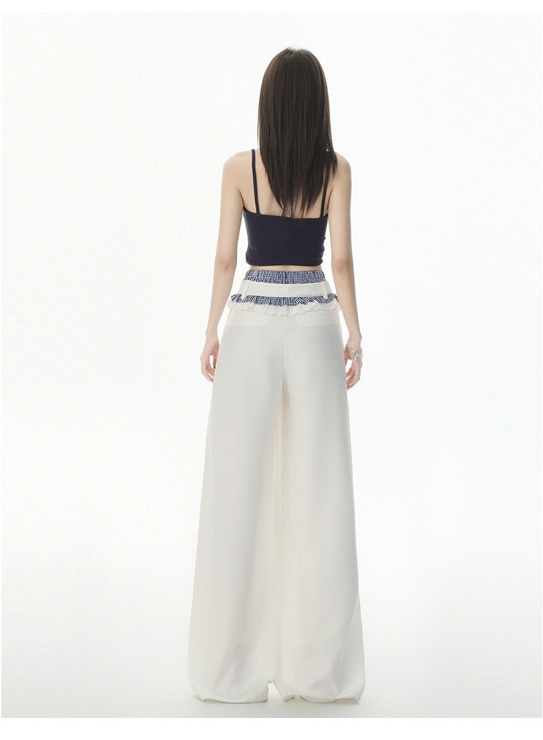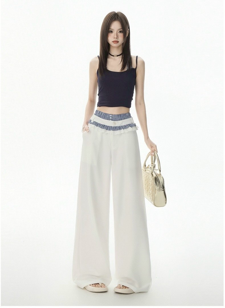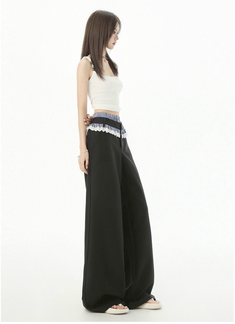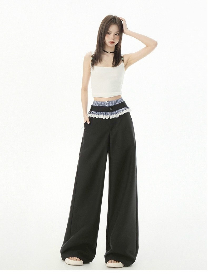 #下身 #高腰 #垂感 #蕾絲 #拼接 #拖地 #西裝褲 #闊腿 #拖地褲