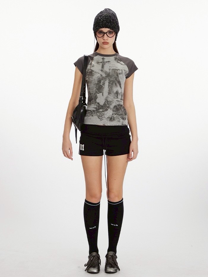 #上身 #上衣 #合身 #短袖 #印花 #辣妹 #短款