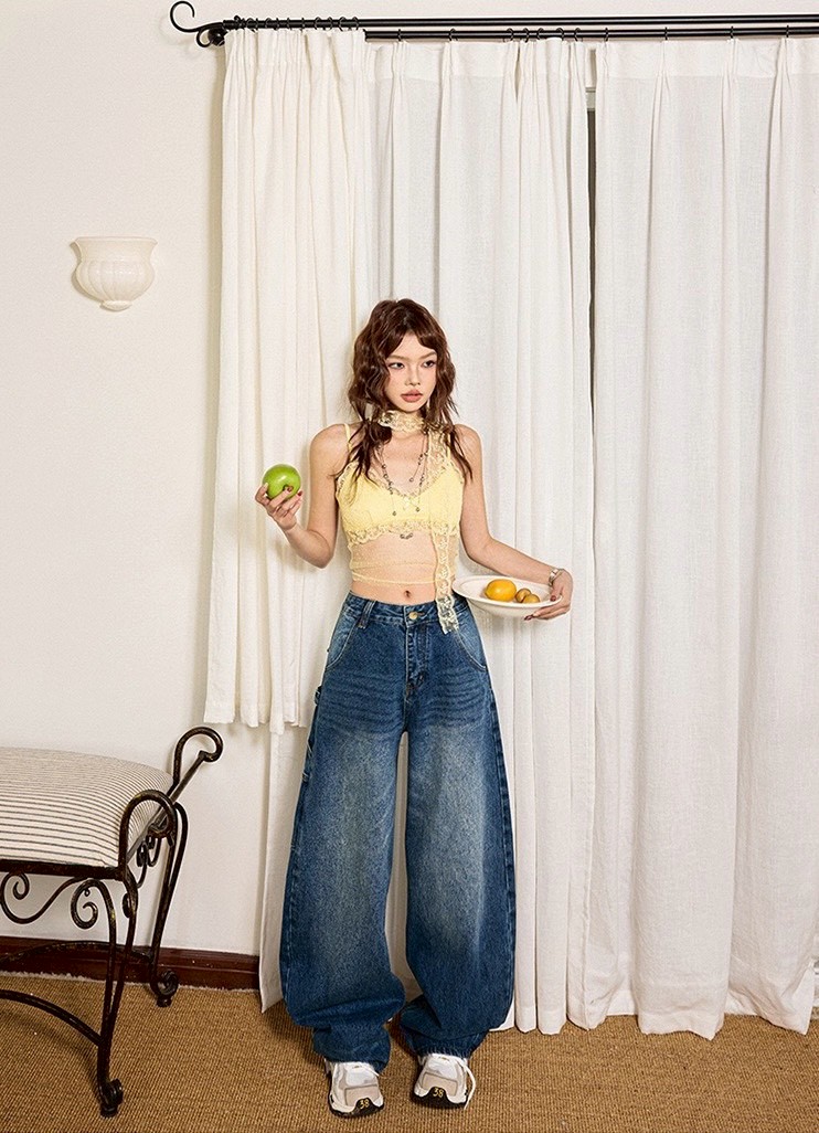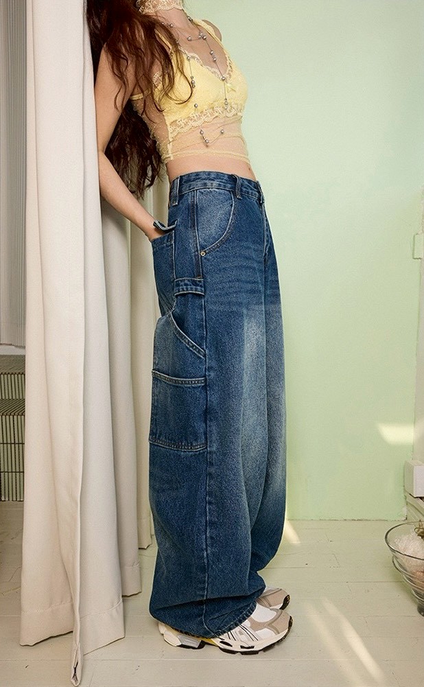 #下身 #復古 #牛仔褲 #工裝 #彎刀褲 #寬鬆 #闊腿 #拖地褲